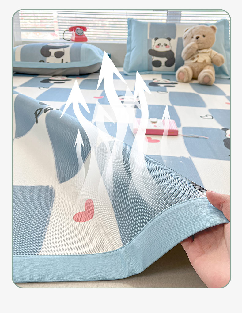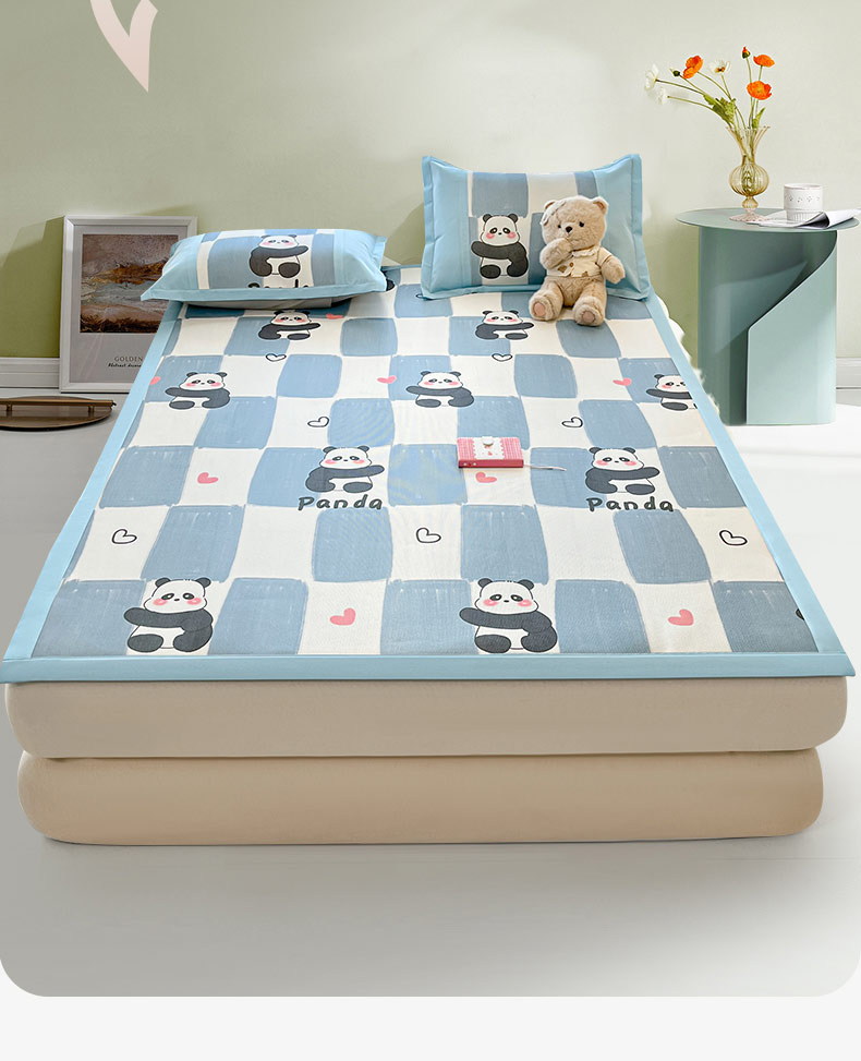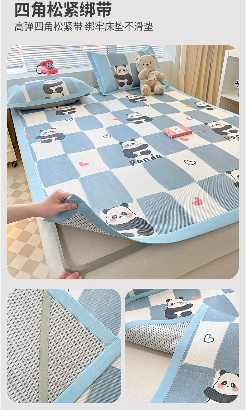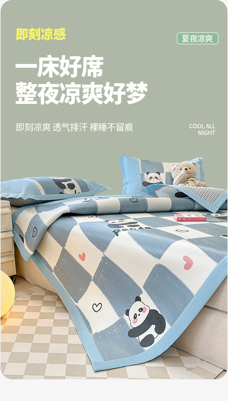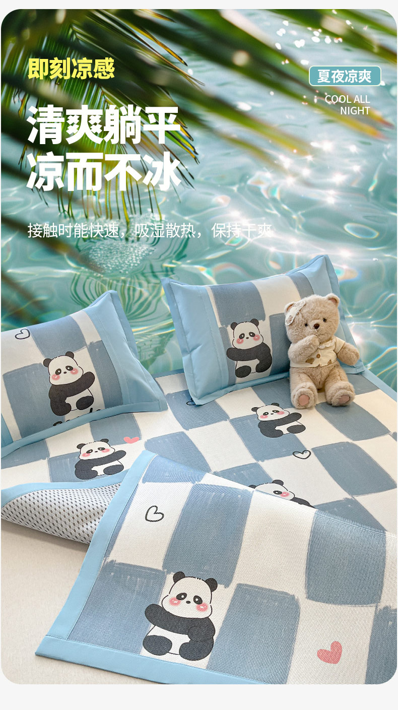 鑫琪莱家纺 2025新款数码印花加密冰藤凉席三件套 床席款-棋趣熊猫