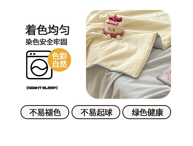 桃心家居 2025新款云柔水洗棉毛巾绣大豆单夏被夏被四件套 水洗棉-大眼睛夏被小蓝格奶黄