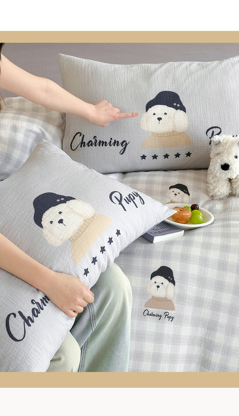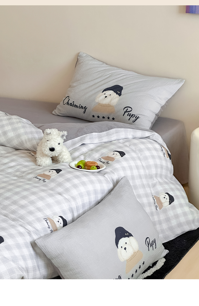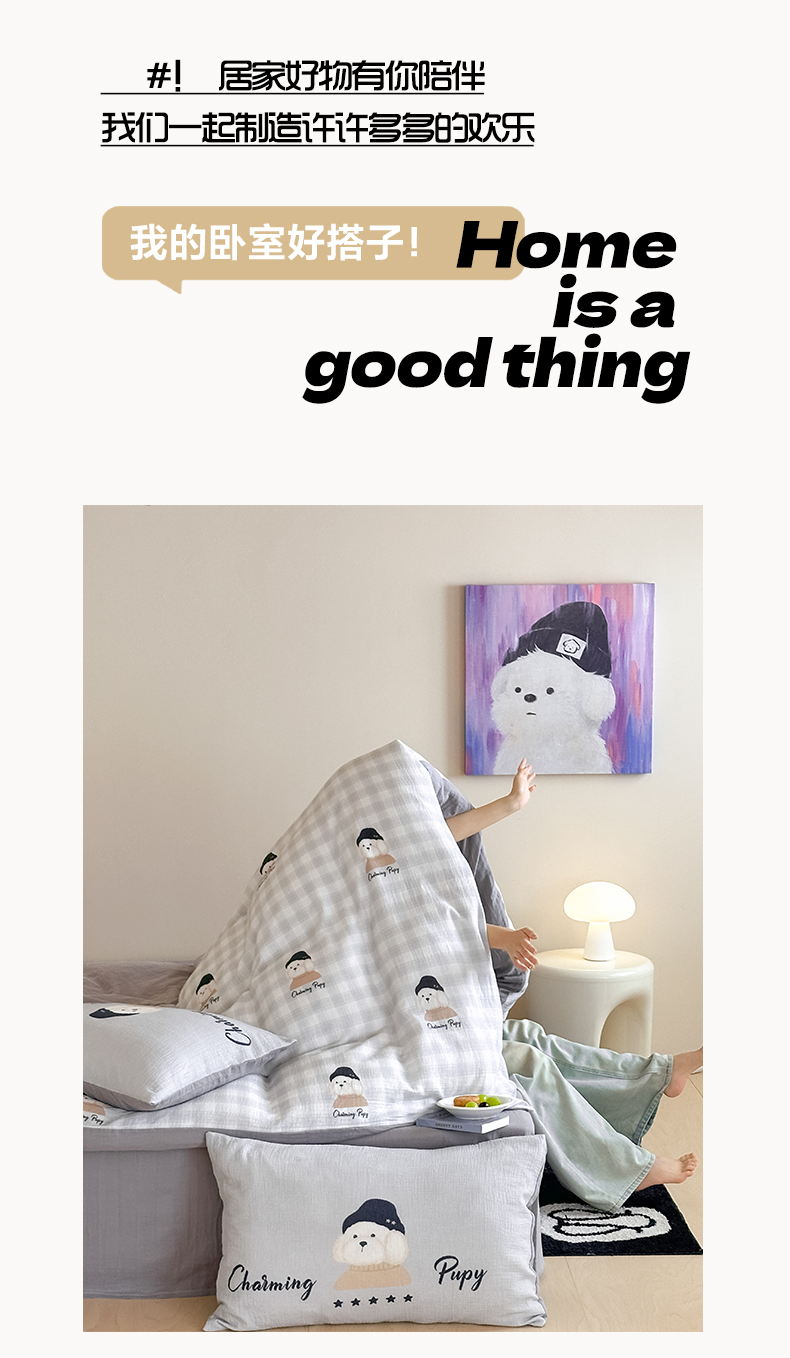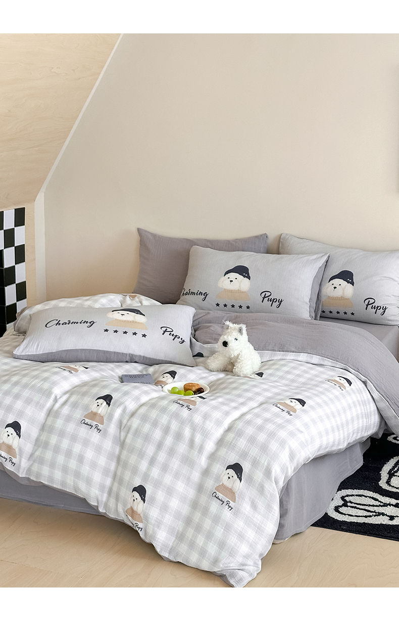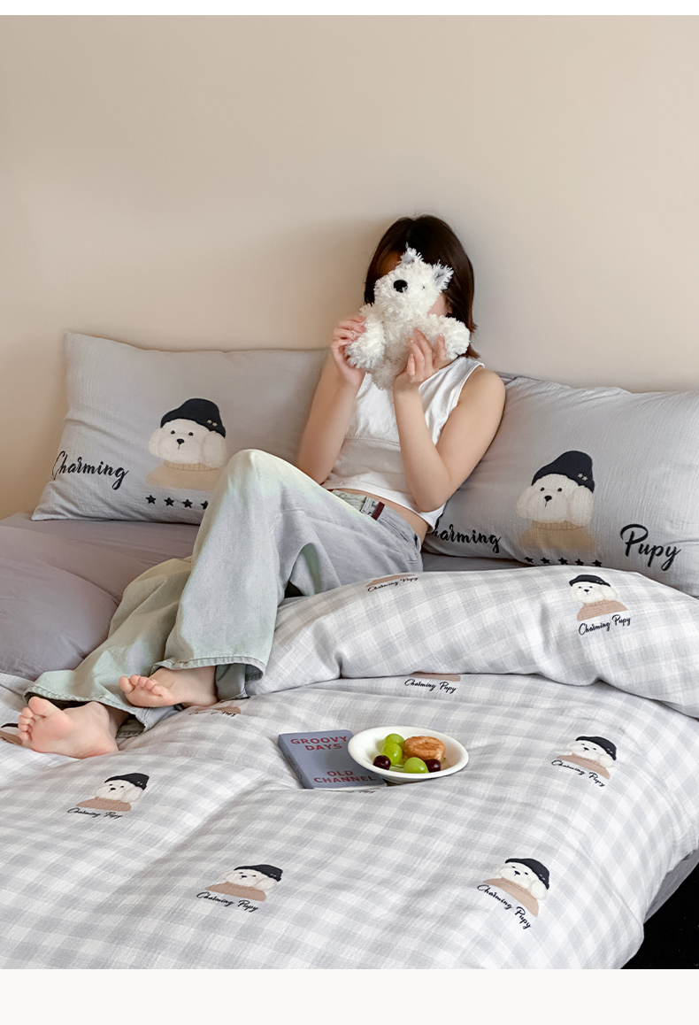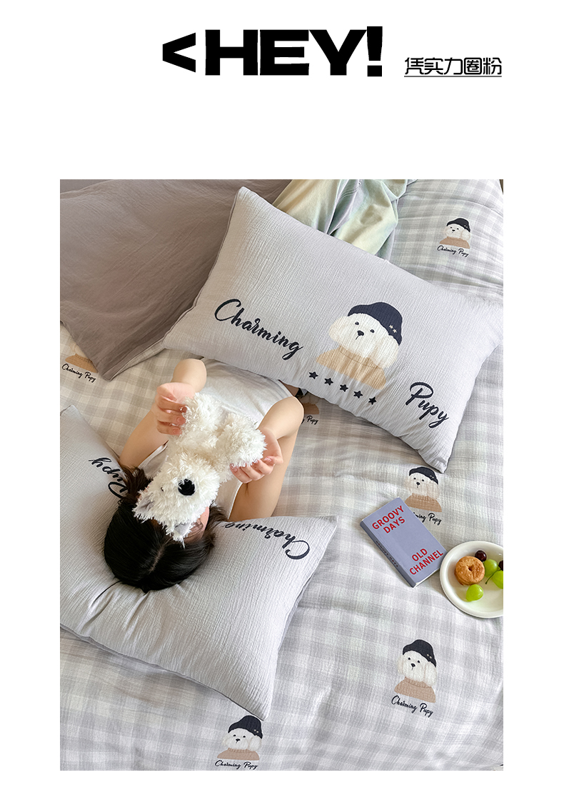 商品名称:卡巴伦家纺 2025新款全棉皱皱纱大版卡通数码印花款四件套二 汪汪掀被-灰