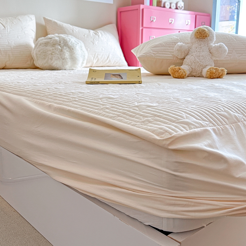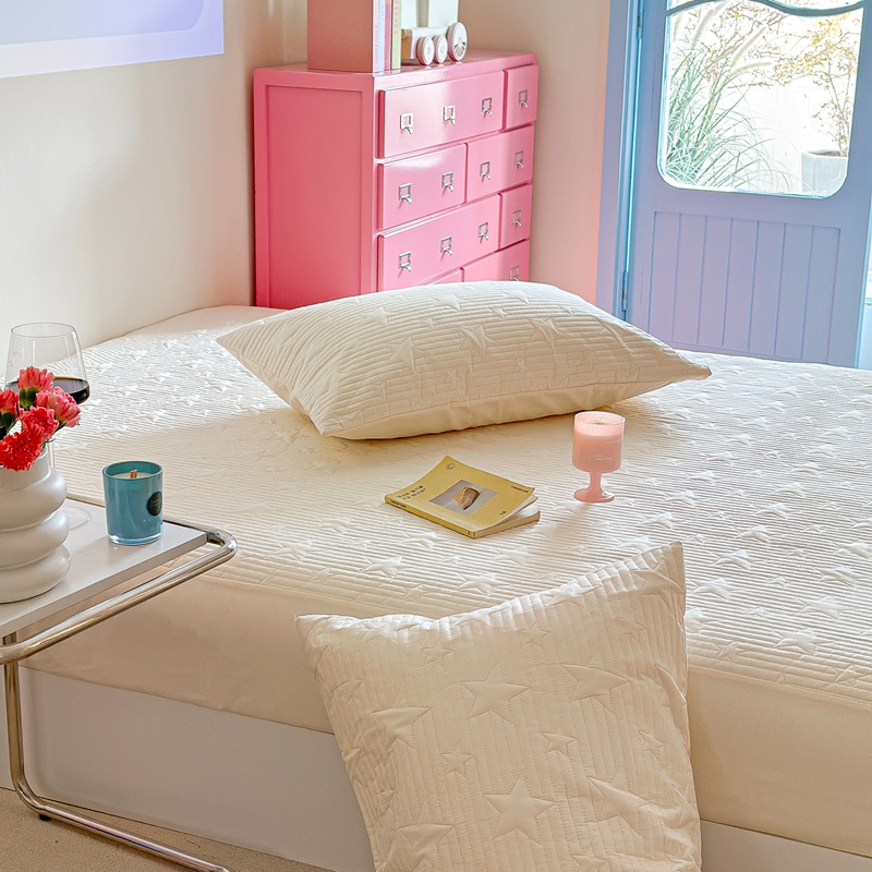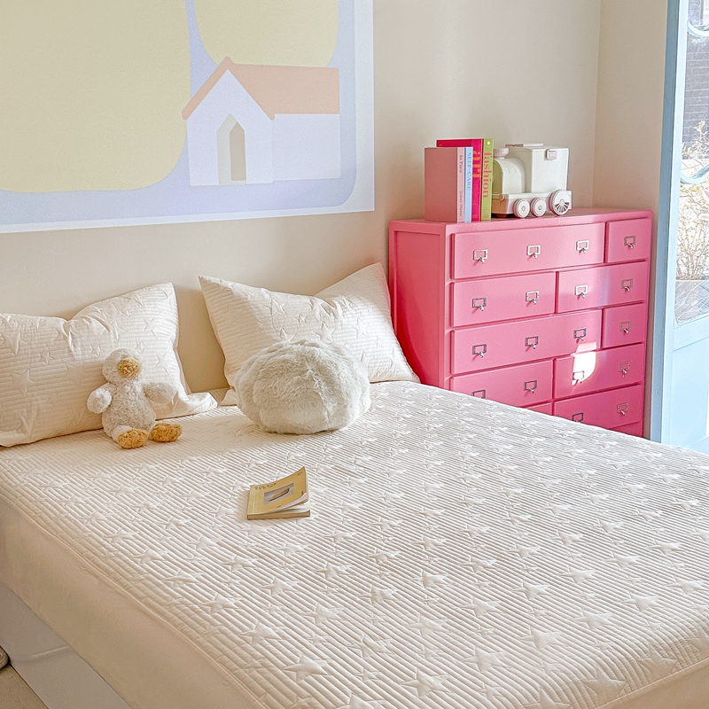 (总)漫调2025新款全棉星星床垫保护套夹棉床笠-繁星,组合图仅供参考,繁星白,繁星粉,繁星灰,繁星咖,繁星绿,繁星杏