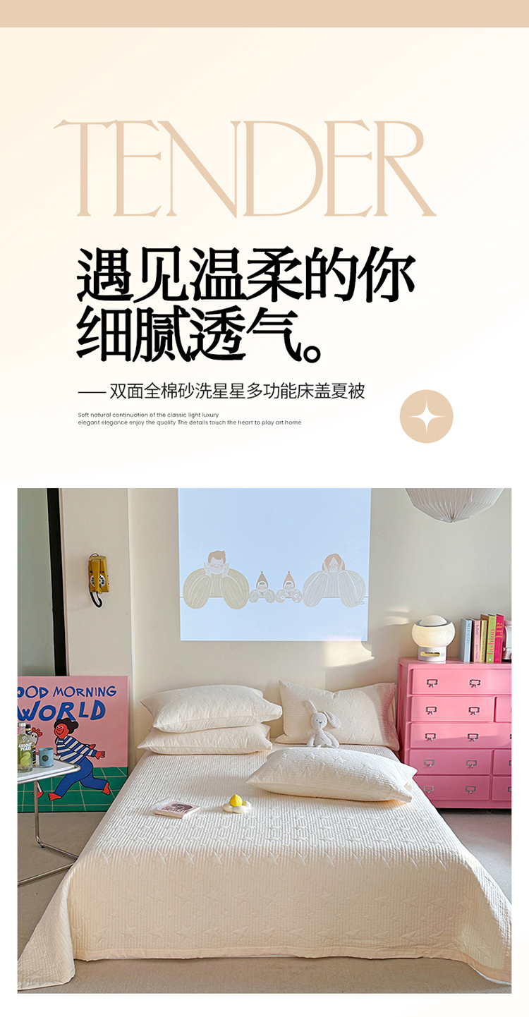 • 91家纺网 家纺一手货源 找家纺 漫调家纺 2025新款繁星水洗床盖夏被 繁星杏