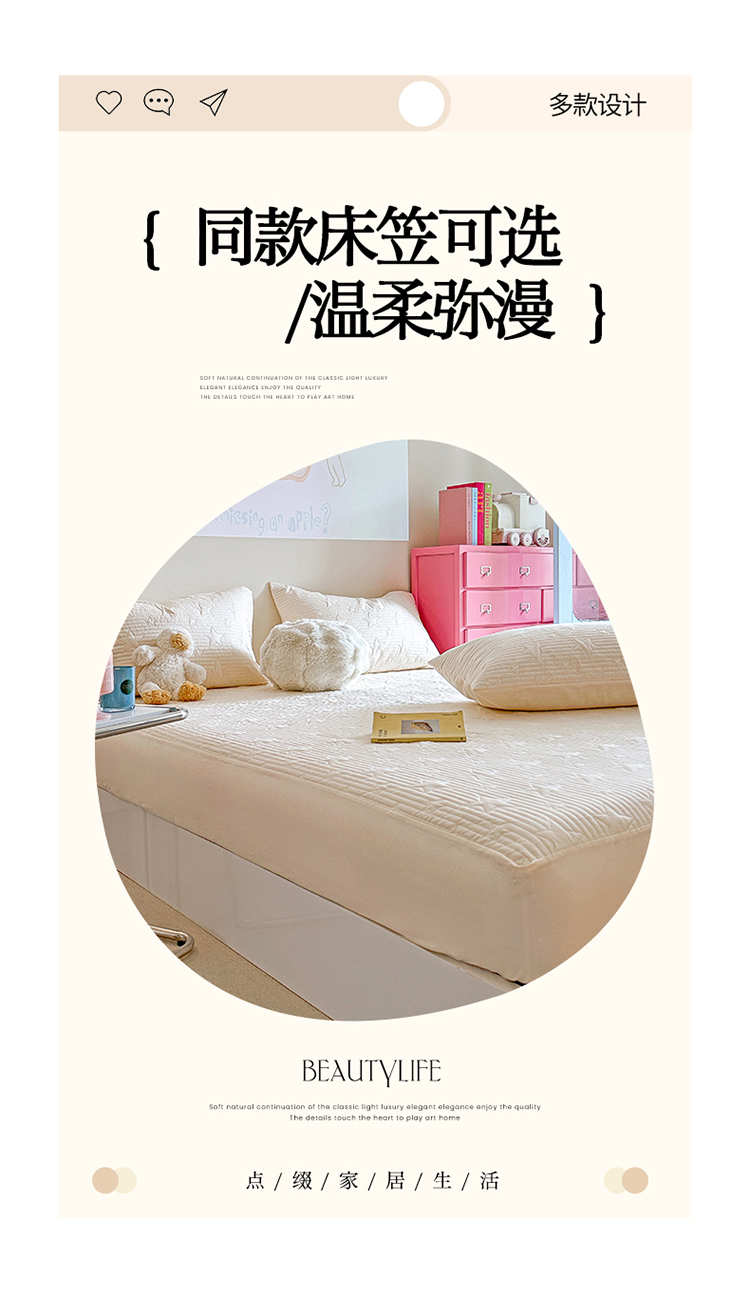 • 91家纺网 家纺一手货源 找家纺 (总)漫调家纺 2025新款全棉ins风蝴蝶结韩系奶油花边床盖三件套,奶油白,奶油粉,奶油杏