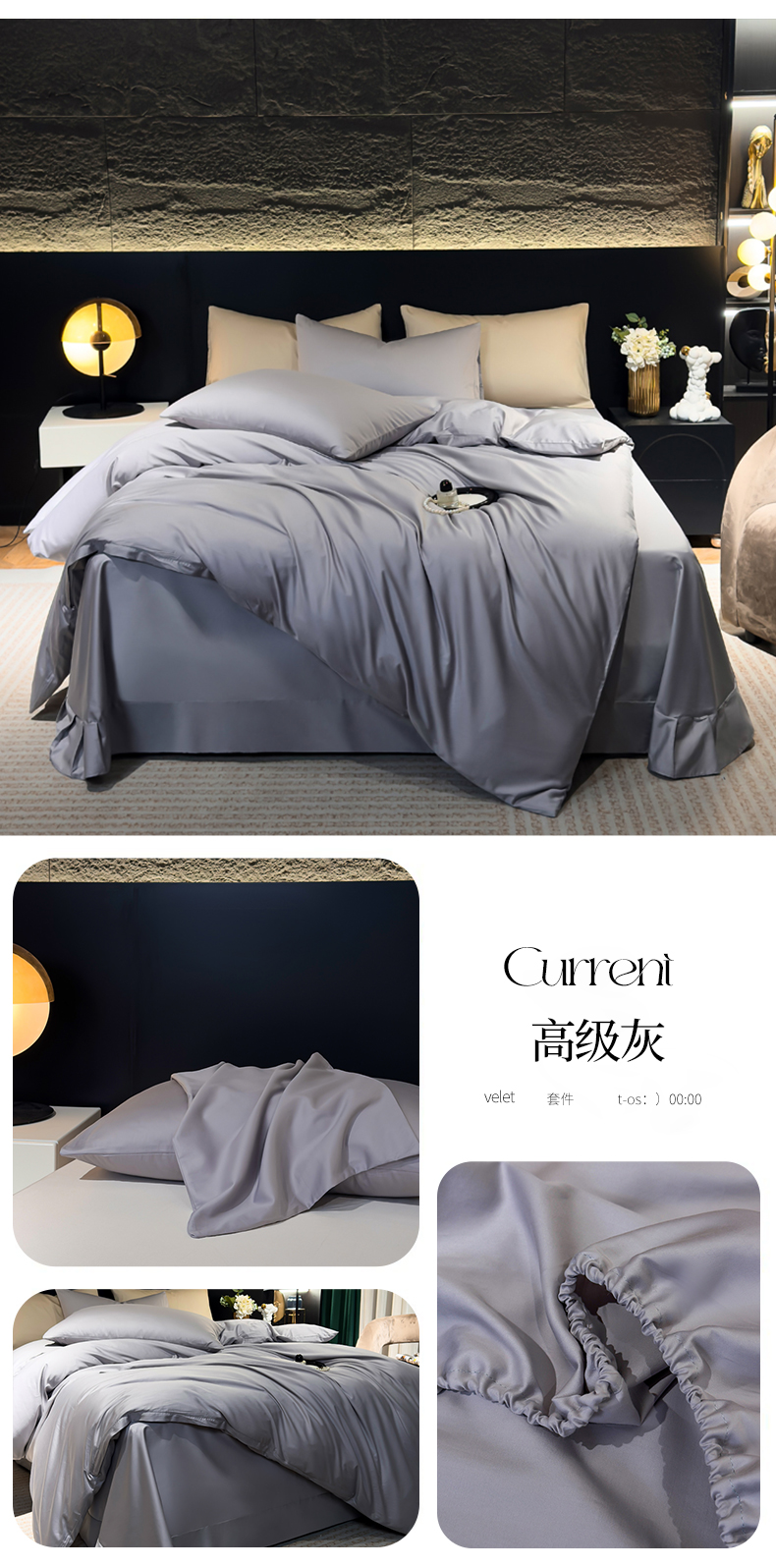 当前位置: 91家纺网 > 商品网购 > 床品套件 > 四件套 > 全棉普通四件套 > 氧家2025新款60支全棉贡缎纯色四件套 高级灰