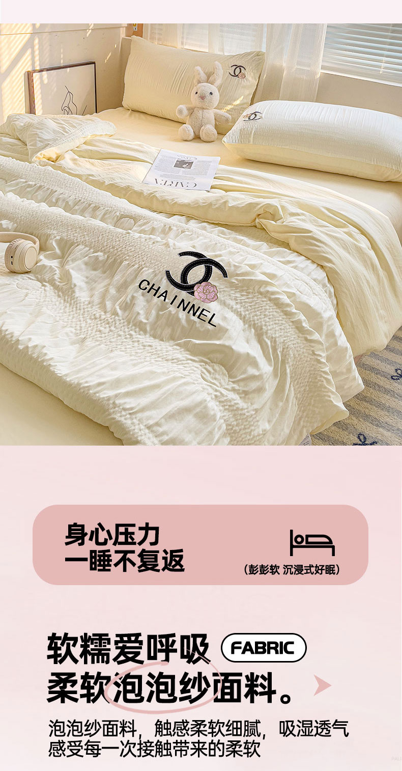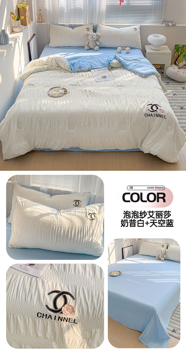 当前位置: 91家纺网 > 商品网购 > 床品套件 > 四件套 > 夏被四件套 > 灰鲸 2025新款泡泡纱艾丽莎刺绣夏被四件套系列 泡泡纱艾丽莎-奶昔白+奶油黄
