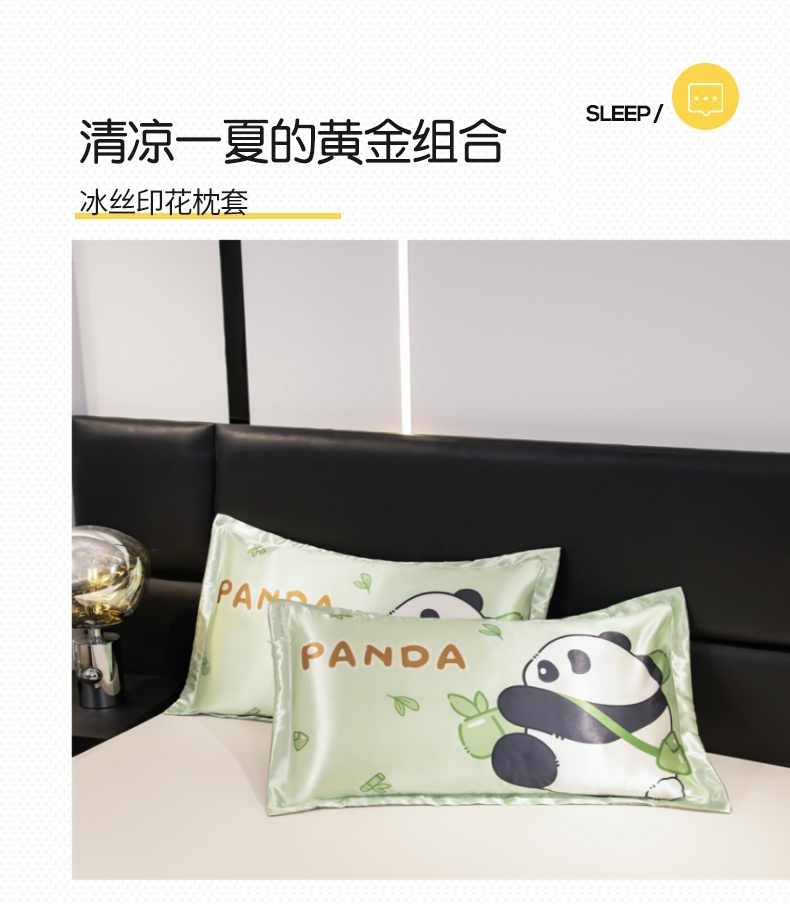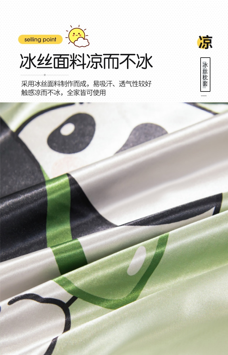 商品名称:圣比熊 2025新款可水洗冰丝卡通枕套宿舍48x74cm单人凉爽枕头套 熊猫宝贝