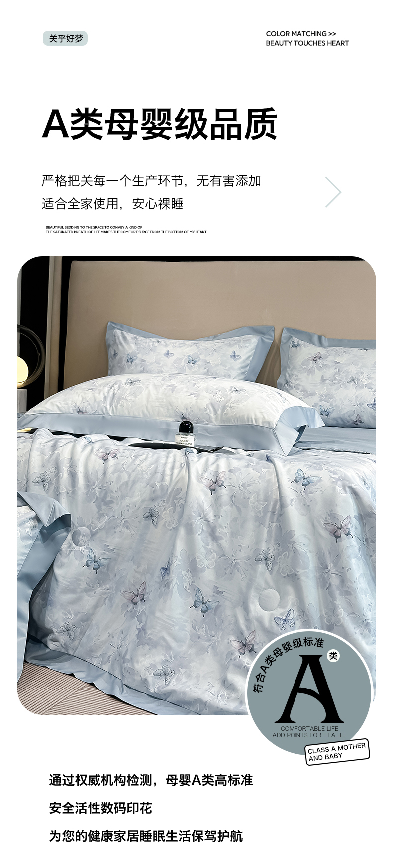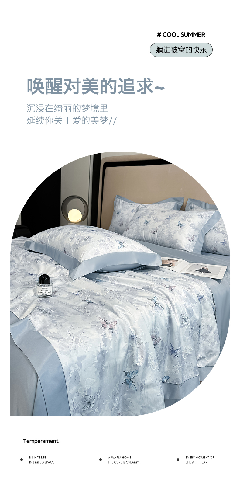 笙意家纺 2025新款水洗冰丝数码印花拼角宽边夏被 古韵蝶音