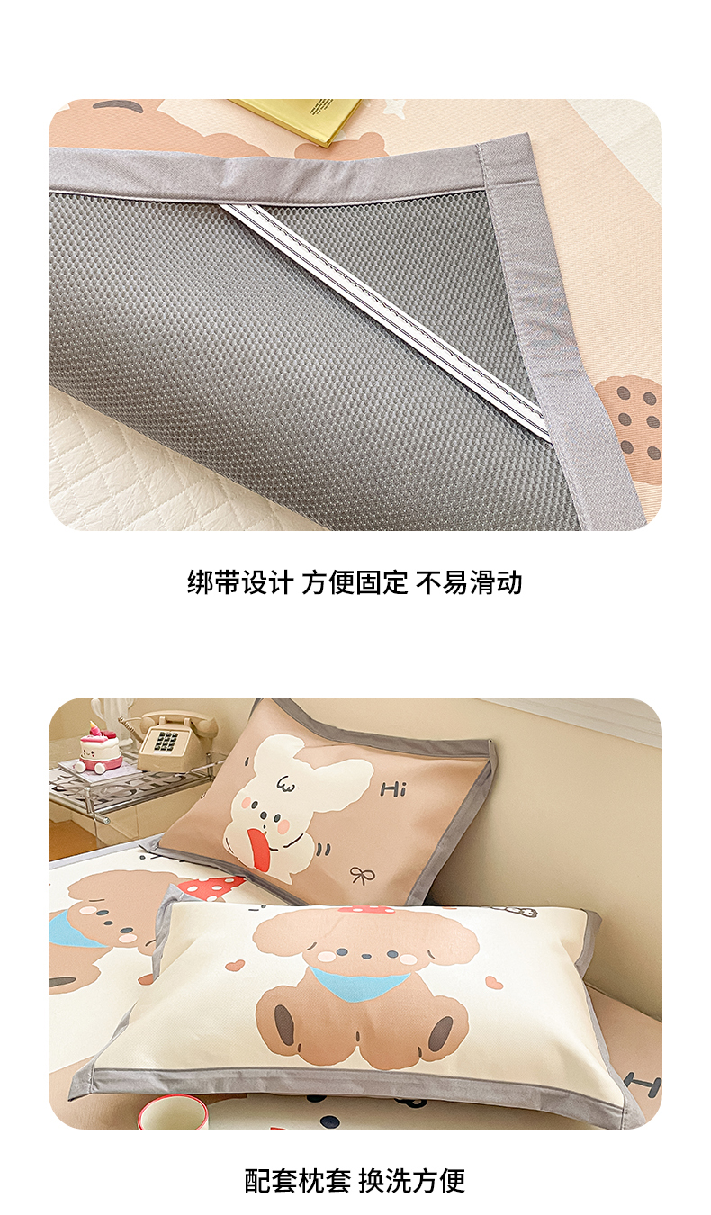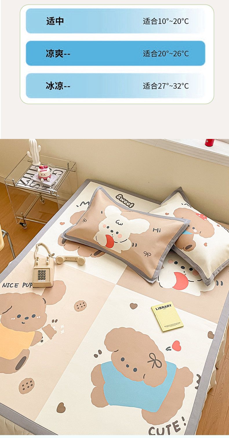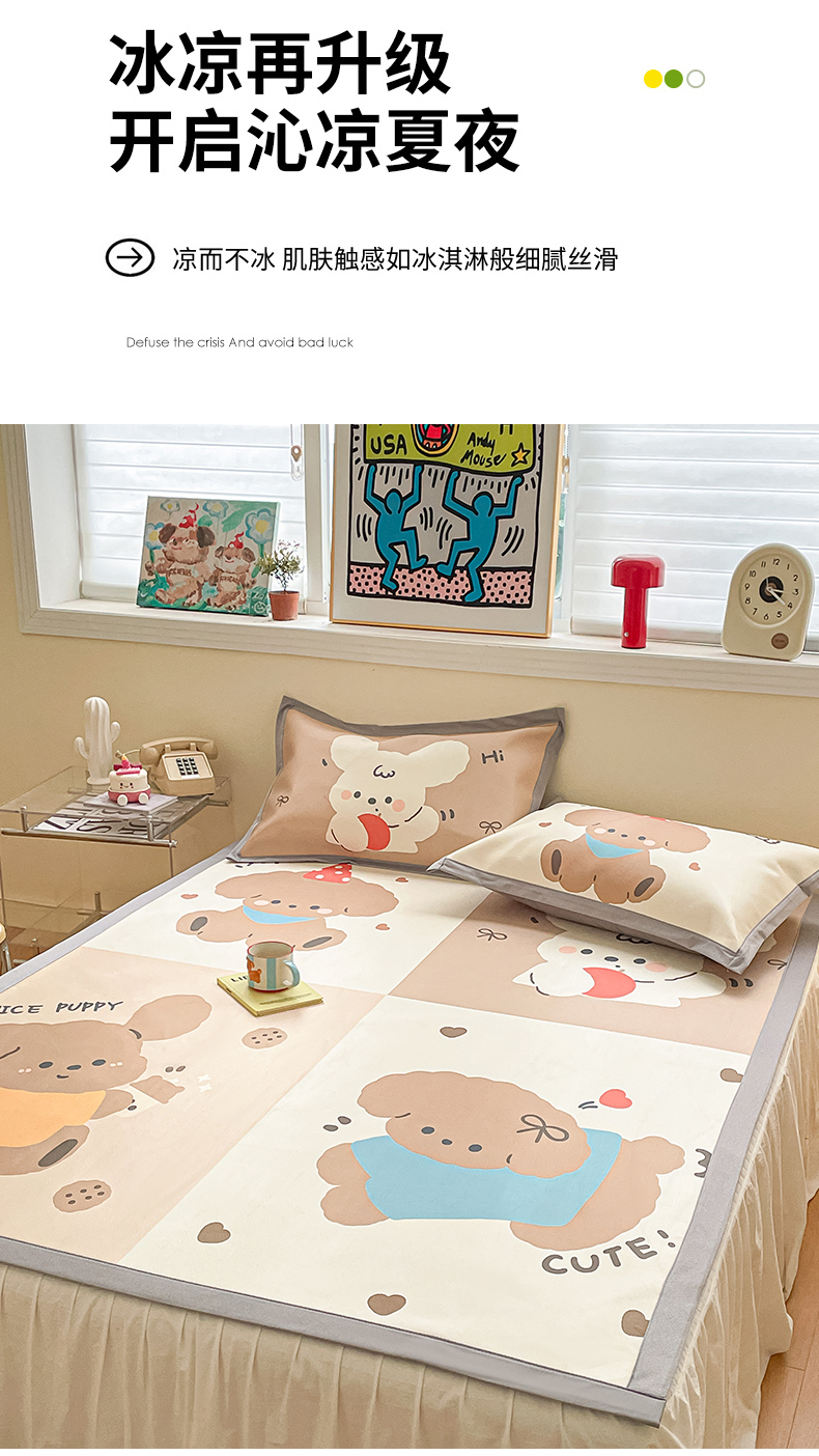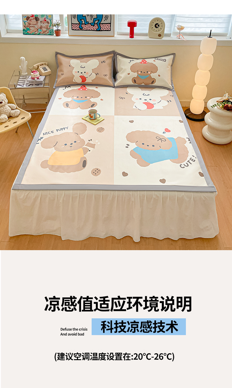 商品名称:川悦生活 2025新款大版凉感冰丝席三件套 快乐小萌狗