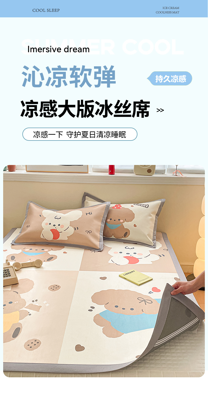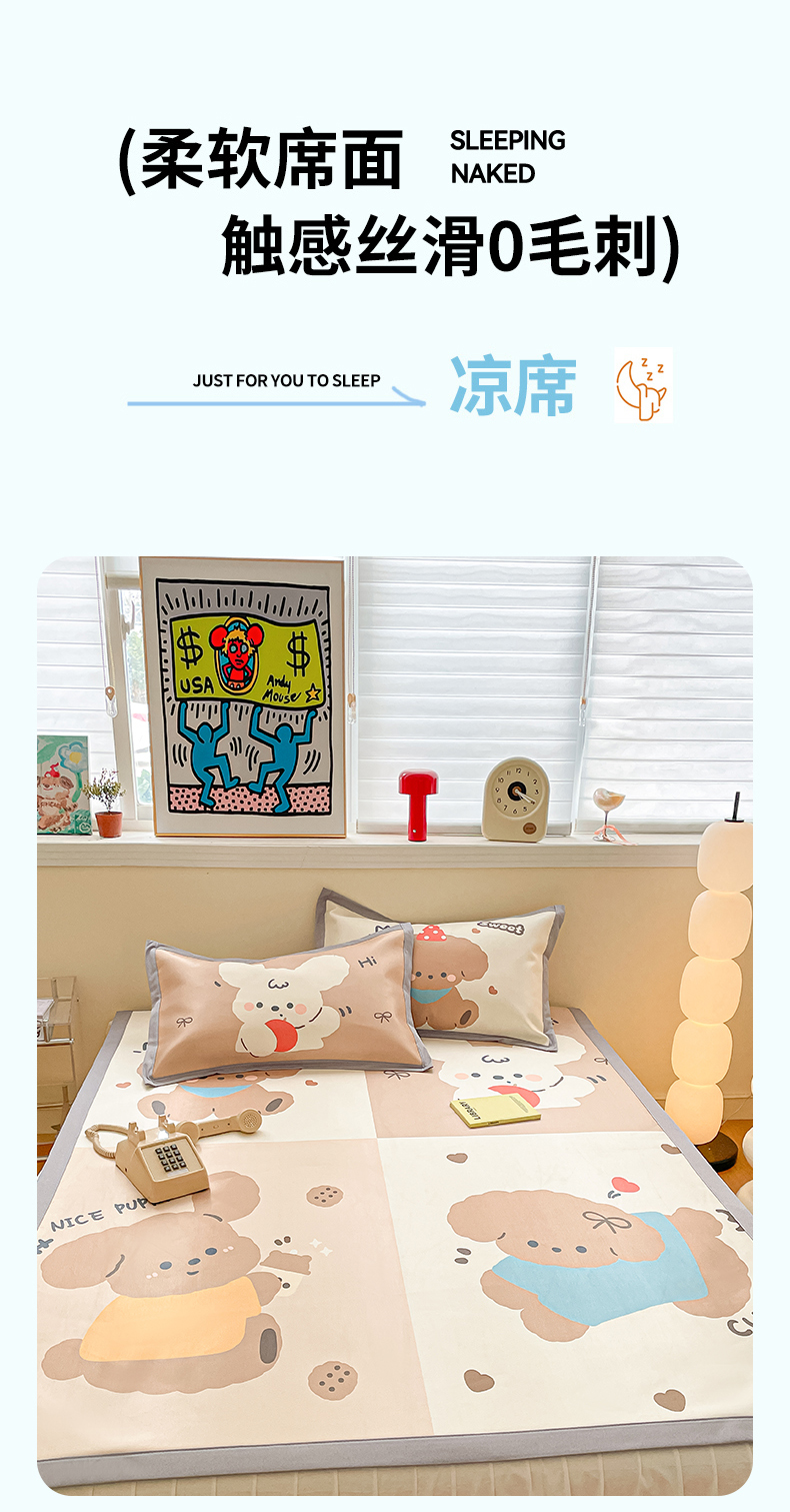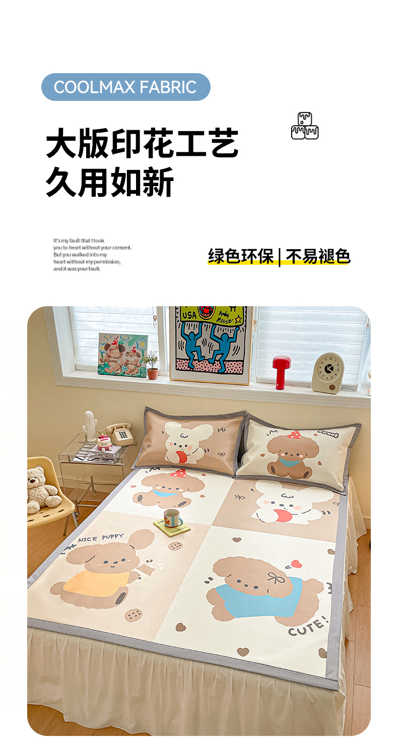 商品名称:川悦生活 2025新款大版凉感冰丝席三件套 快乐小萌狗