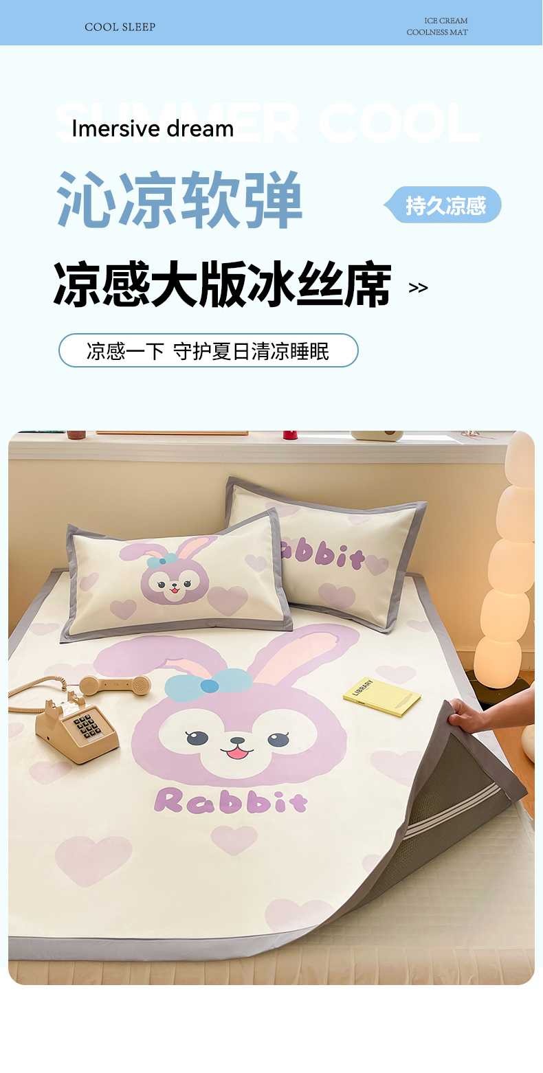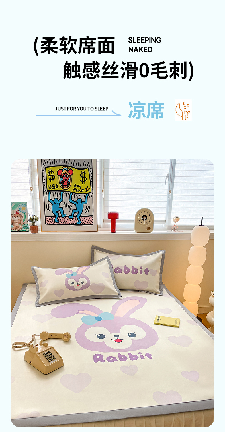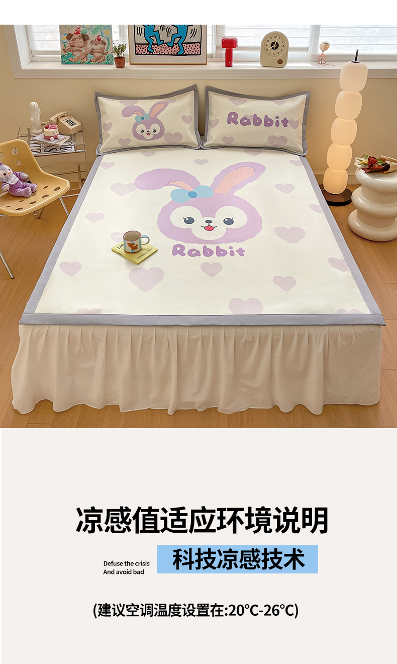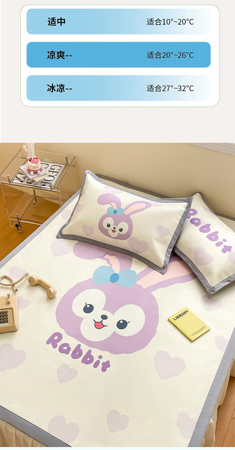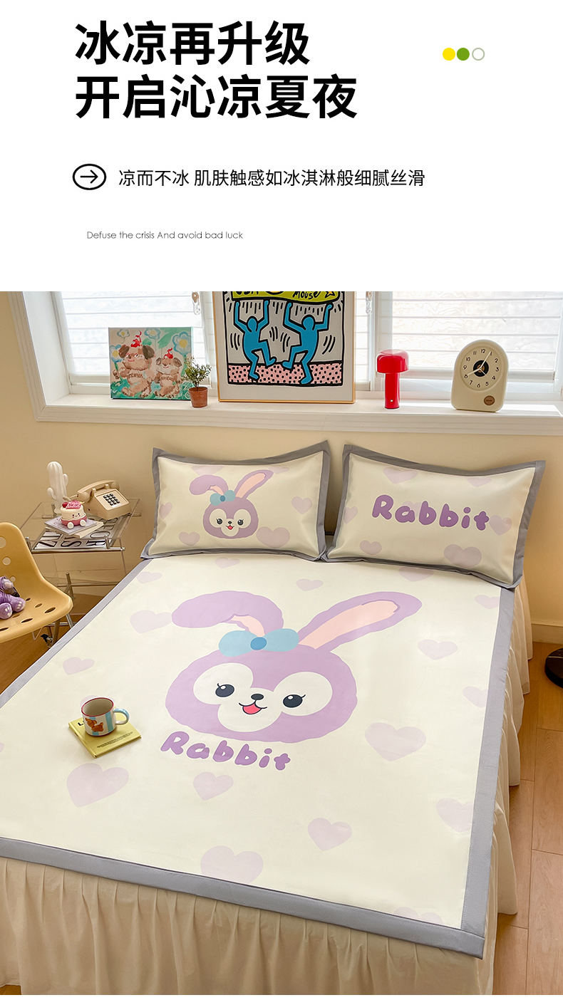 川悦生活 2025新款大版凉感冰丝席三件套 香芋兔兔