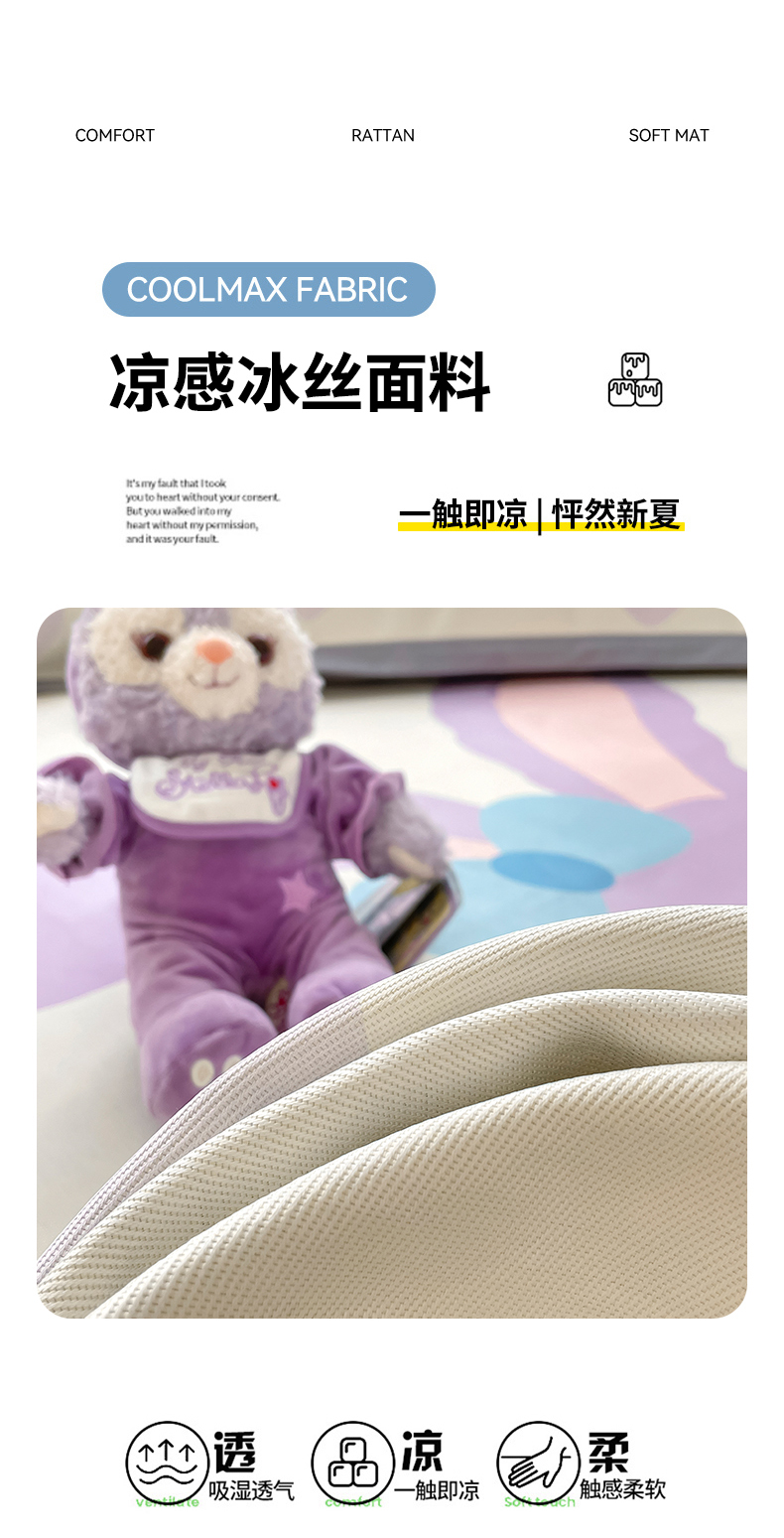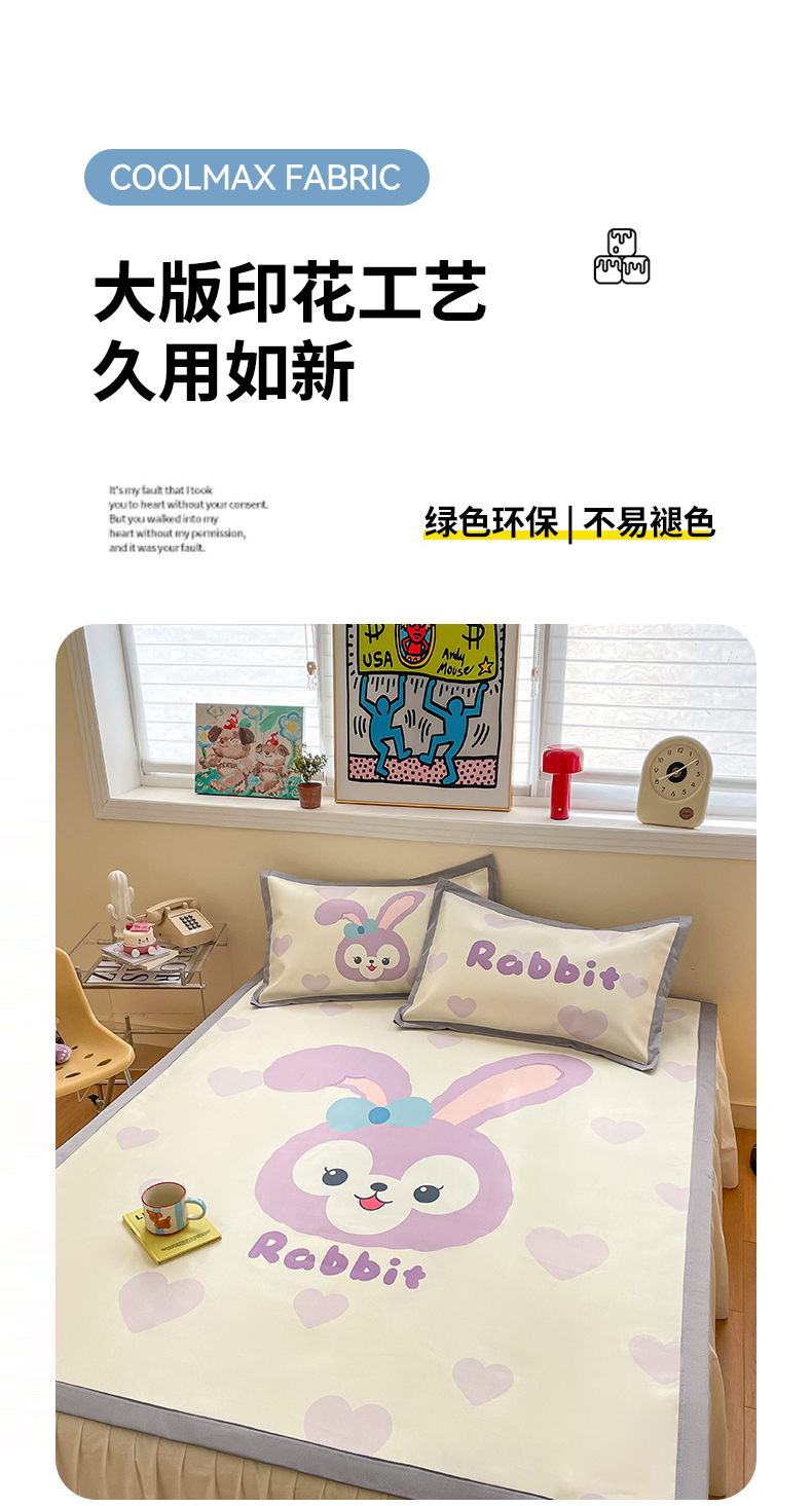 商品名称:川悦生活 2025新款大版凉感冰丝席三件套 香芋兔兔
