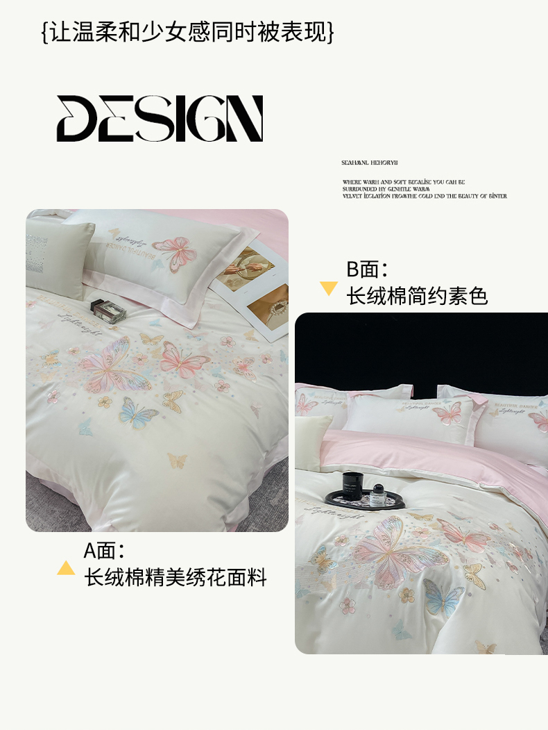 当前位置: 91家纺网 > 商品网购 > 床品套件 > 四件套 > 长绒棉四件套 > (总)丞音家纺 2025新款母婴级A类双面全棉蝴蝶刺绣纯棉长绒棉绣花四件套床单床笠