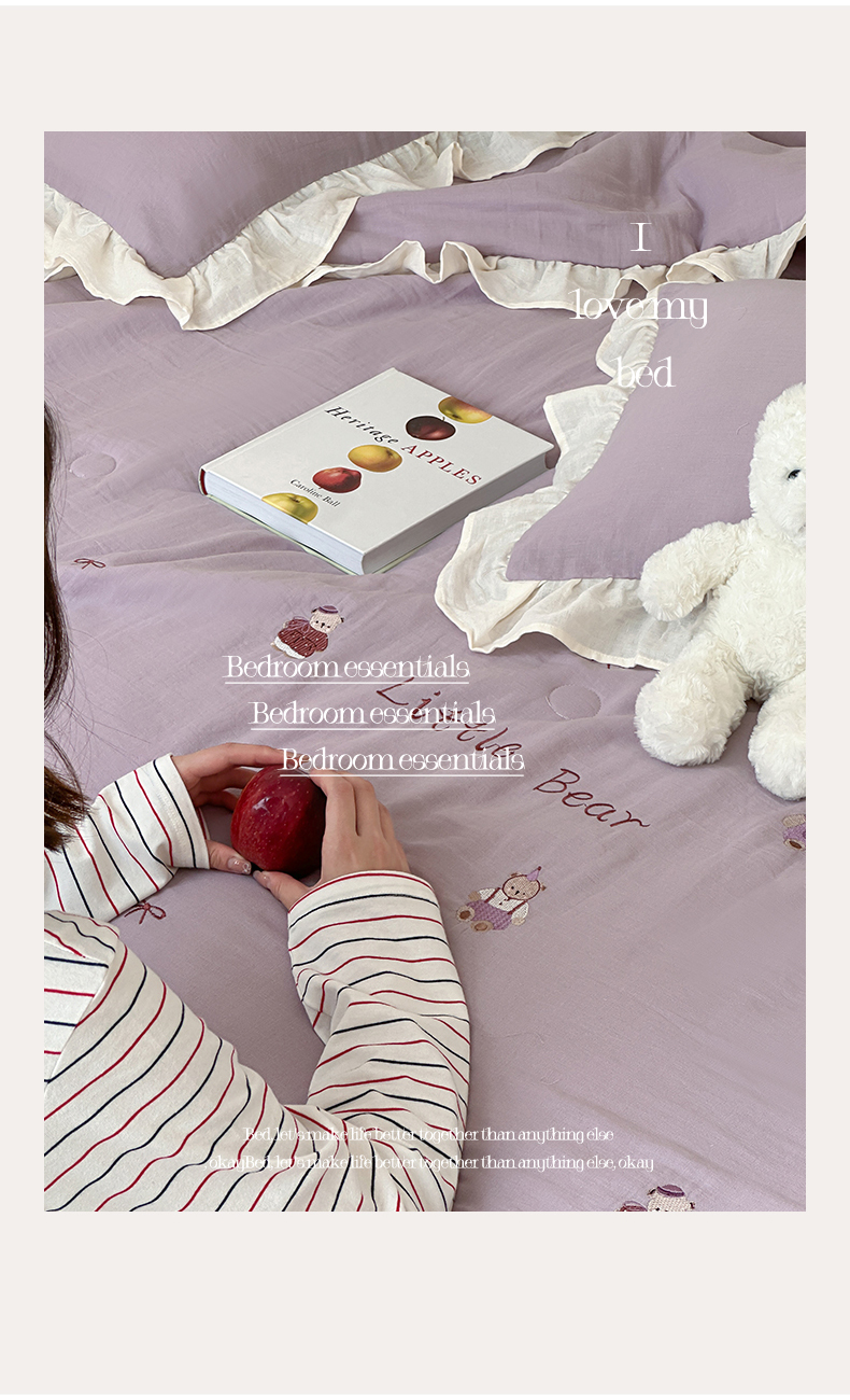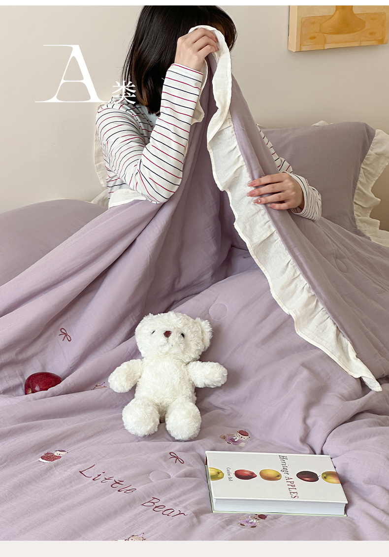 当前位置: 91家纺网 > 商品网购 > 床品套件 > 四件套 > 夏被四件套 > 一加一 2025新款A类全棉双层皱皱纱绣花娜雅醋酯纤维夏被四件套(贝尔熊系列) 贝尔熊(紫)