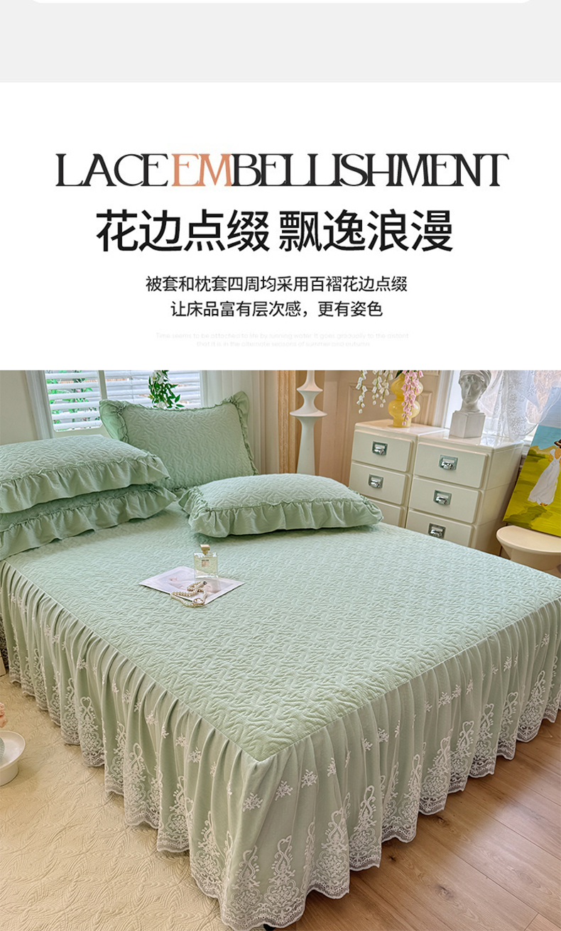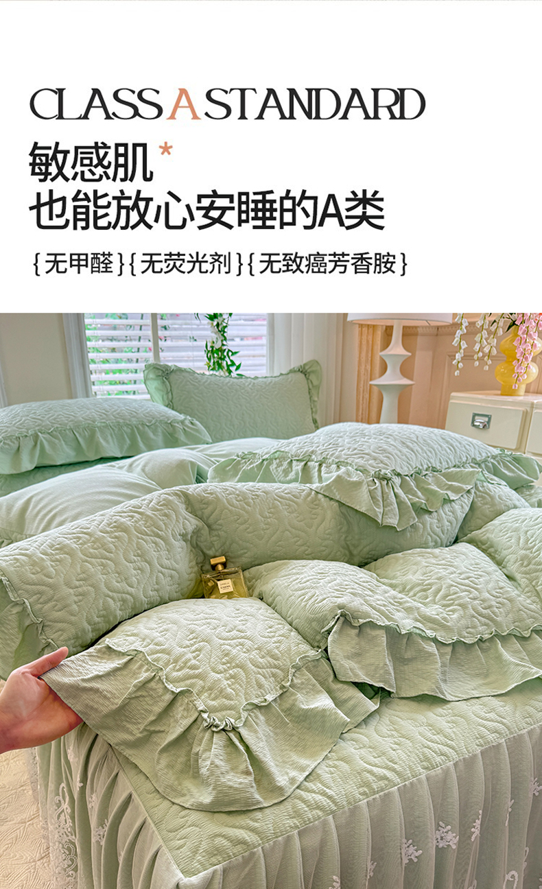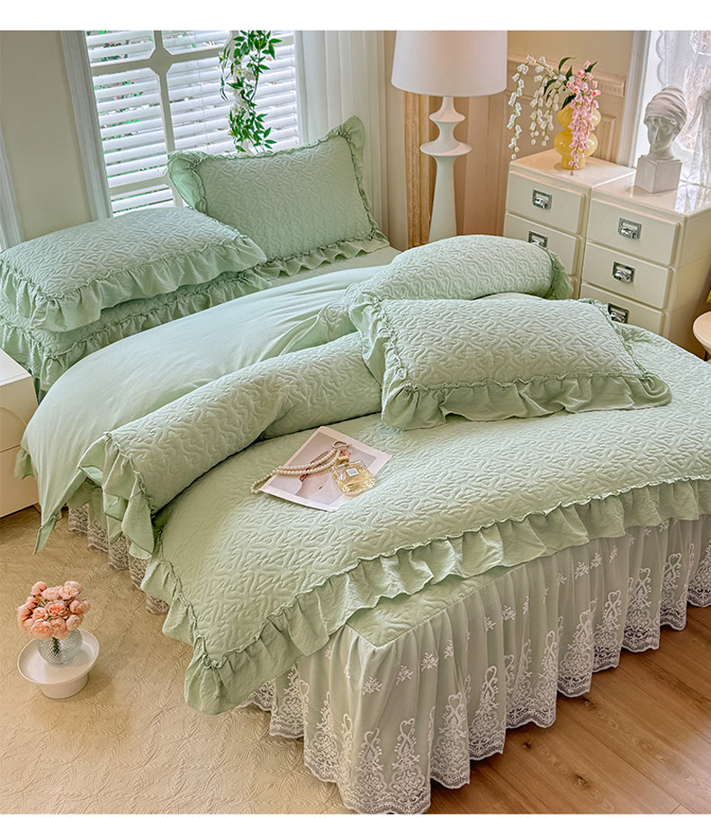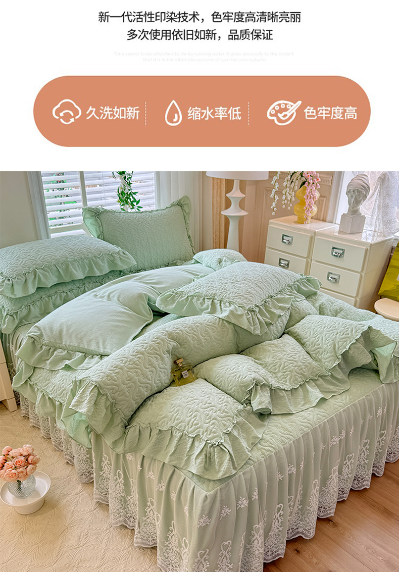 当前位置: 91家纺网 > 商品网购 > 床品套件 > 四件套 > 全棉普通四件套 > 2025新款A类华夫格大豆棉床裙四件套-梦幻花园 梦幻花园-绿