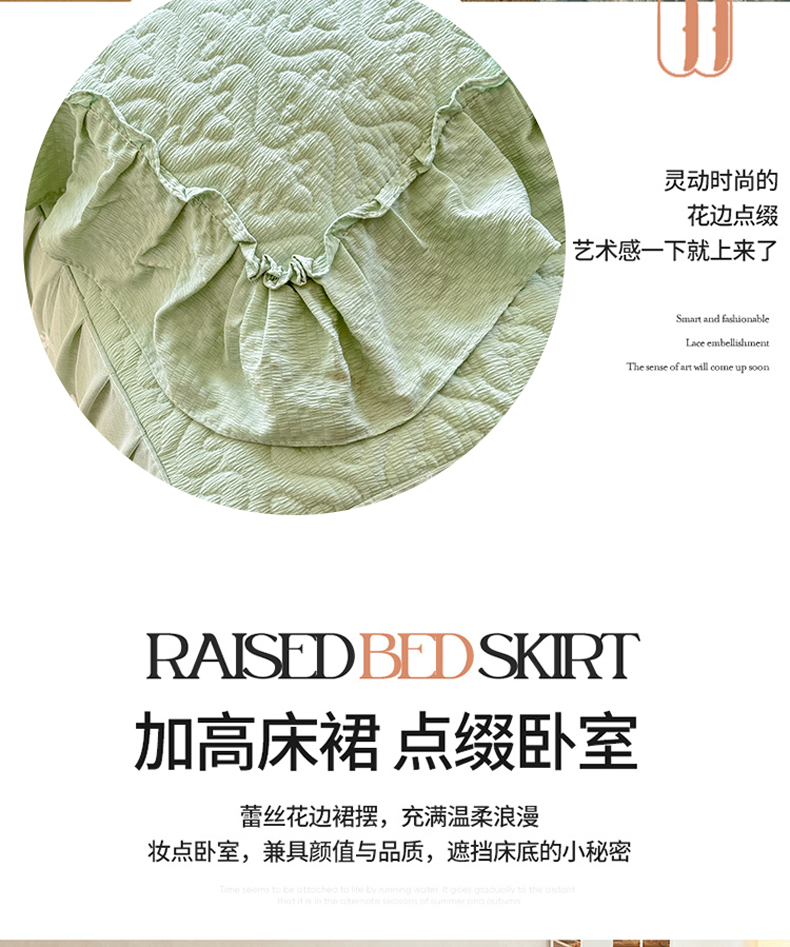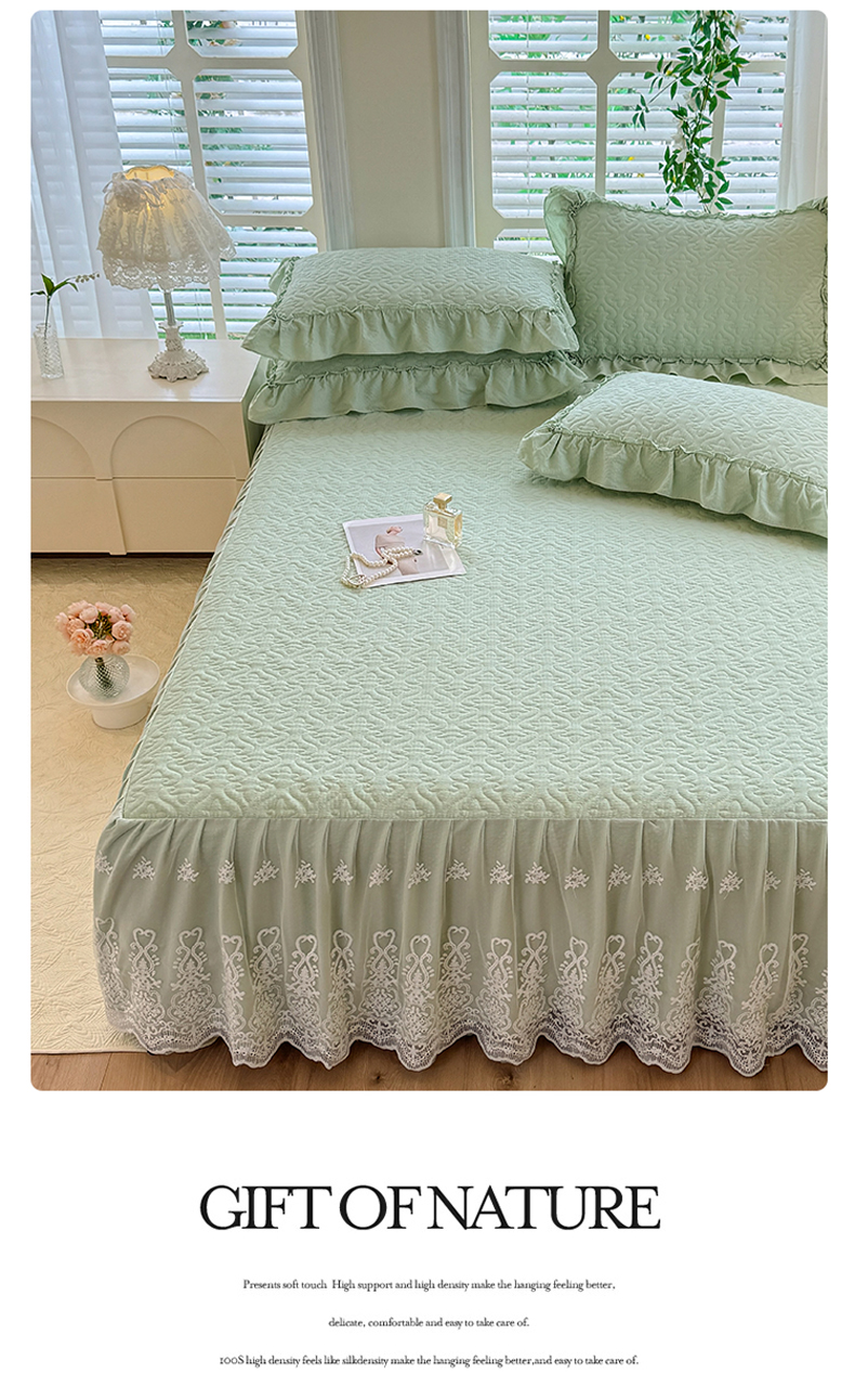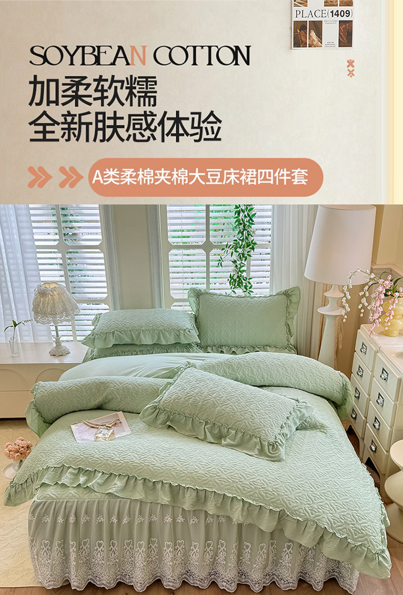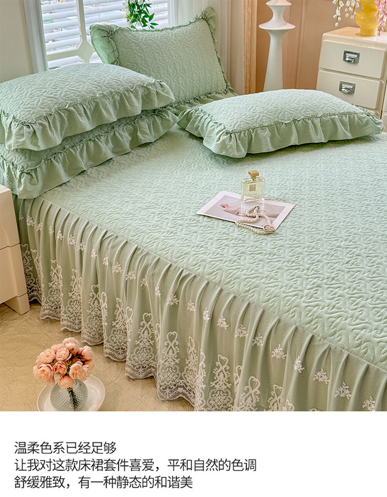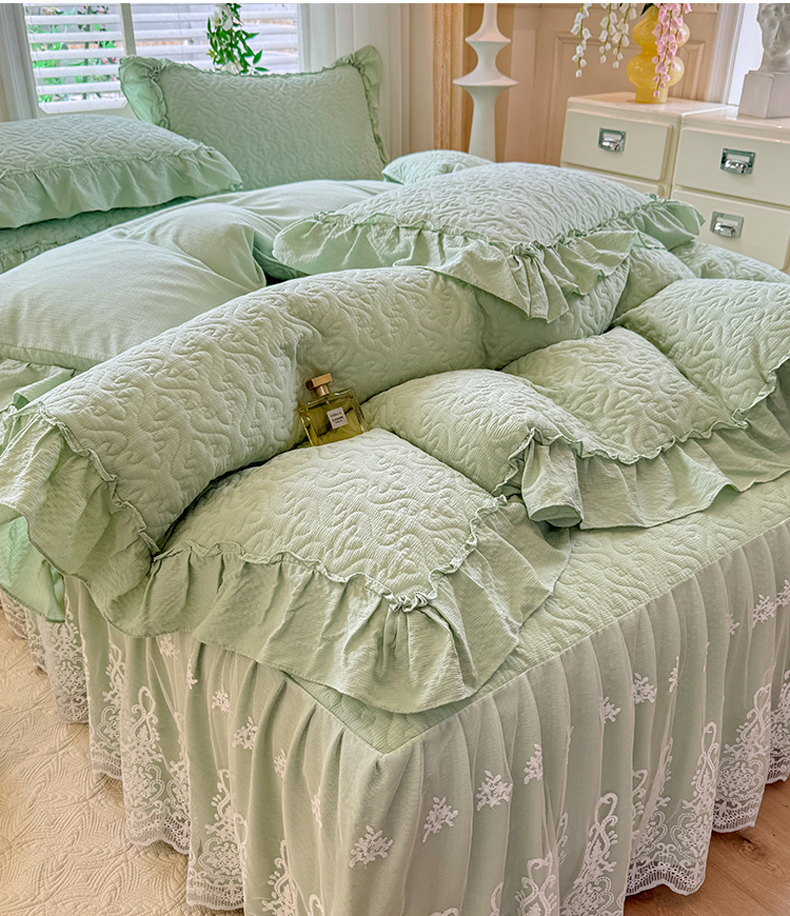 当前位置: 91家纺网 > 商品网购 > 床品套件 > 四件套 > 全棉普通四件套 > 2025新款A类华夫格大豆棉床裙四件套-梦幻花园 梦幻花园-绿