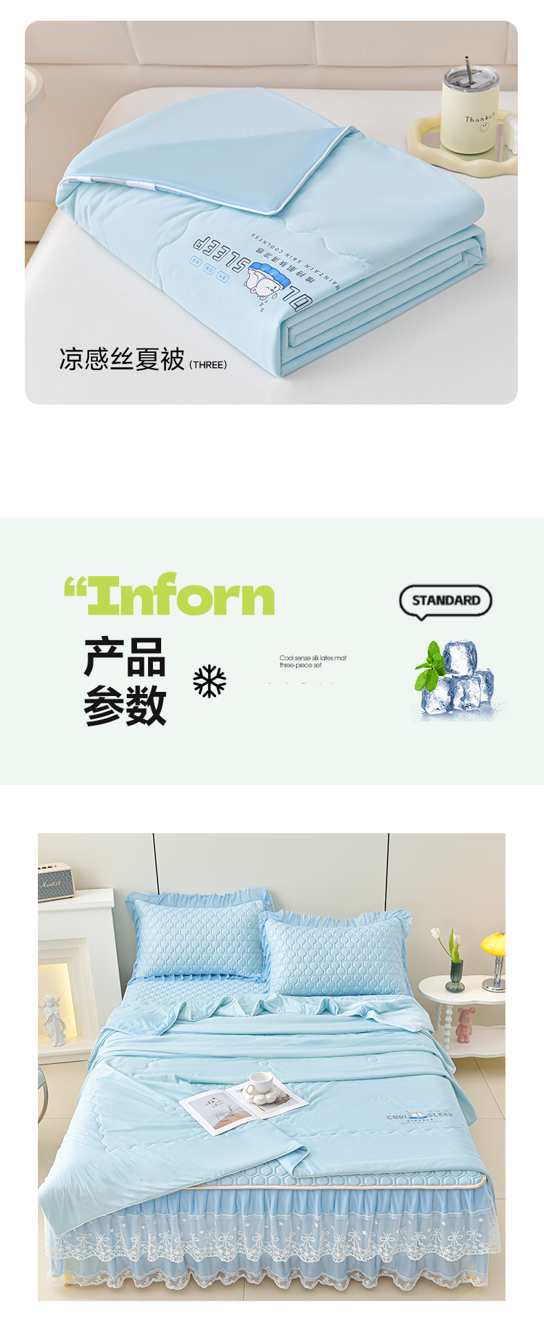 当前位置: 91家纺网 > 商品网购 > 床品套件 > 三件套 > 民新家纺 2025新款凉感丝床裙乳胶凉席系列 唯美-天蓝