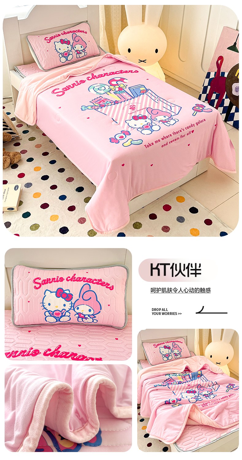 (总)花满路 2024新款有氨凉感丝卡通印花豆豆被儿童被夏被被子,玉桂狗,库洛米,KT猫,卡帕狗,米乐蒂