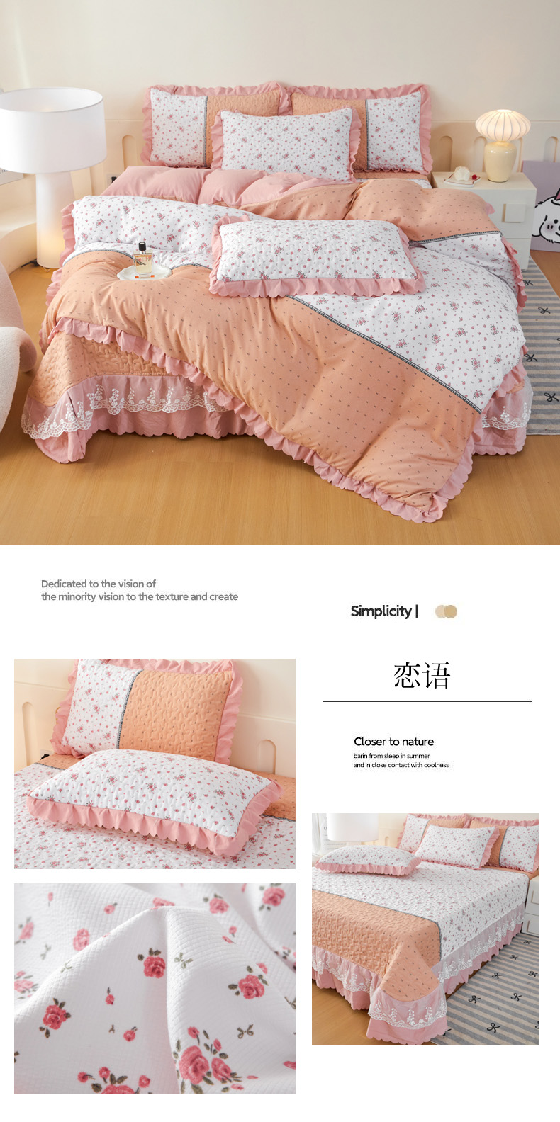 艺慕家纺 2025新款时尚印花针织棉床盖套件 恋语