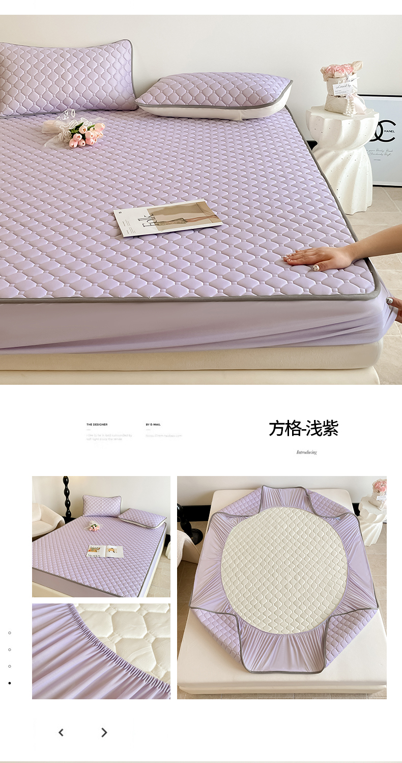 商品名称:2025新款加厚0.5纯色凉感丝单床笠乳胶凉席 方格-浅紫