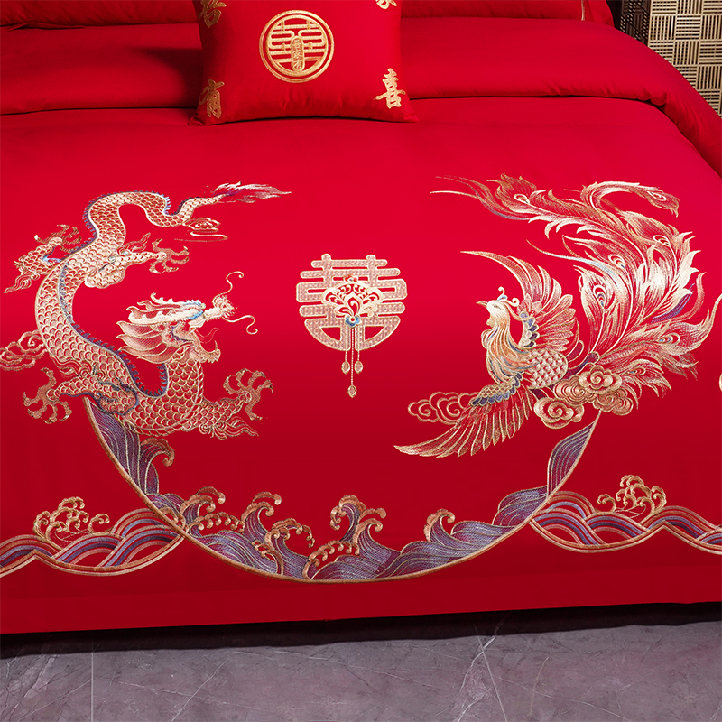 富之雅2024款全棉长绒棉婚庆四件套多件套 龙凤喜缘,龙凤喜缘