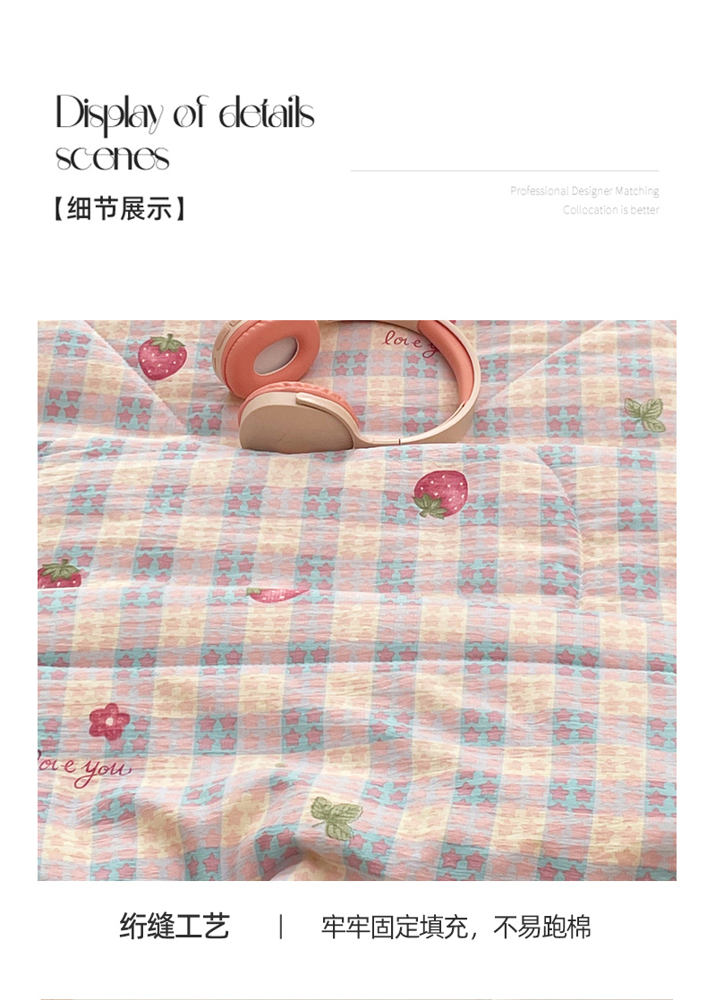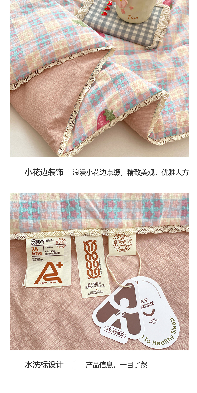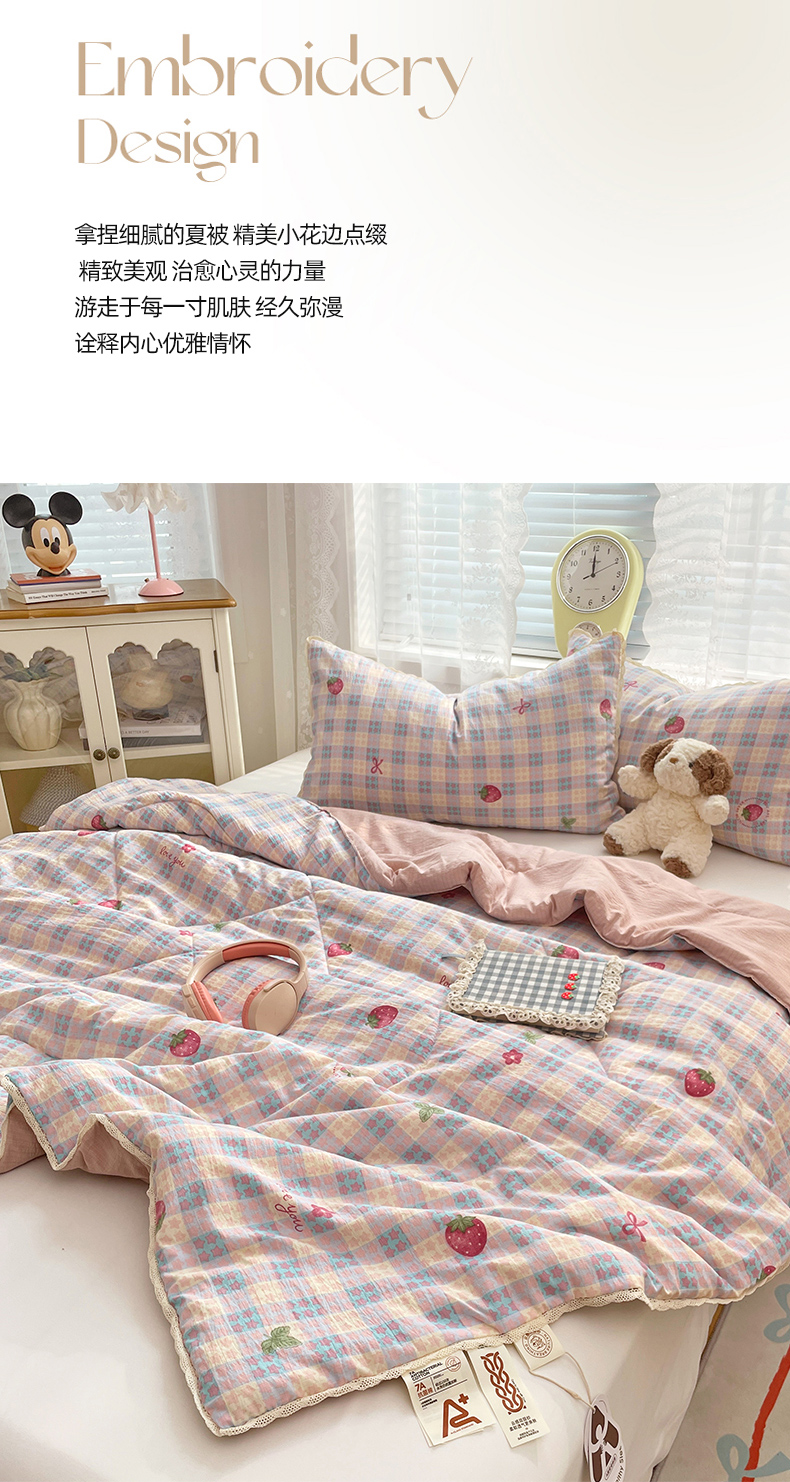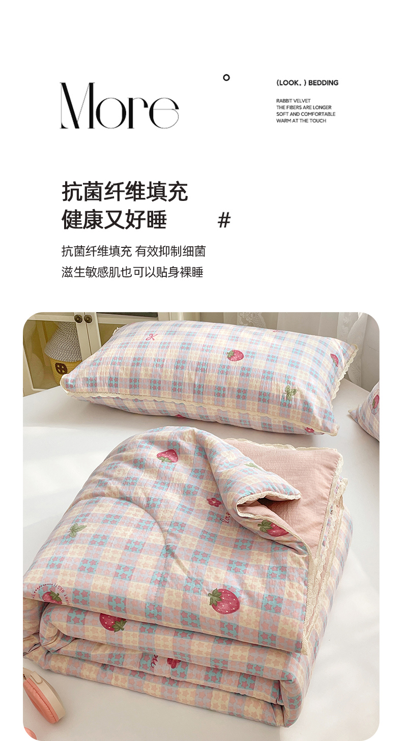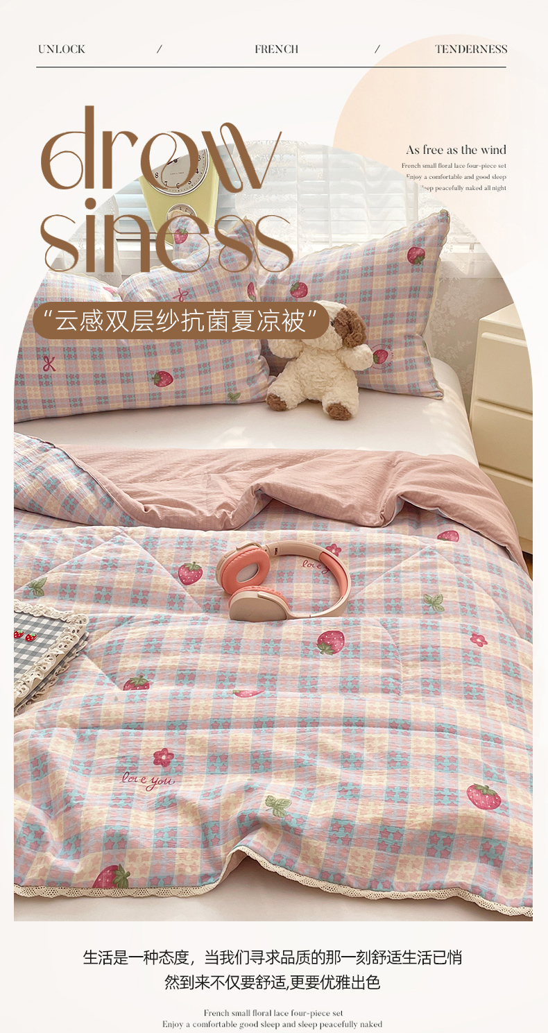 商品名称:优承佳生活馆 2025新款云感双层纱浪漫小花边抗菌夏被子被芯 草莓酱