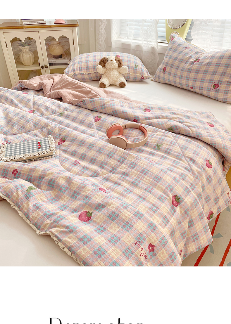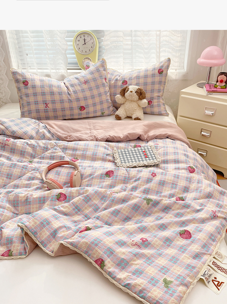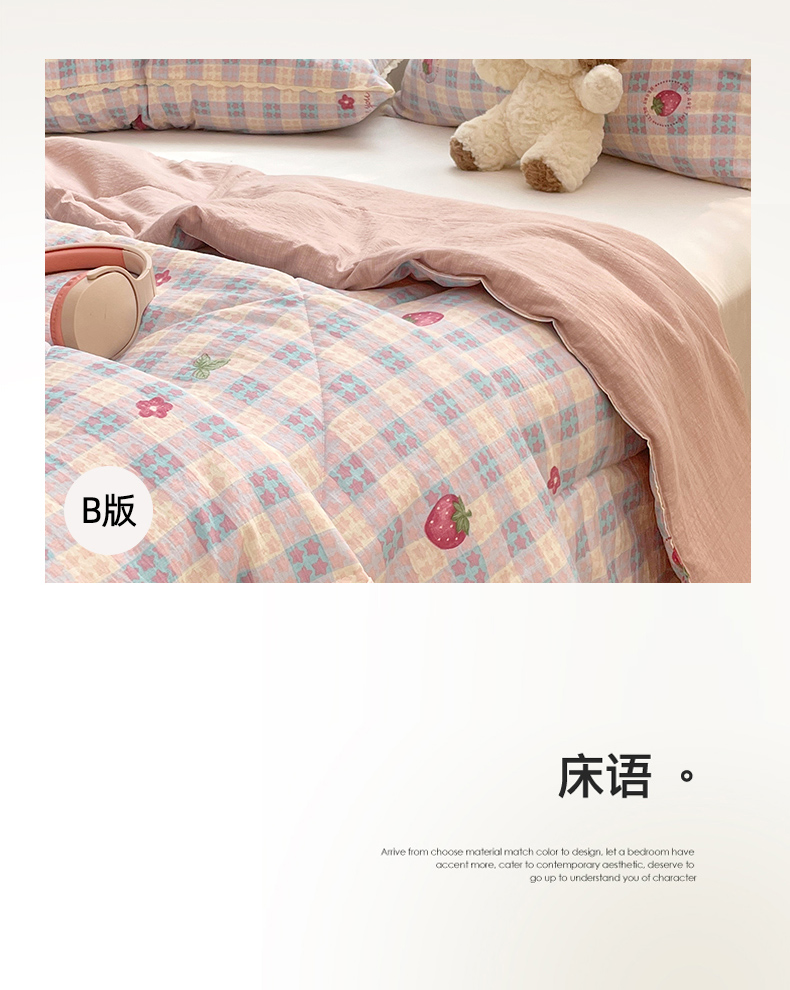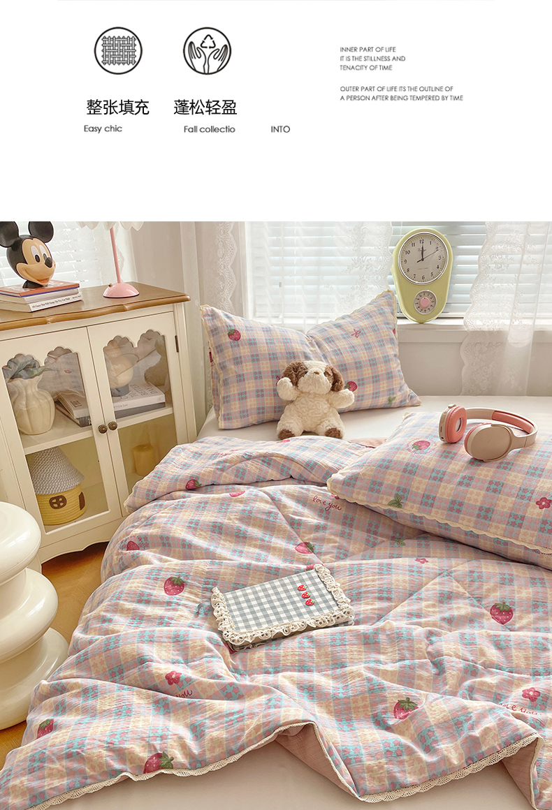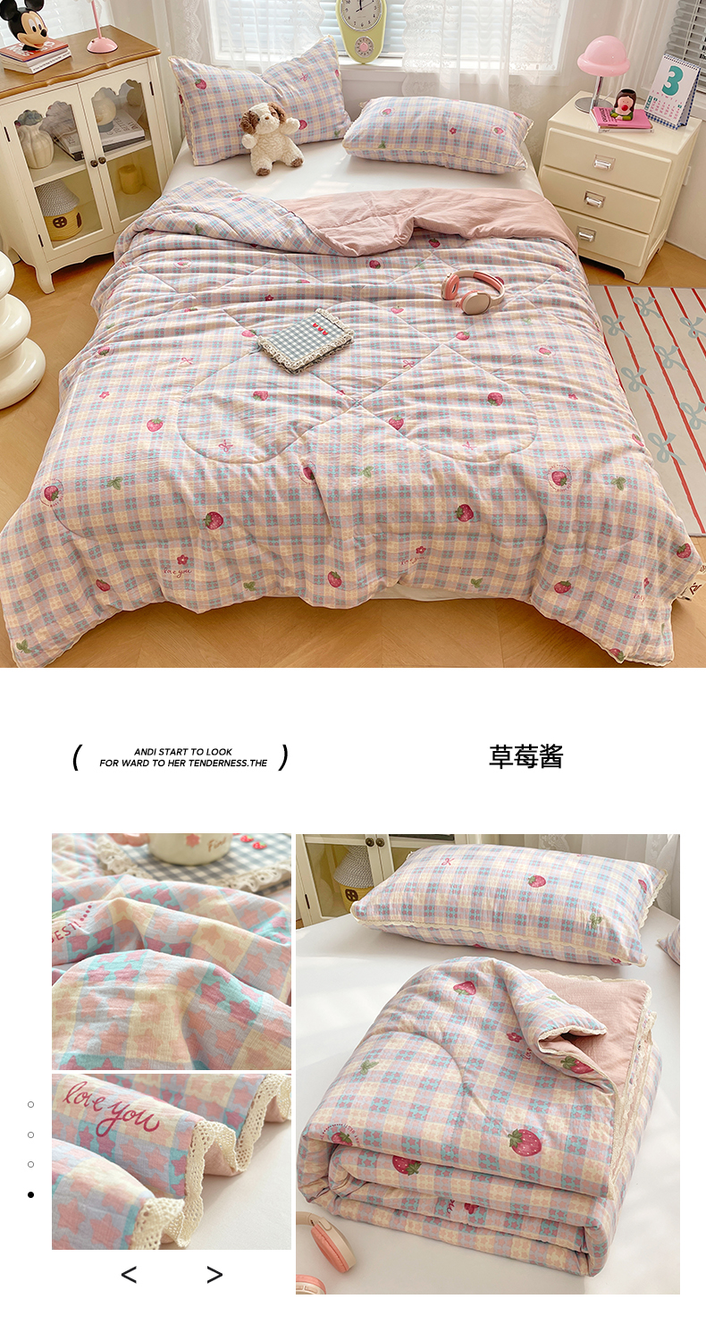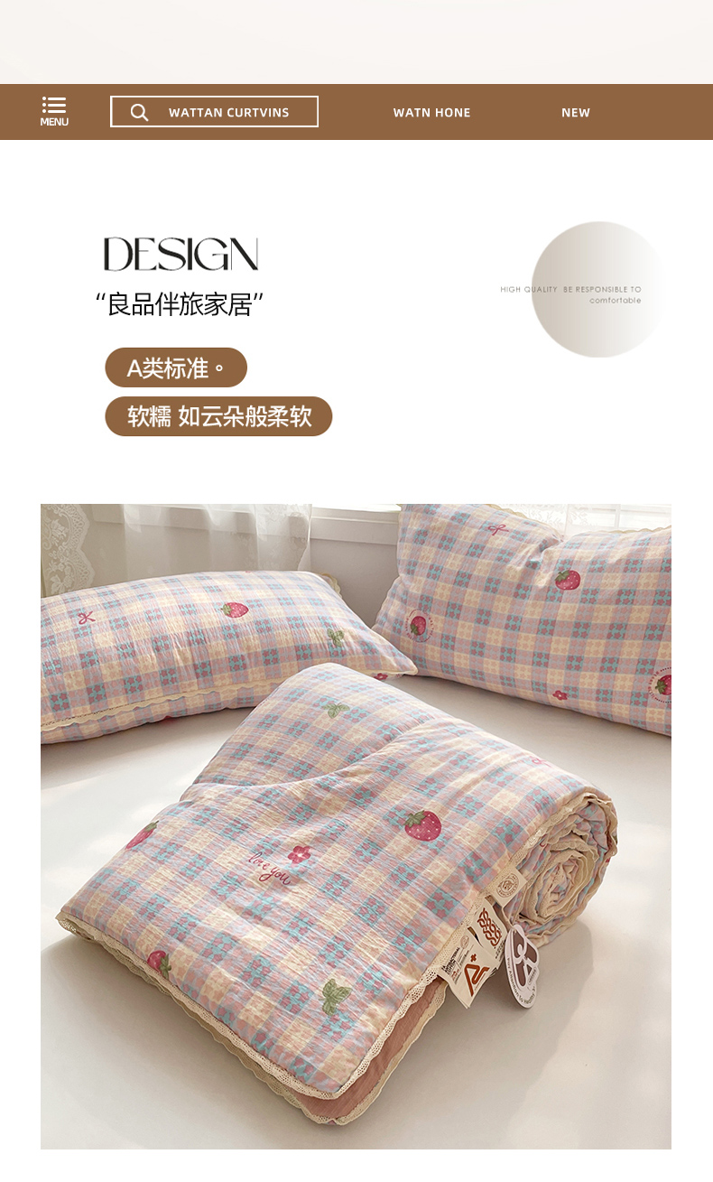 商品名称:优承佳生活馆 2025新款云感双层纱浪漫小花边抗菌夏被子被芯 草莓酱