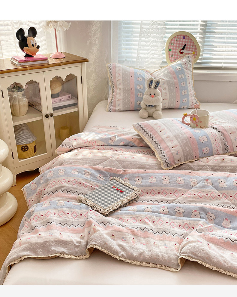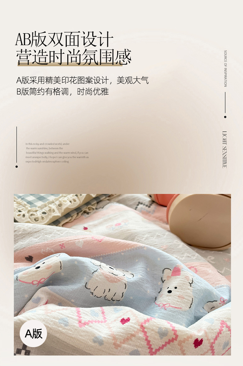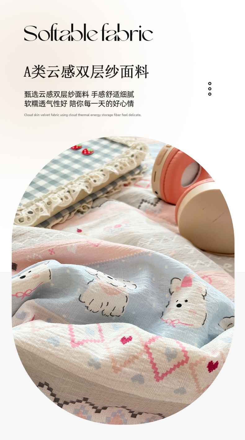 (总)优承佳生活馆 2025新款学生季小清新有氧双层纱印花四件套(提供买家秀),爱心格纹,缤纷蝶语,宠物乐园,春日花衾,粉蝶甜憩,红格灰衾,蝴蝶芳华,花丛女孩,花眠小筑,绿芜花梦,浅夏花汀,浅紫花憩,蔷薇绮梦,甜莓樱桃,雾蓝花眠