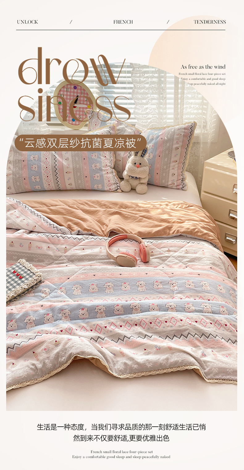 商品名称:优承佳生活馆 2025新款云感双层纱浪漫小花边抗菌夏被子被芯 阿纳亚