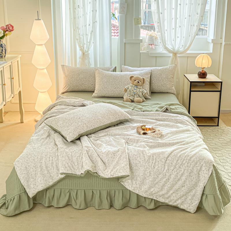 (总)一比一 2026新款云感皱皱双层纱四件套-全棉花边款【控价99元销售】,半夏绿,百福蓝,薄荷微凉,春风里,春晓,豆蔻,蝴蝶梦,可颂,兰黛,山野栀子,素颜,太妃糖,心动,遇见,芝士奶酪,紫爱心,紫苏,花园兔,蜡笔画,小黑兔,白茶-绿,初恋,莱茵河畔,桃花诺