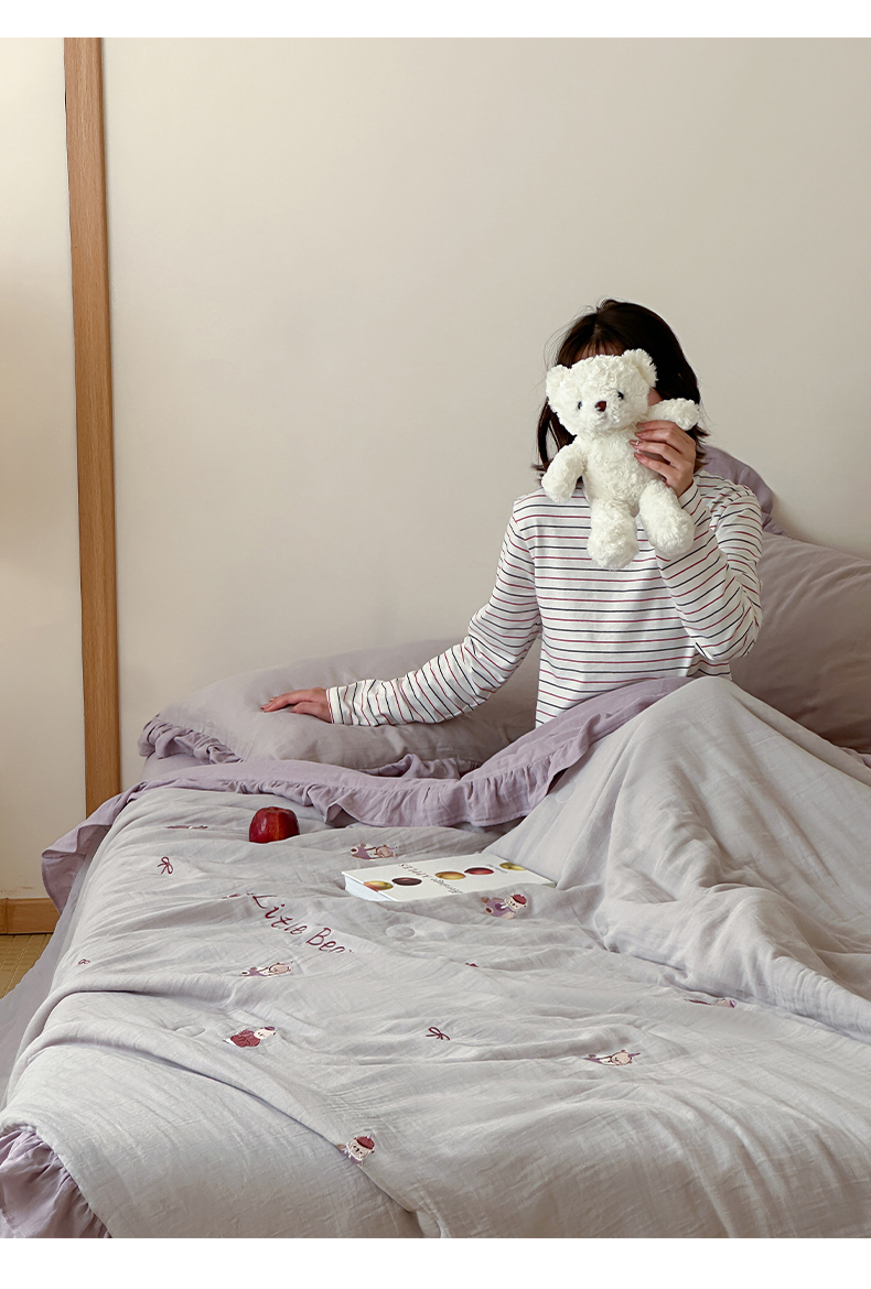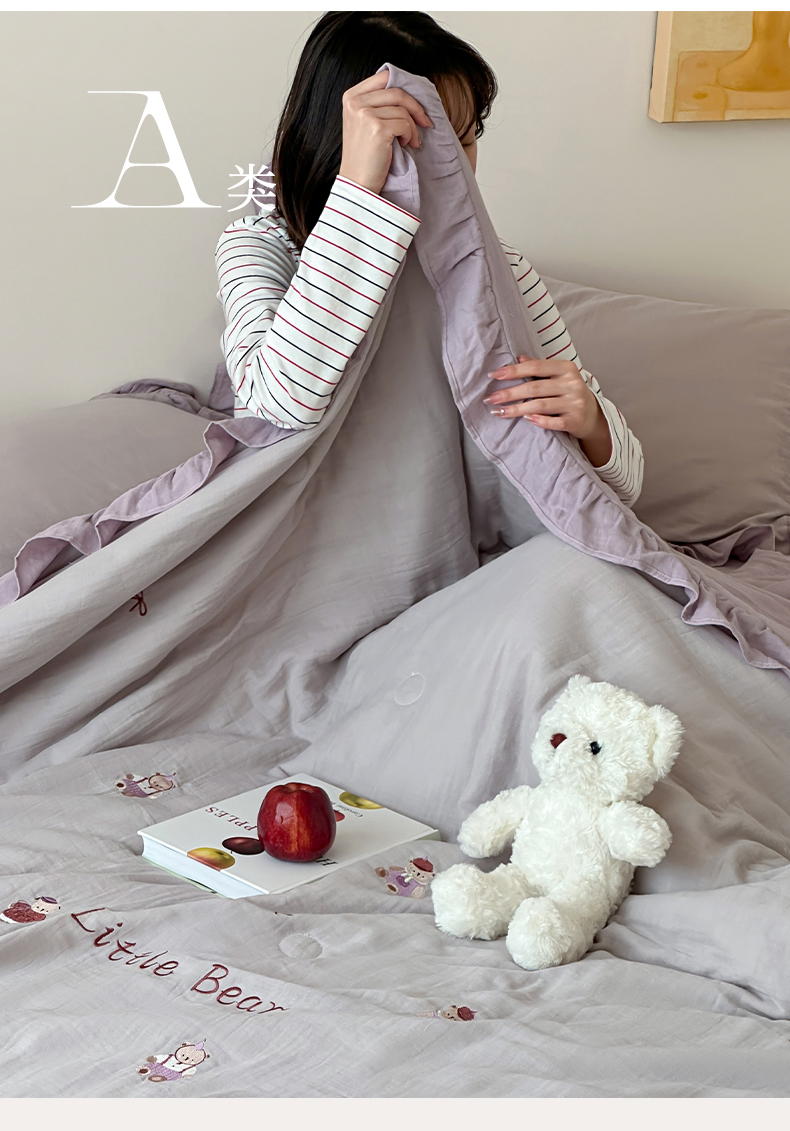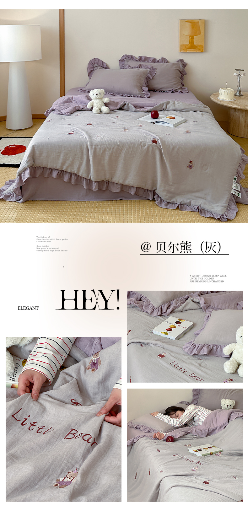当前位置: 91家纺网 > 商品网购 > 床品套件 > 四件套 > 全棉普通四件套 > 卡巴伦2025新款A类全棉双层皱皱纱绣花娜雅醋酯纤维夏被四件套 贝尔熊(灰)
