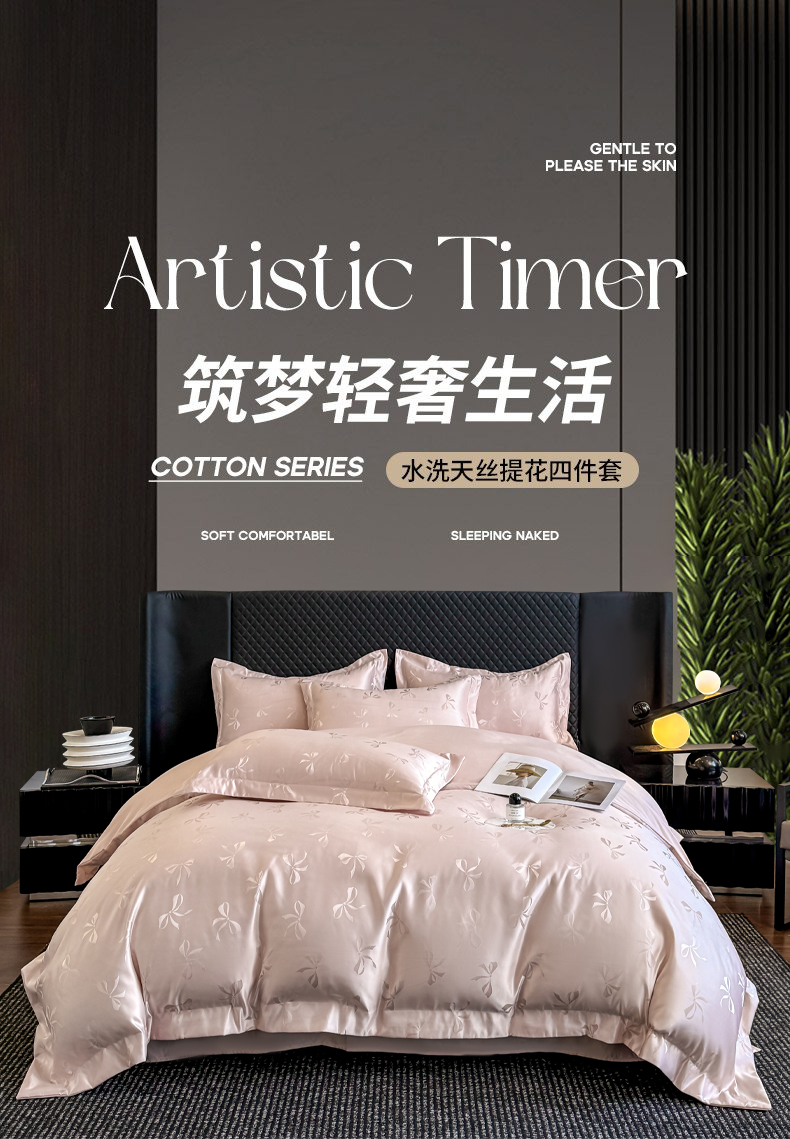 商品名称:狂想家 2025新款高奢提花水洗天丝系列四件套 情结轻奢粉