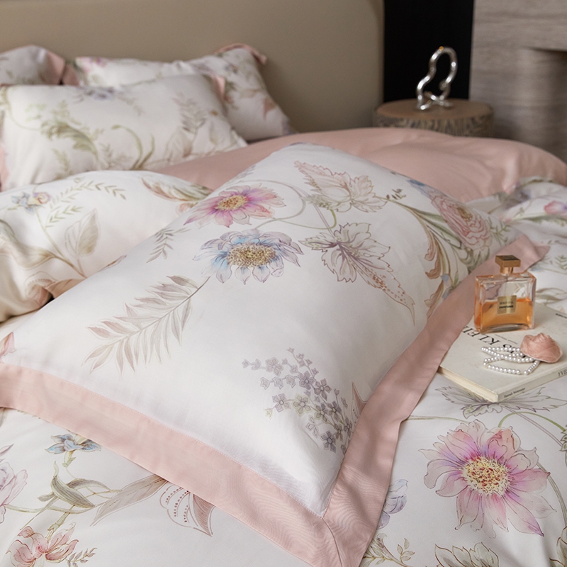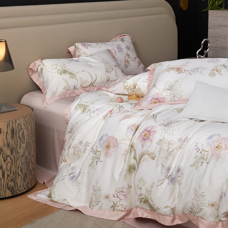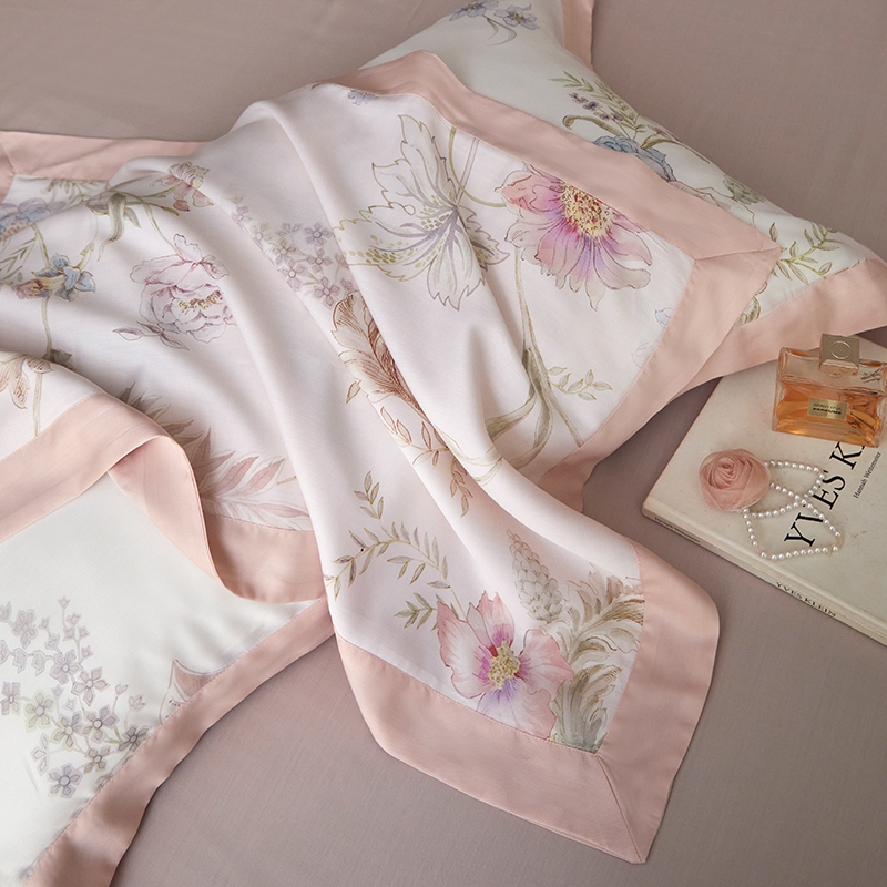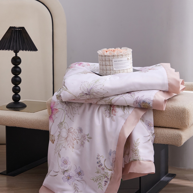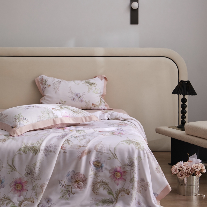 薏思家纺 2025新款50支莱赛尔天丝数码印花夏被四件套(礼盒包装) 春日落樱