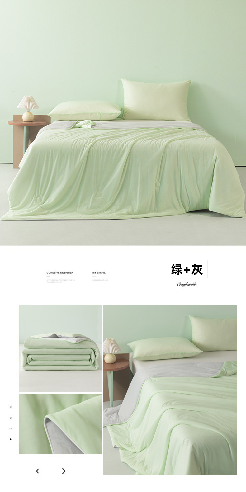 瑜珠家纺 2025新款瑜珠云母凉感丝夏被 绿+灰