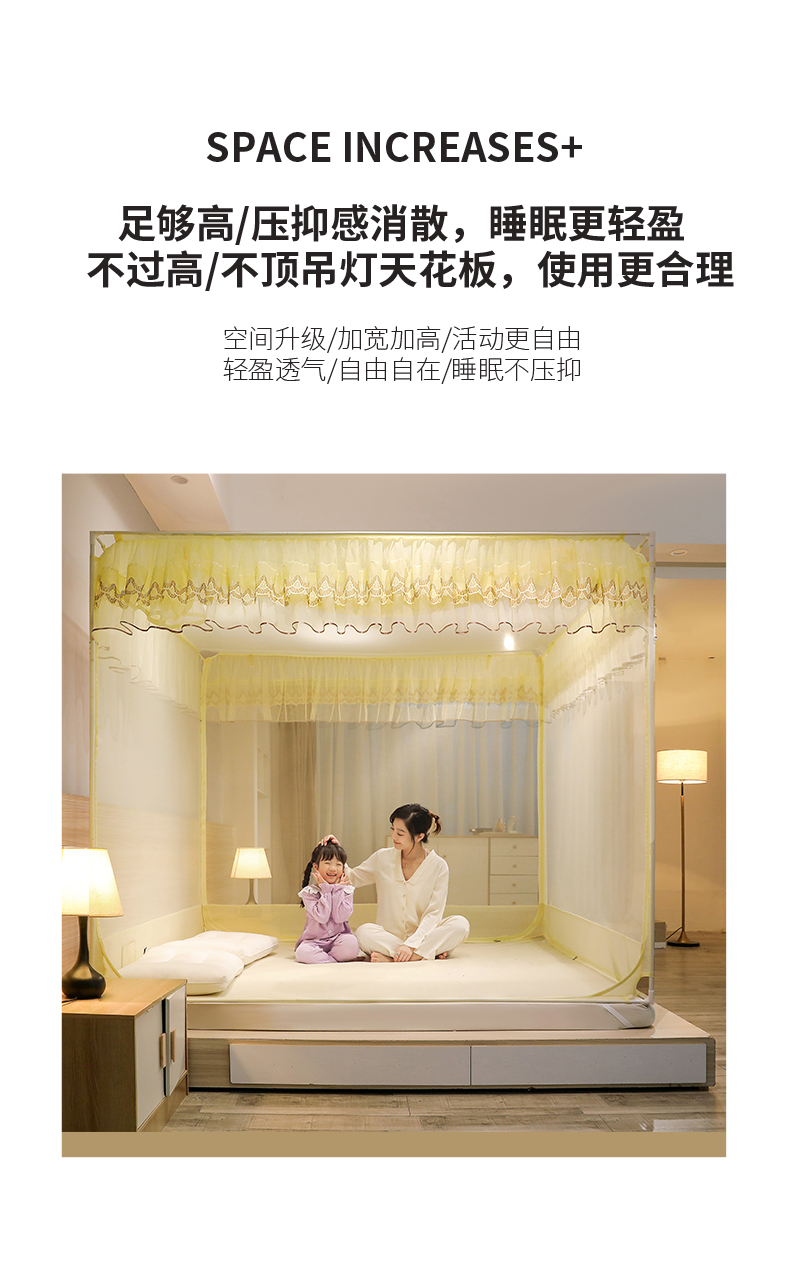 (总)夏彩 2025新款浪漫唯美T+U床笠式坐床外穿防摔蚊帐-88610,886610冰海蓝,886610极光白,886610浅粉玉,886610浅水蓝,886610蔷薇粉,886610杏仁黄,886610雅士灰