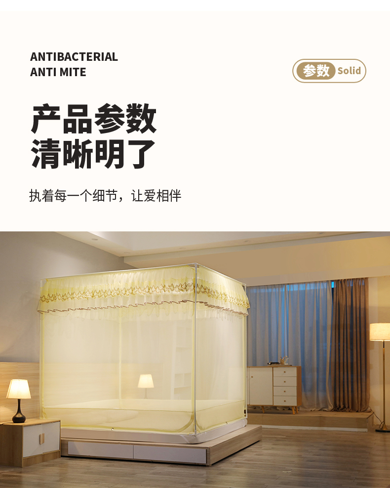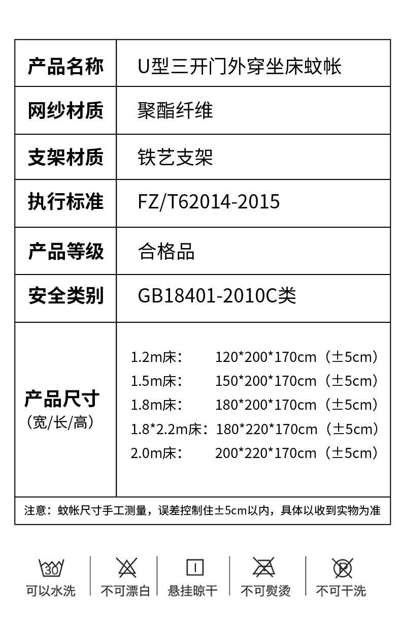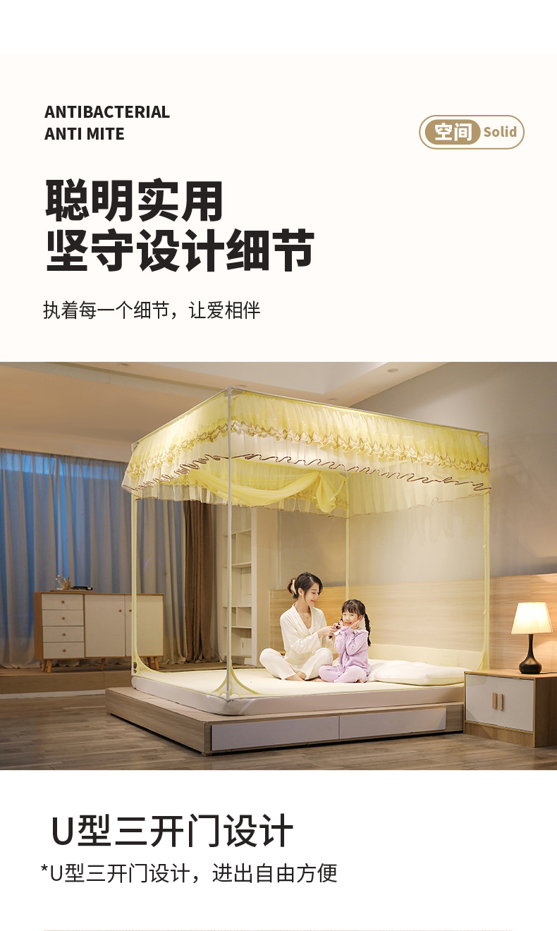 商品名称:夏彩 2025新款U型三开门外穿坐床蚊帐系列-货号88538/88539 88538米黄