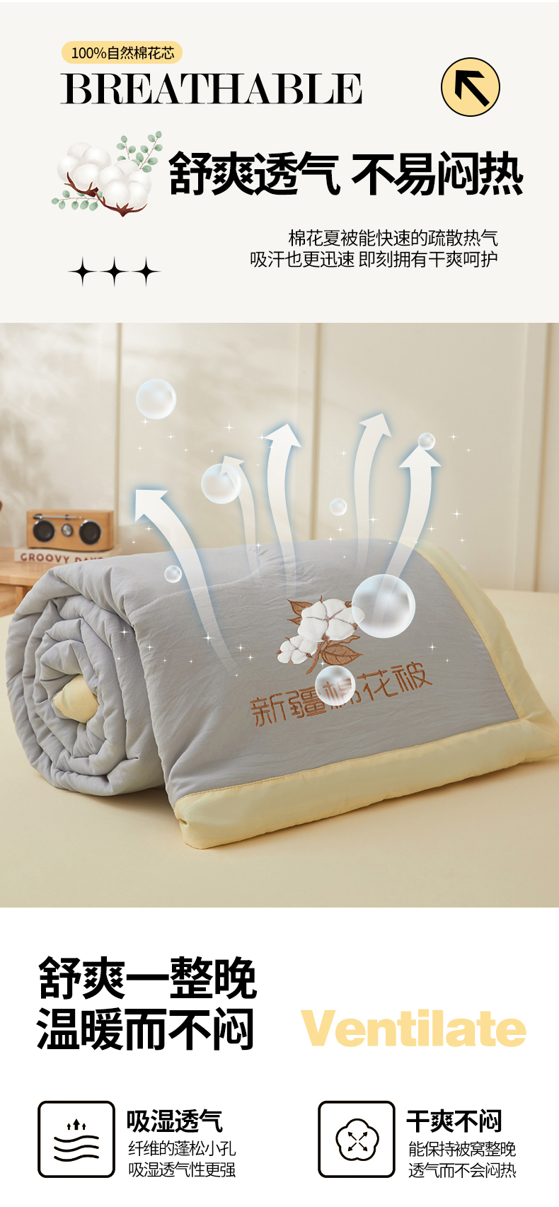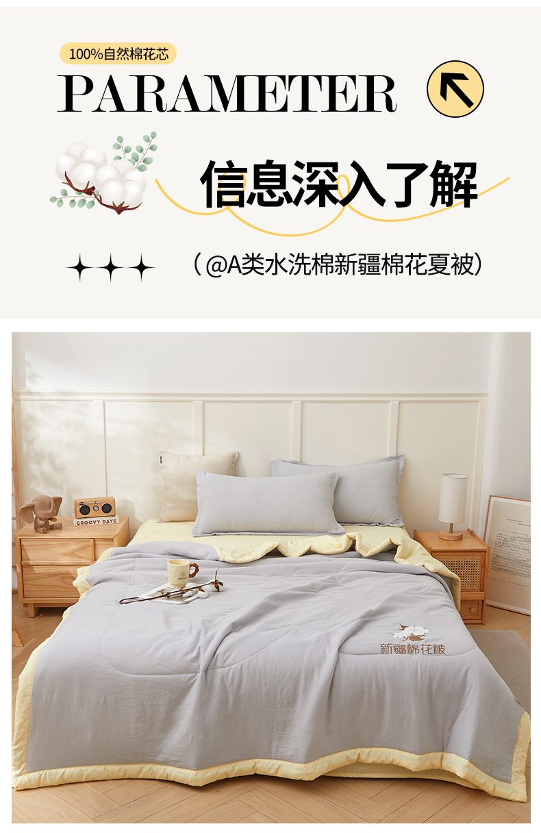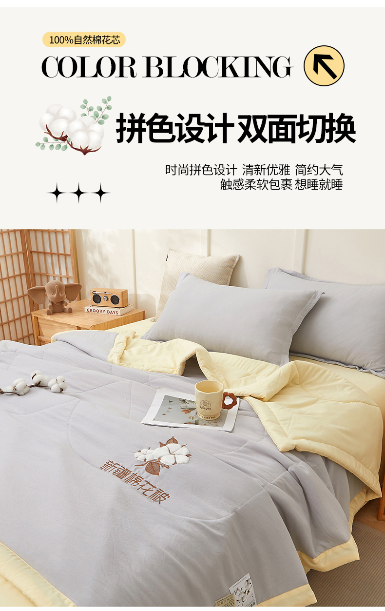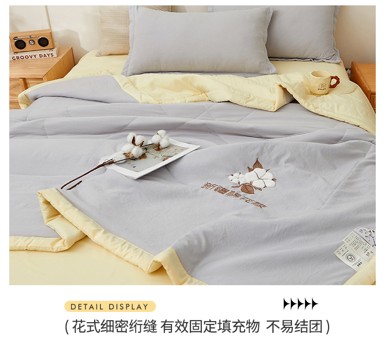 商品名称:西域种棉人·千百笠 2025新款A类100%新疆棉花夏凉被纯棉全棉填充毛巾绣绣花纯色双拼原棉空调被夏被 云暖-云雾灰