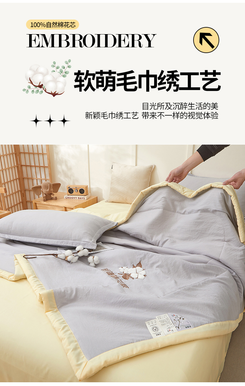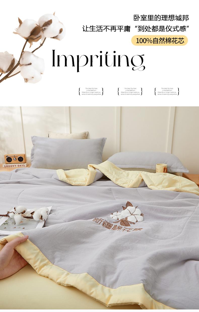 被子 > 夏被 > 西域种棉人·千百笠 2025新款A类100%新疆棉花夏凉被纯棉全棉填充毛巾绣绣花纯色双拼原棉空调被夏被 云暖-云雾灰