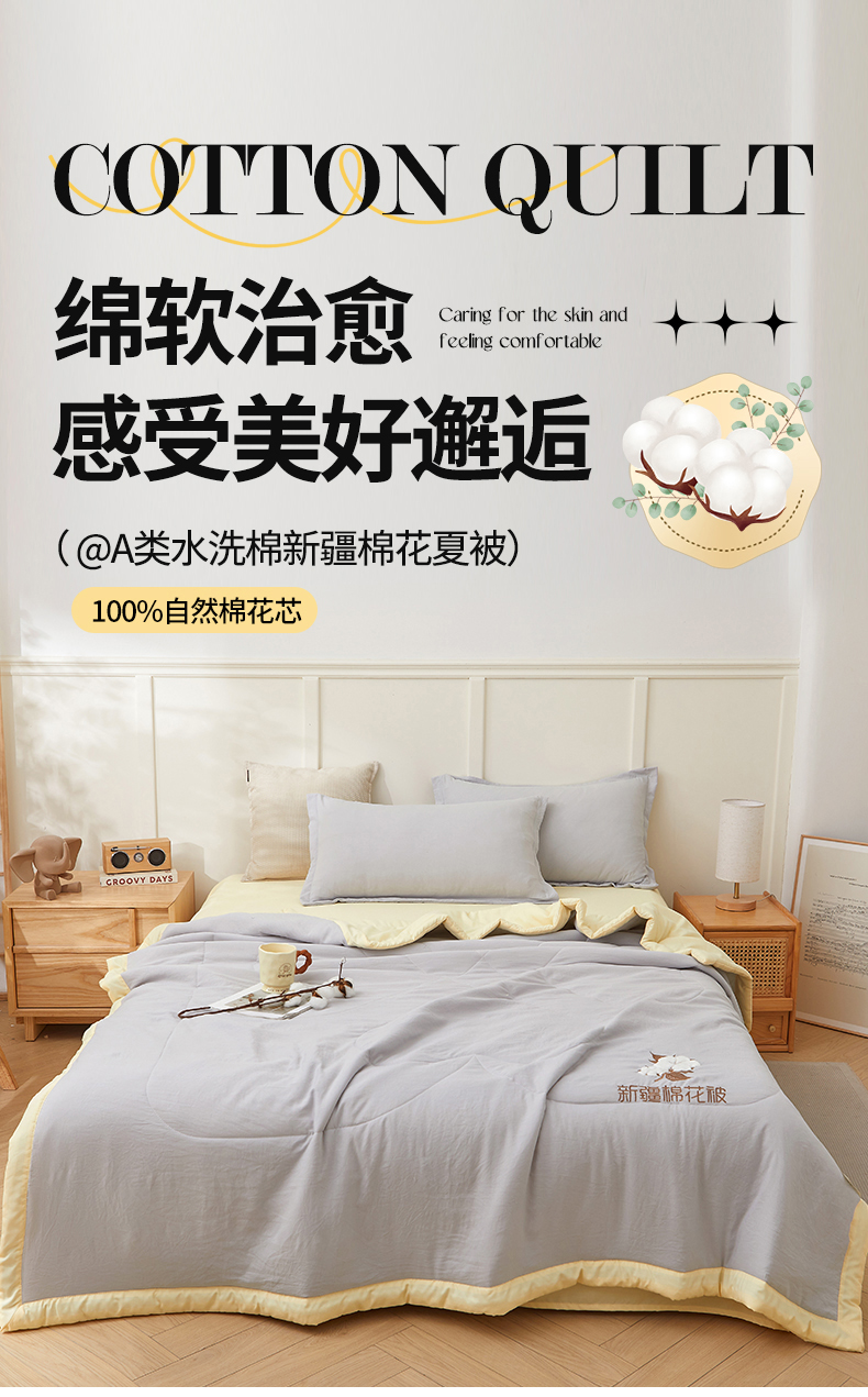 (总)西域种棉人·千百笠 2025新款A类抗菌里外全棉纯棉100%新疆棉花被冬被被芯春秋被四季用盖被,夏洛被子-白,夏洛被子-灰