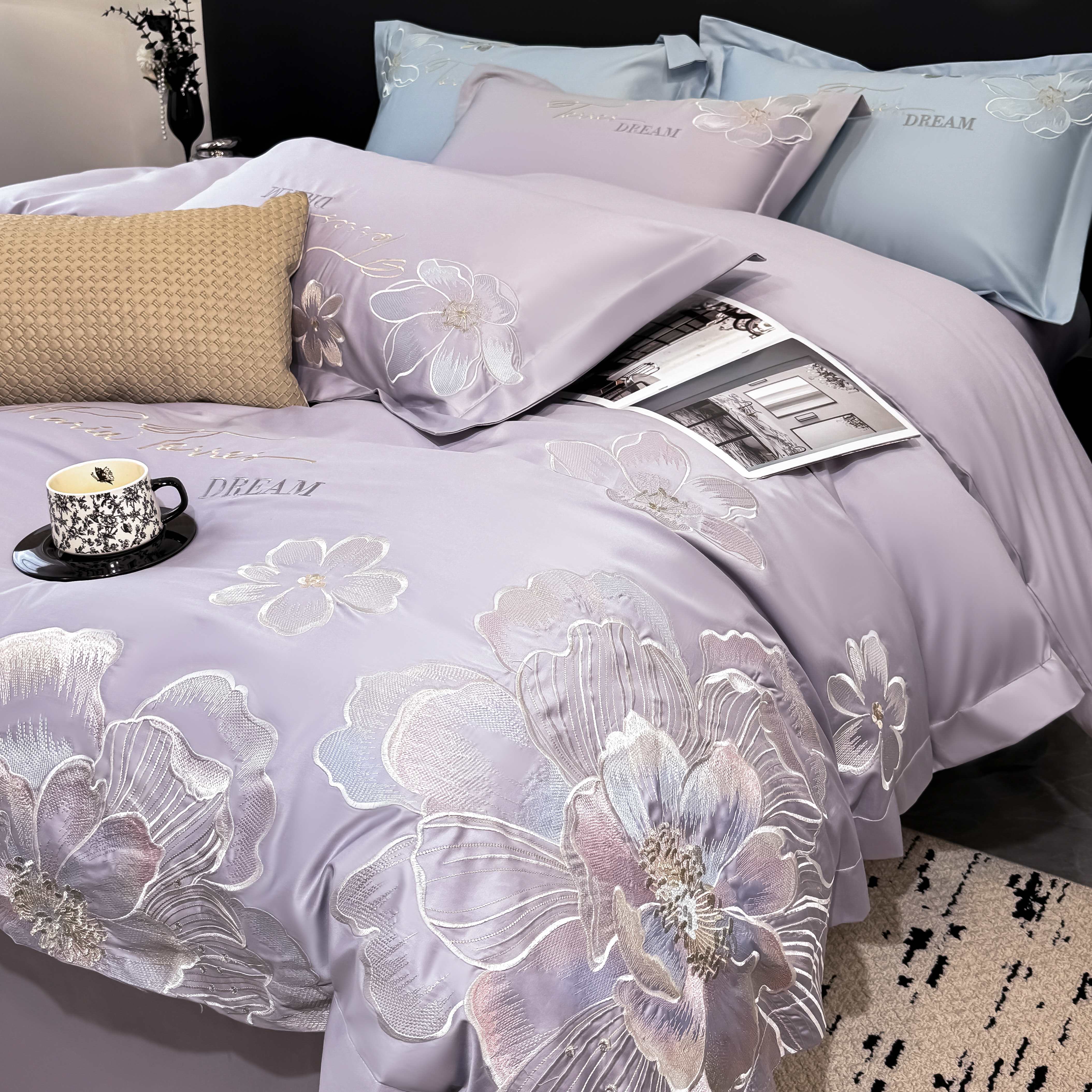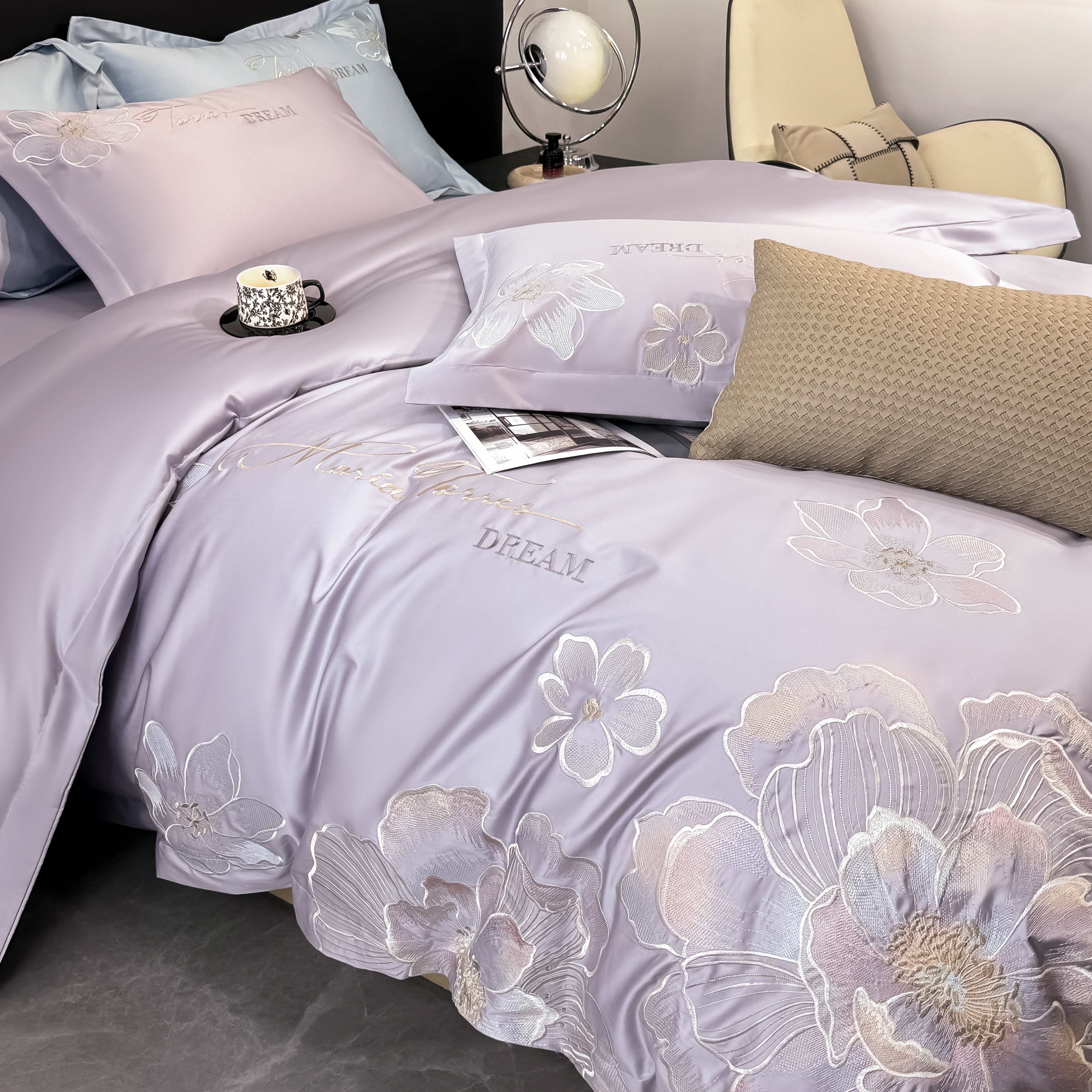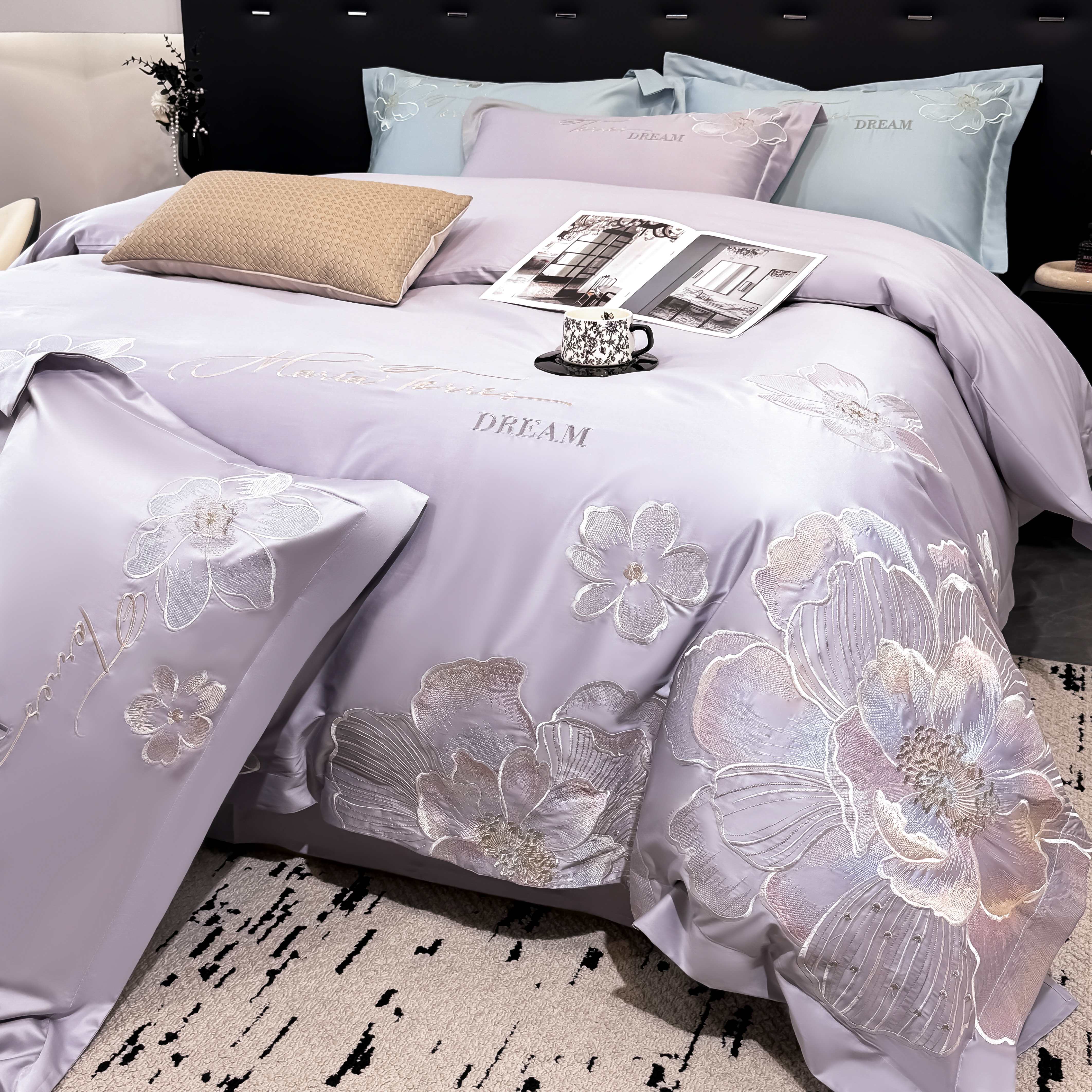 水云缦 2025新款春夏新款全棉贡缎纯棉刺绣四件套 繁华系列 繁花-香芋紫