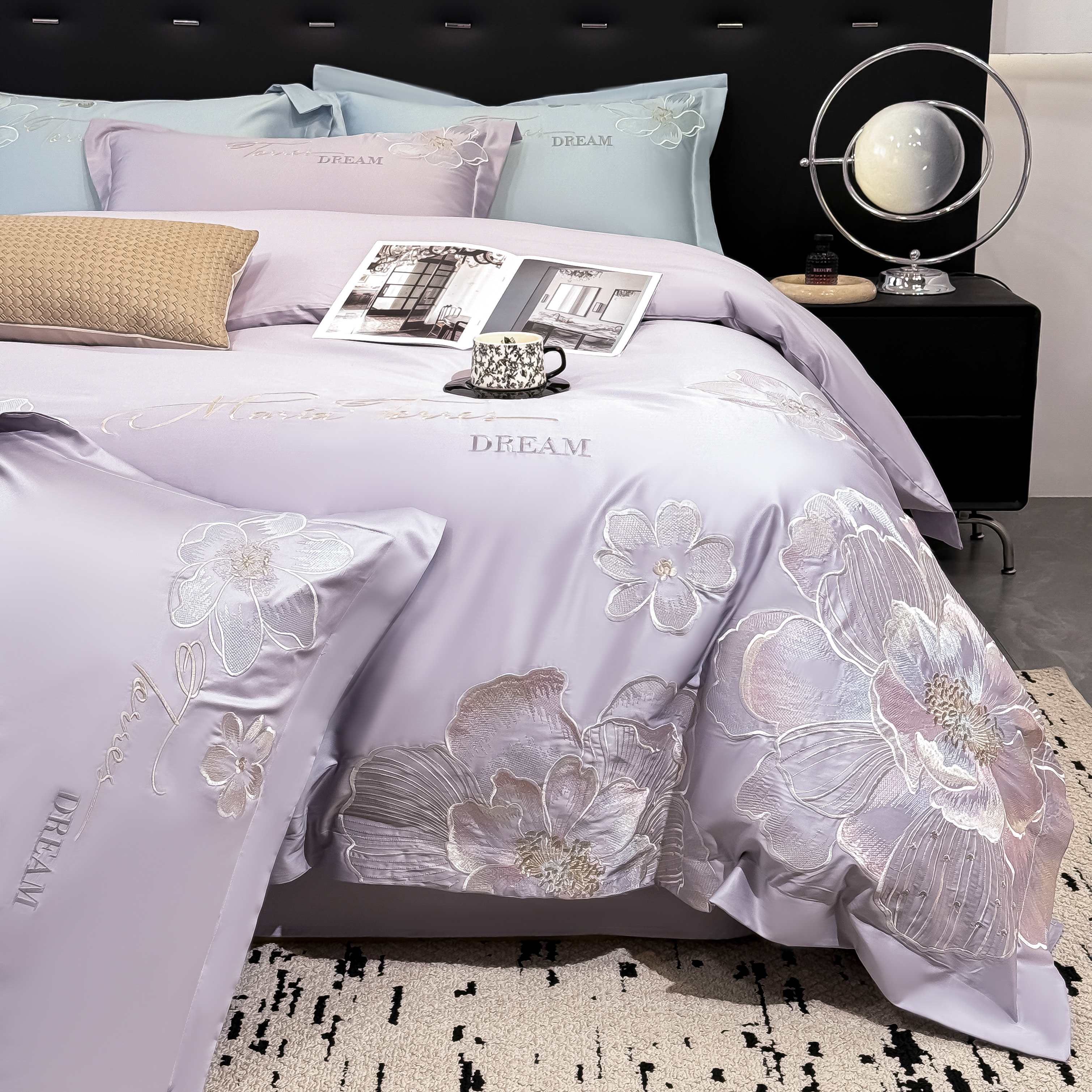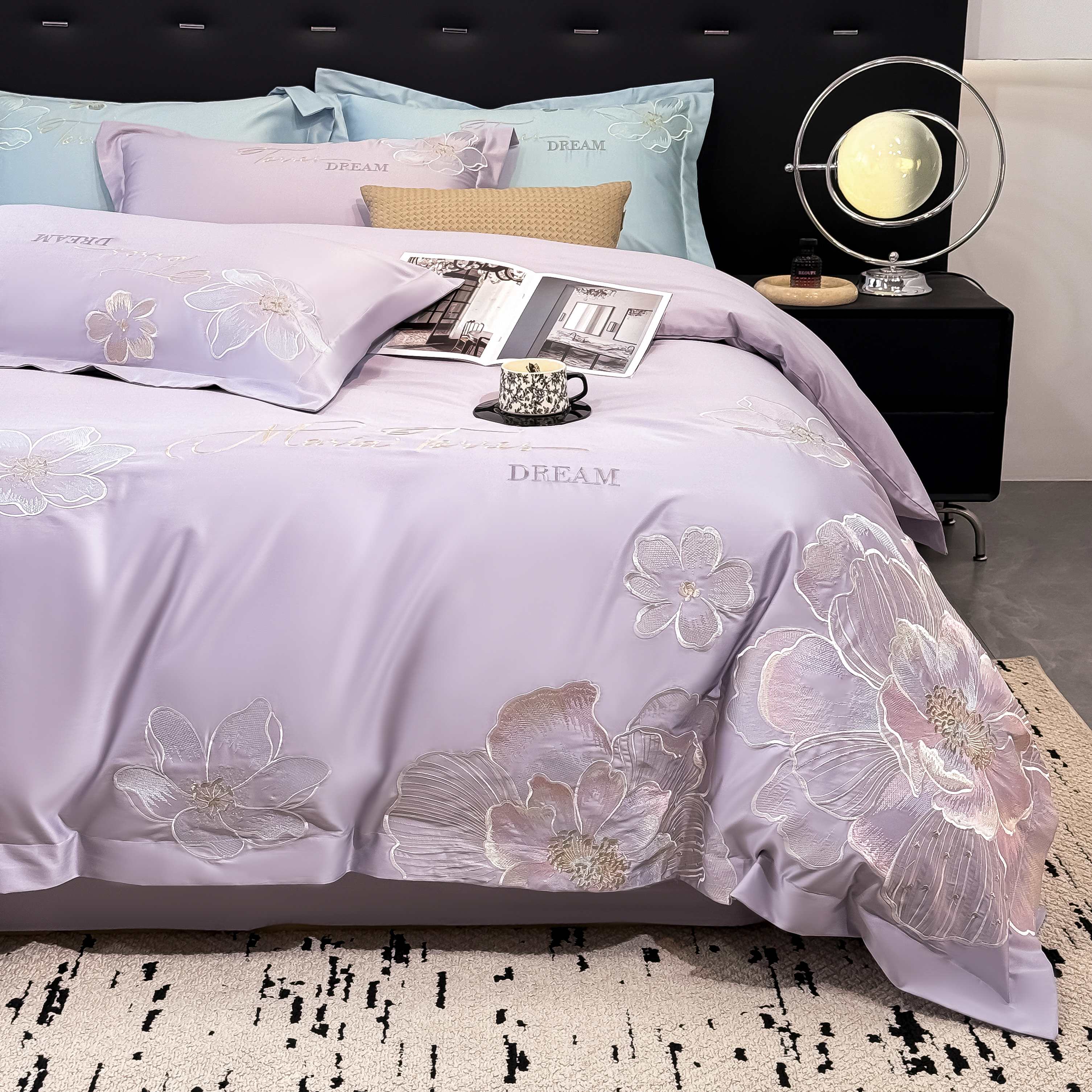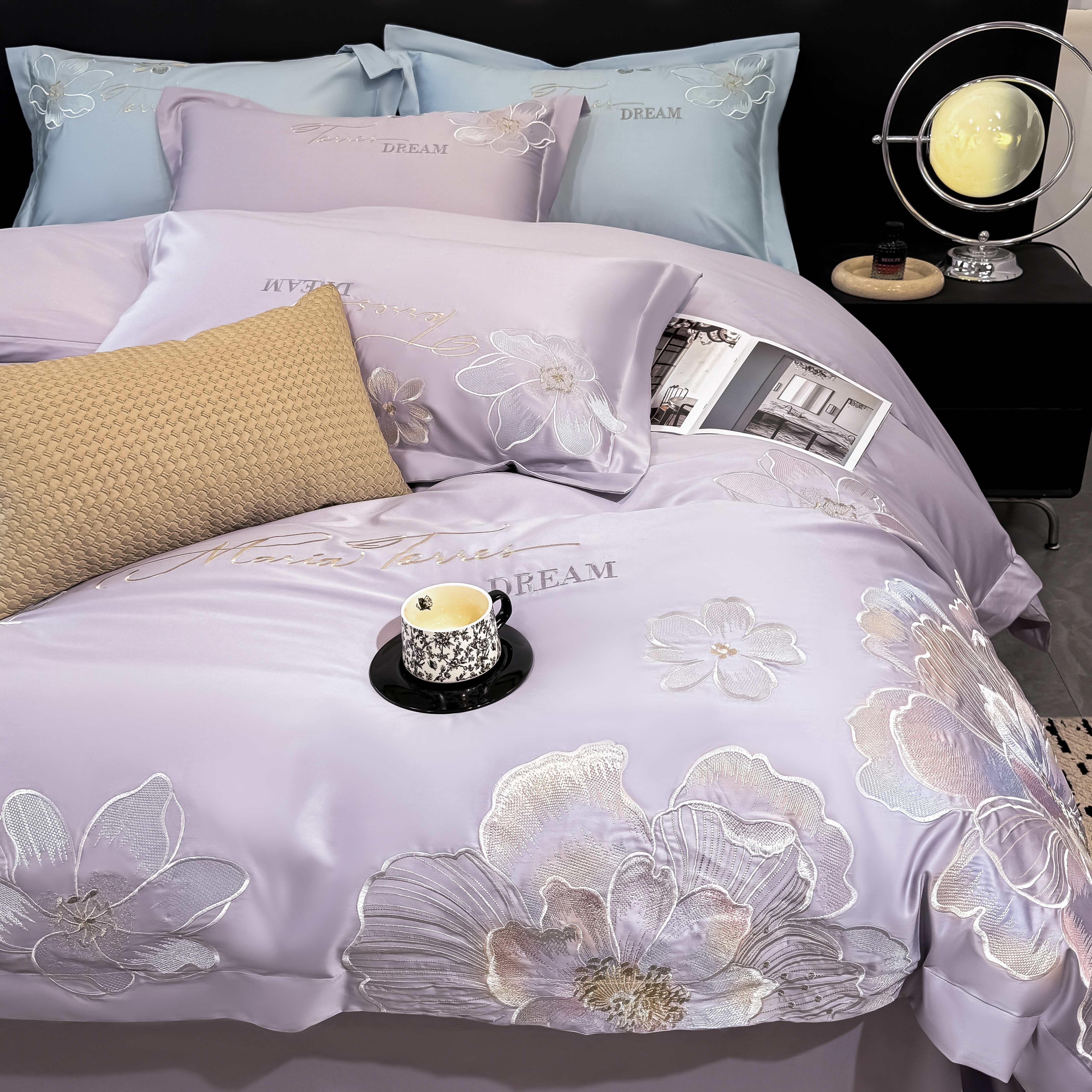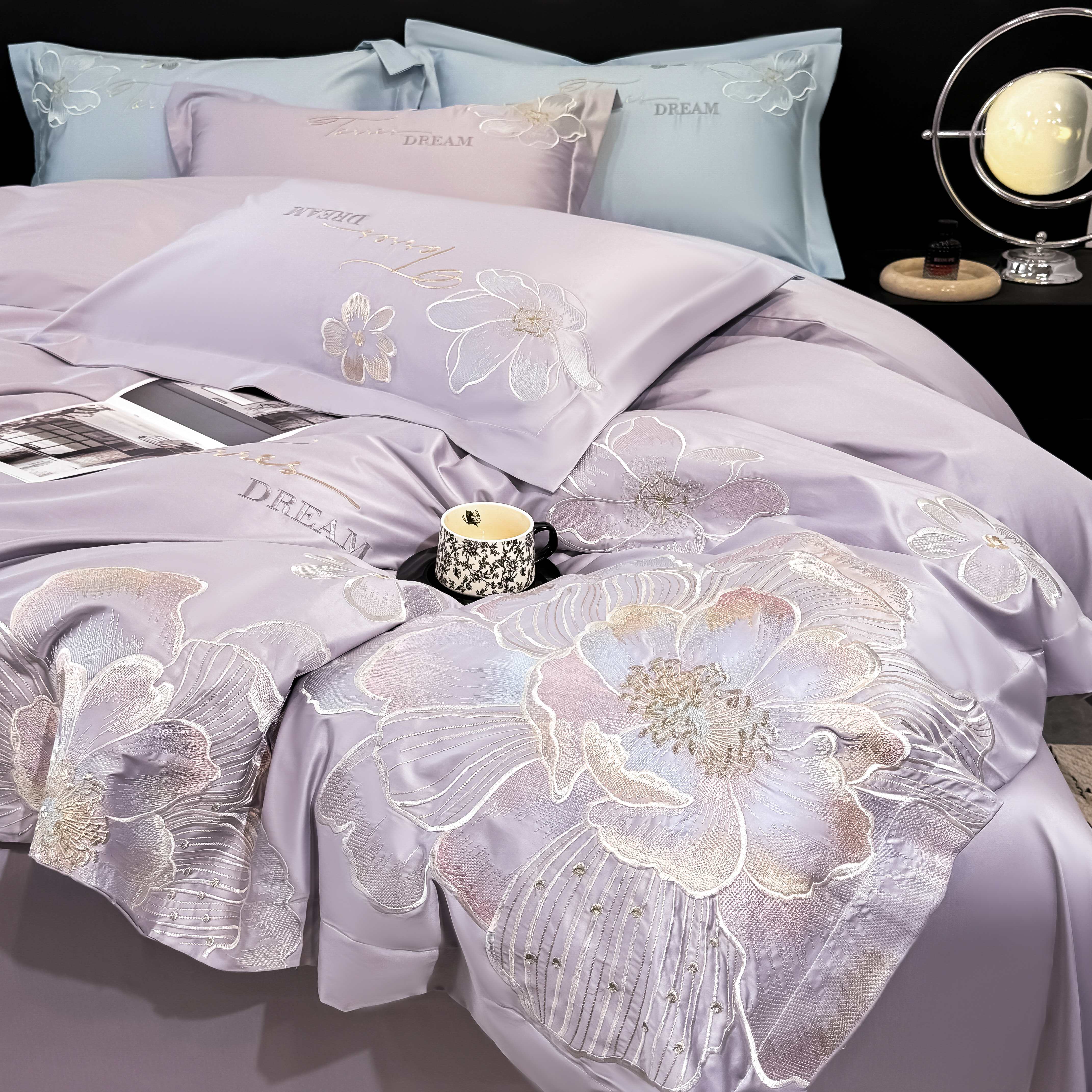 水云缦 2025新款春夏新款全棉贡缎纯棉刺绣四件套 繁华系列 繁花-香芋紫