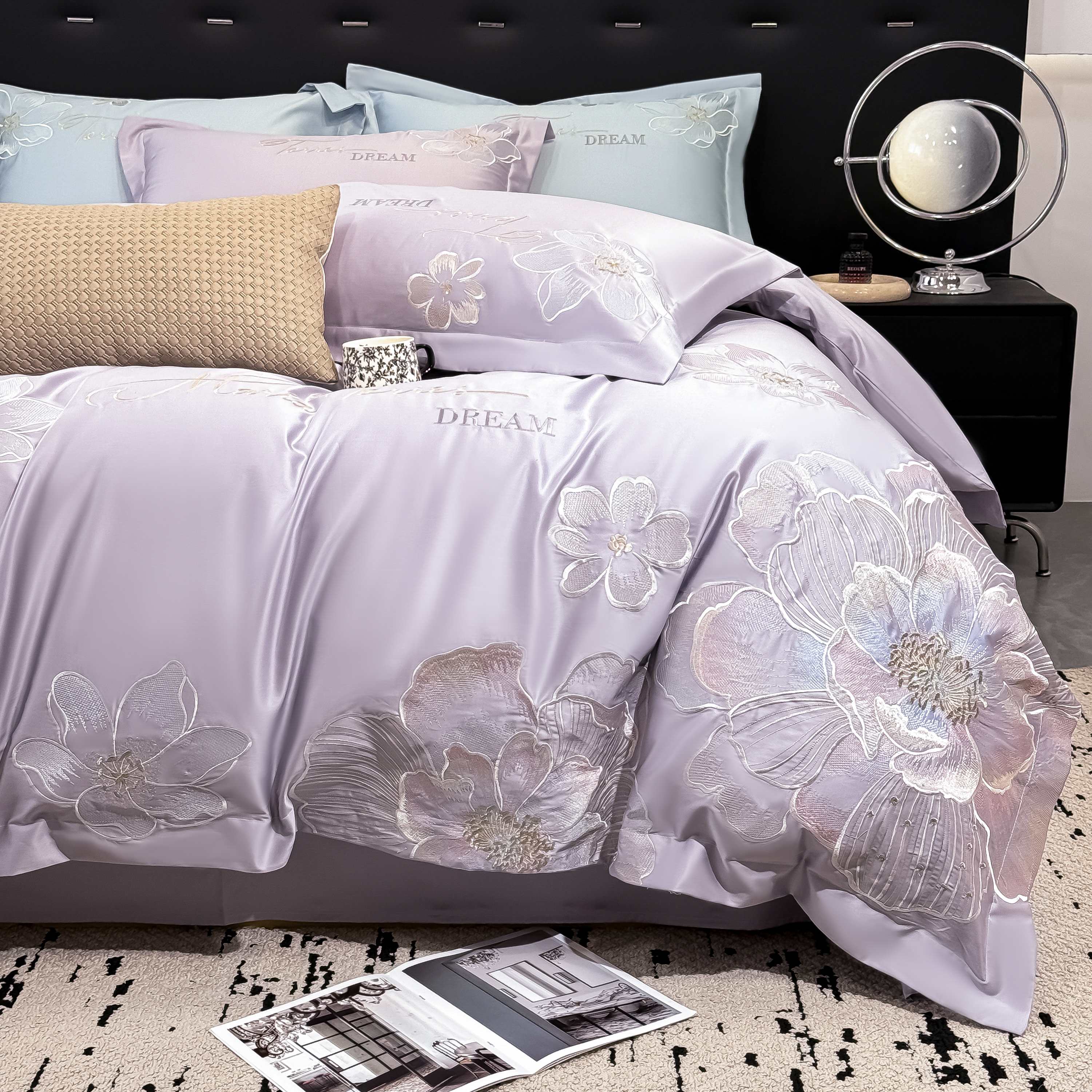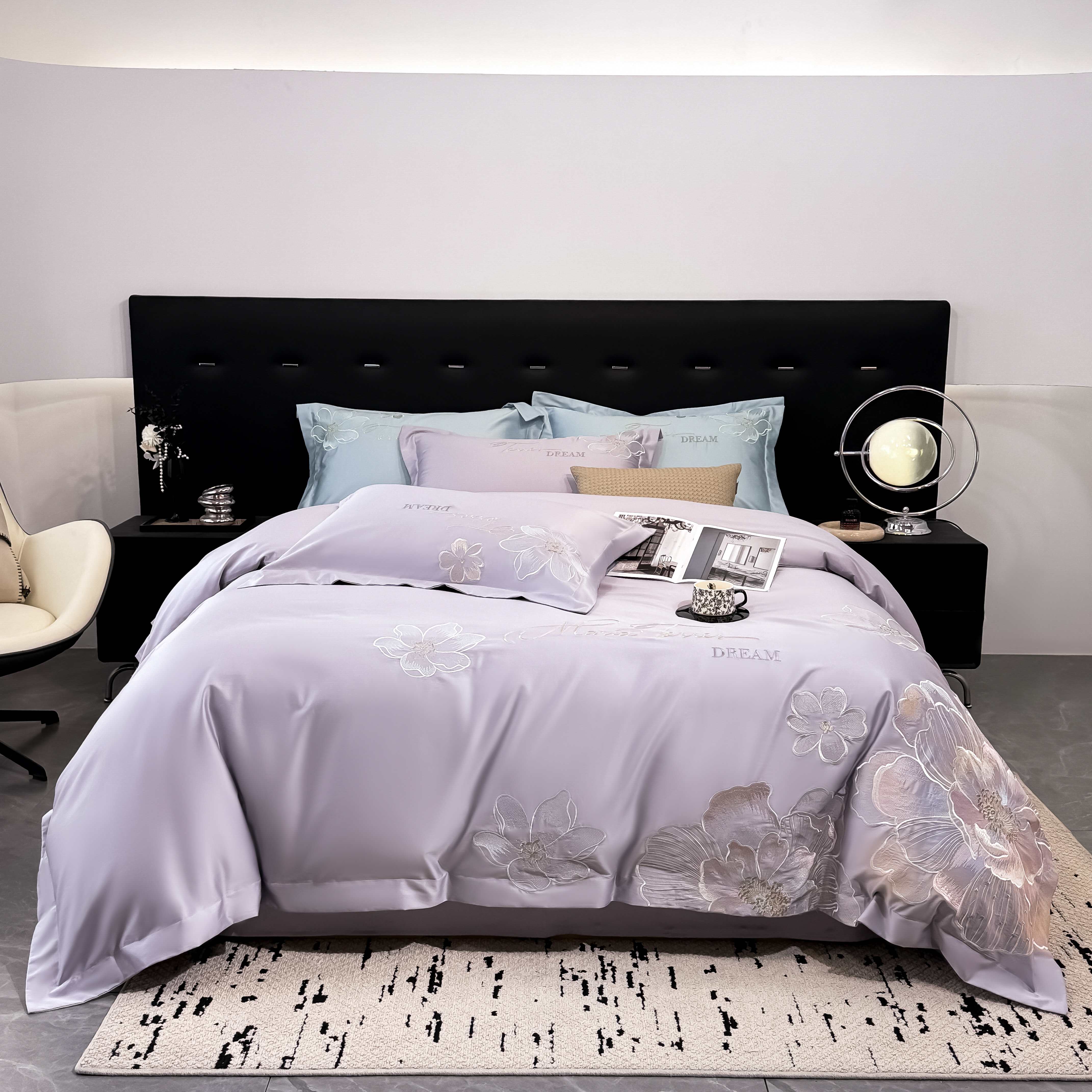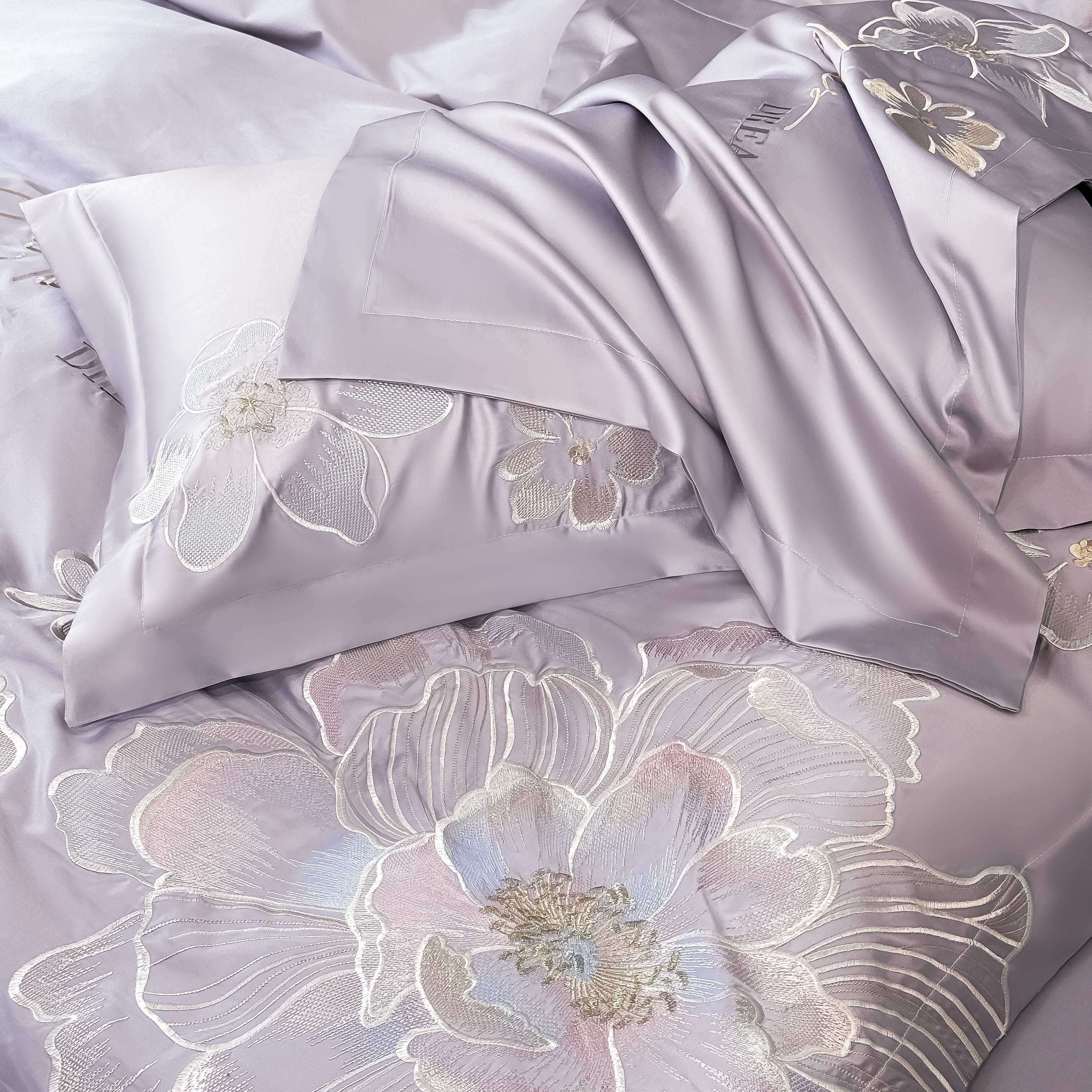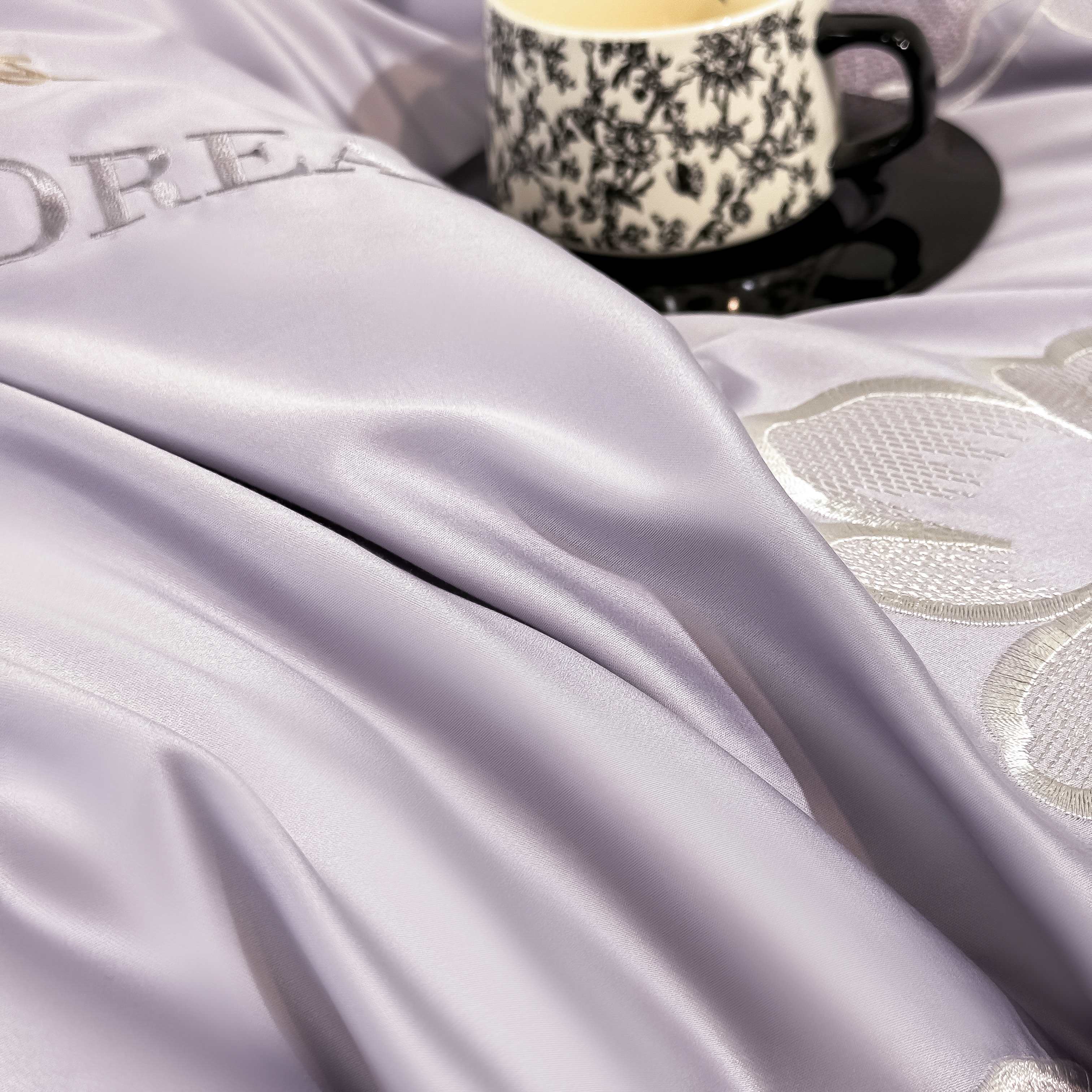 商品名称:水云缦 2025新款春夏新款全棉贡缎纯棉刺绣四件套 繁华系列 繁花-香芋紫