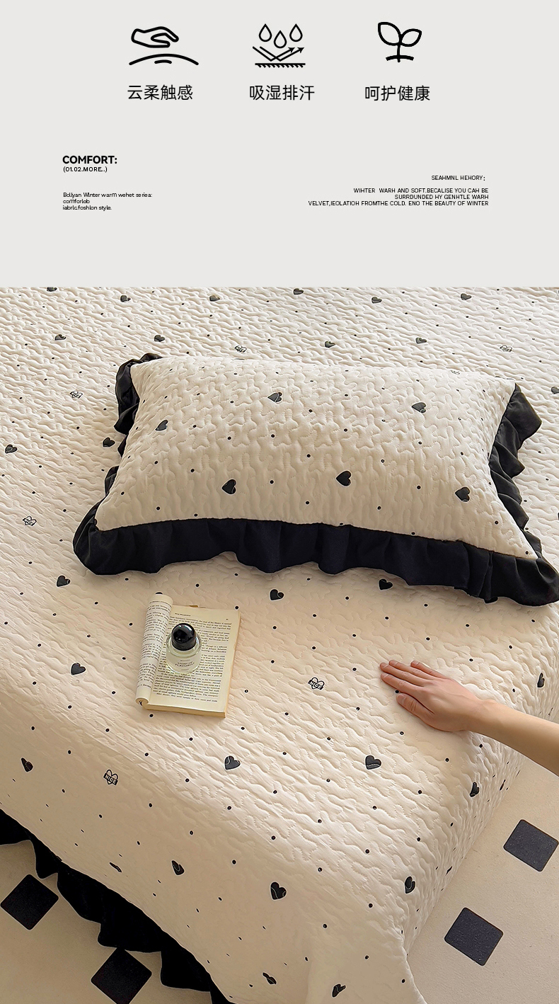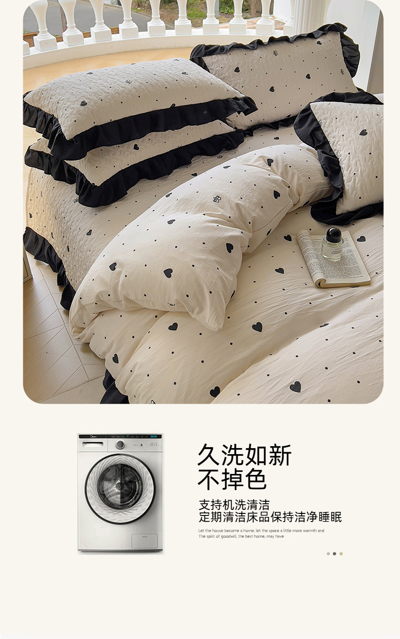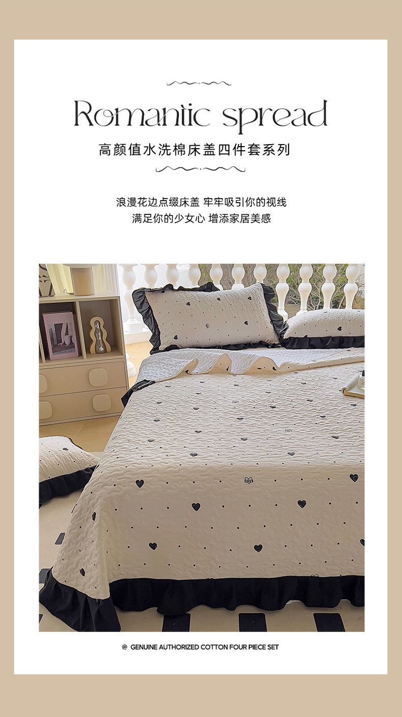 当前位置: 91家纺网 > 商品网购 > 床品套件 > 四件套 > 化纤普通四件套 > 韩秀家纺 2025新款 四季跑量款花边夹棉加厚水洗棉泡泡棉糯感印花韩版床盖四件套 心情