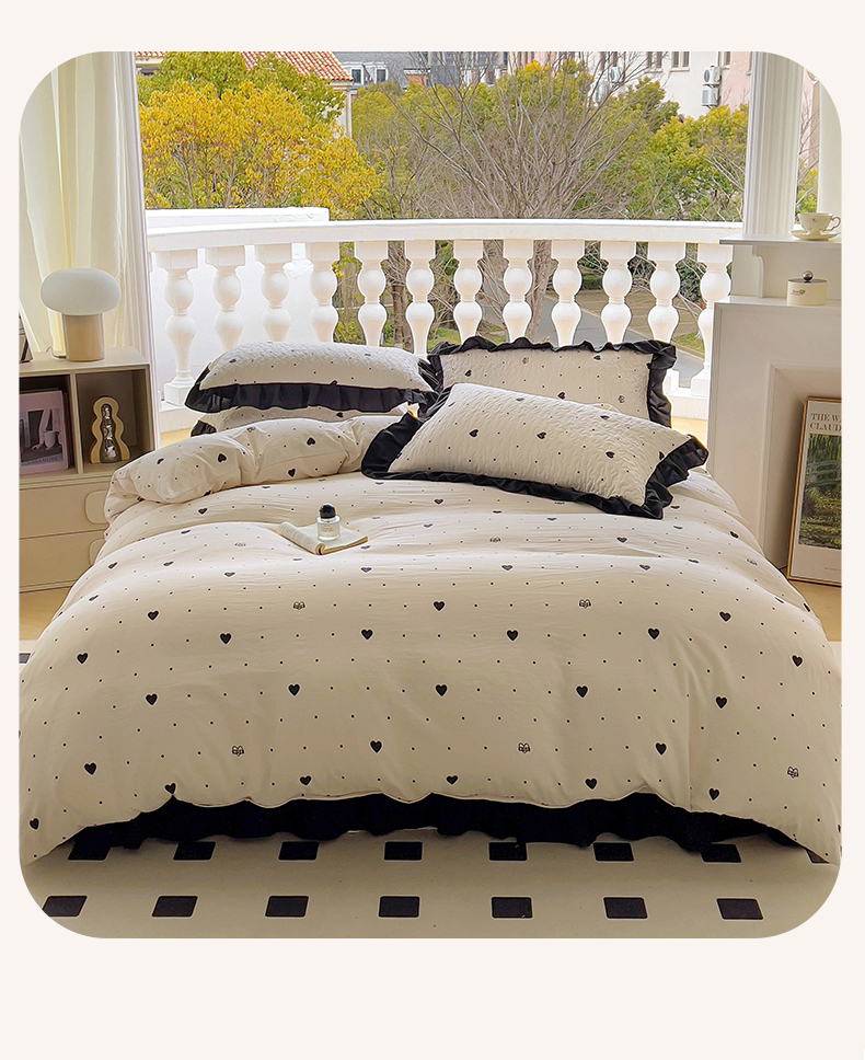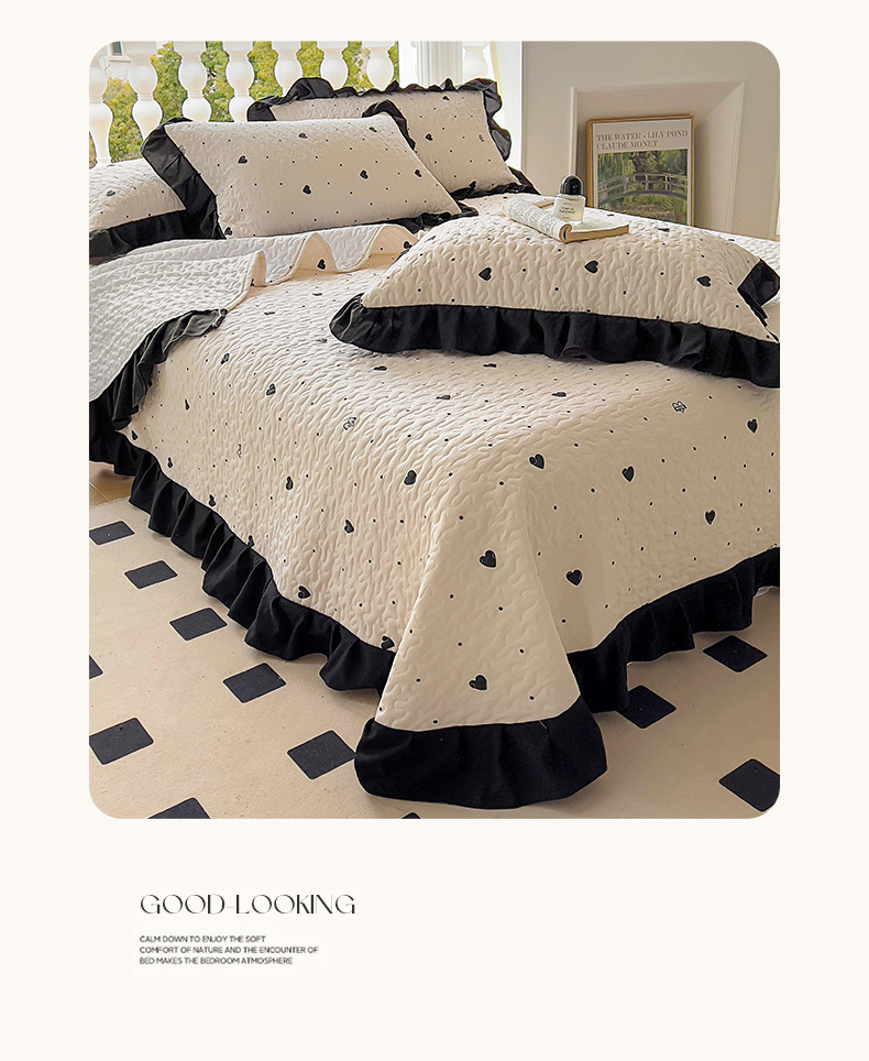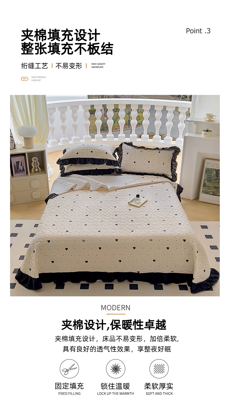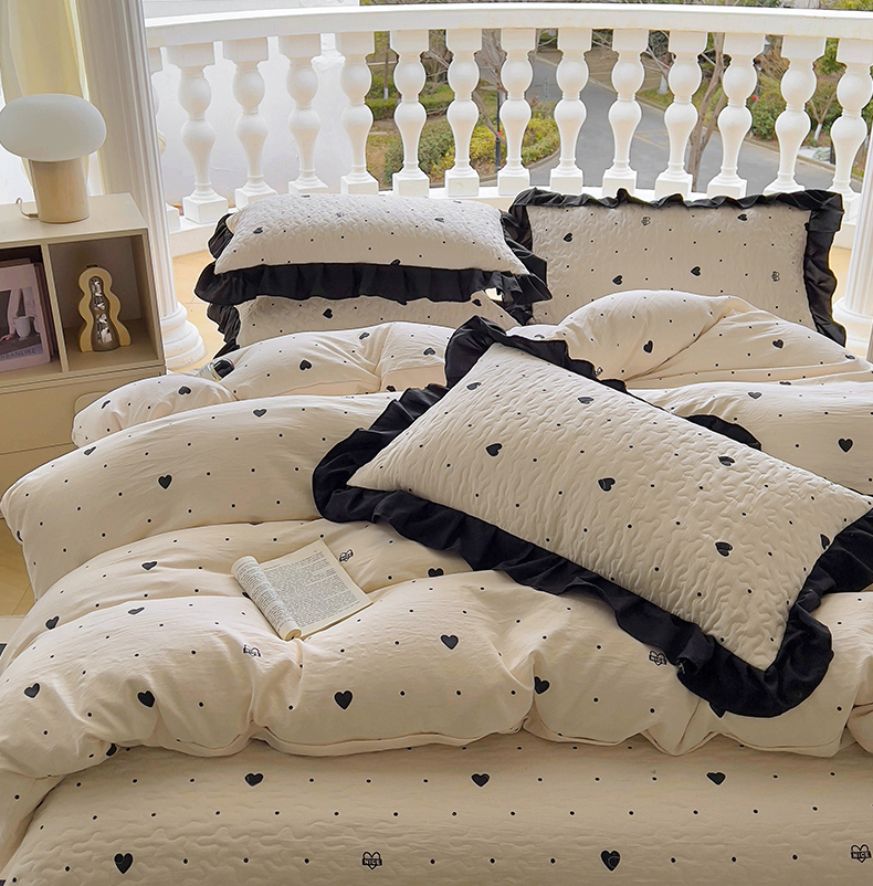 当前位置: 91家纺网 > 商品网购 > 床品套件 > 四件套 > 化纤普通四件套 > 韩秀家纺 2025新款 四季跑量款花边夹棉加厚水洗棉泡泡棉糯感印花韩版床盖四件套 心情