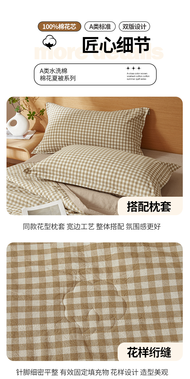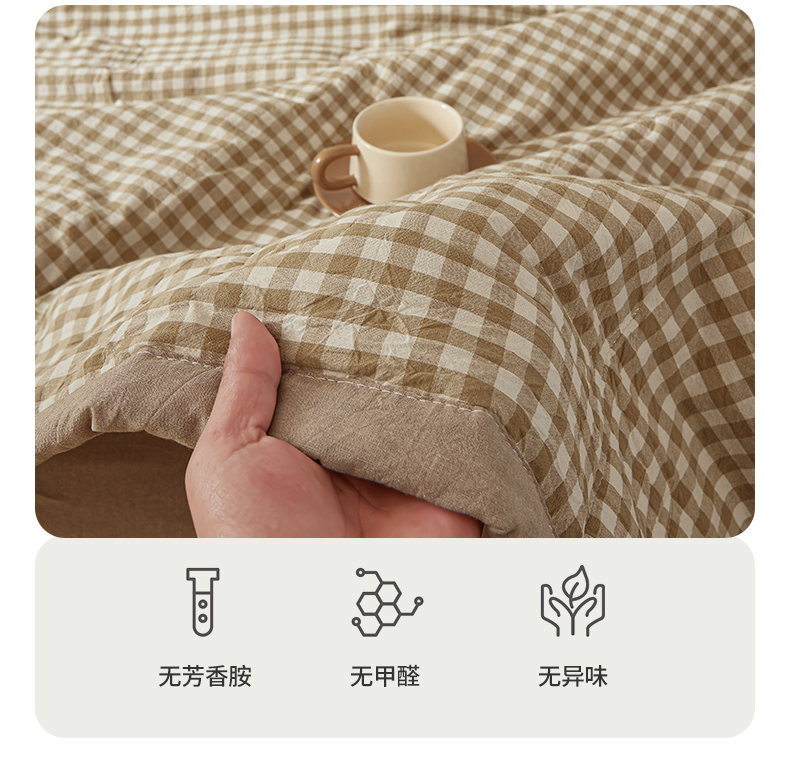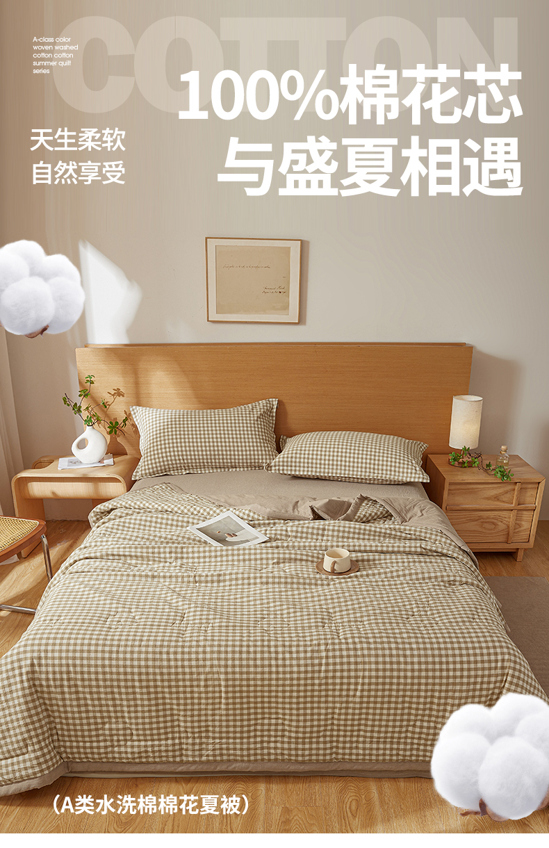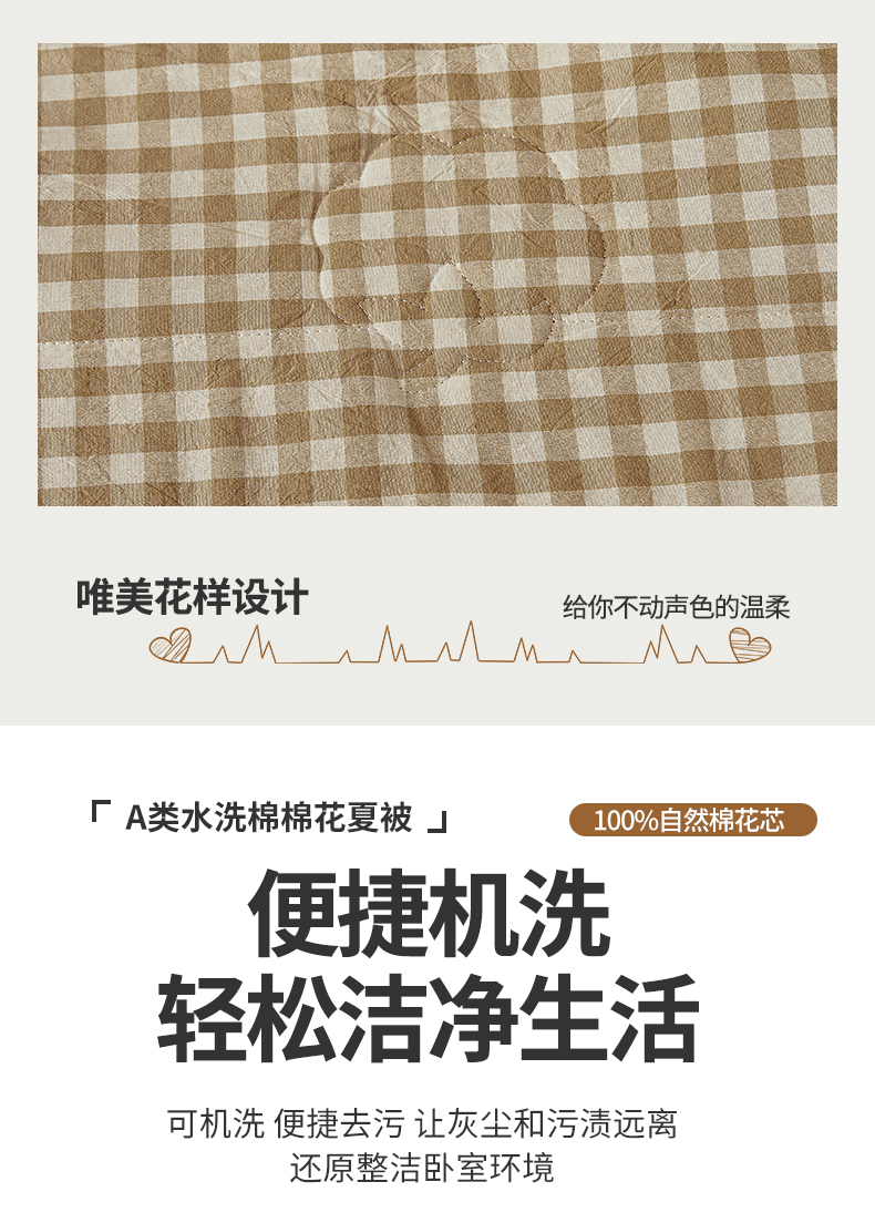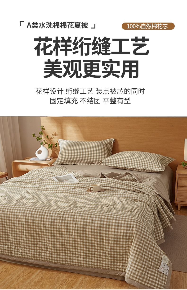 商品名称:西域种棉人·千百笠 2025新款A类100%新疆棉花夏凉被纯棉全棉填充原棉空调被手工宽边水洗棉夏被 咖小格