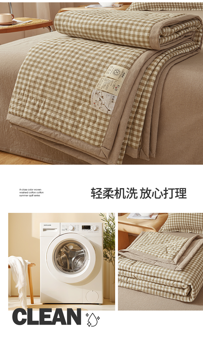 被子 > 夏被 > 西域种棉人·千百笠 2025新款A类100%新疆棉花夏凉被纯棉全棉填充原棉空调被手工宽边水洗棉夏被 咖小格