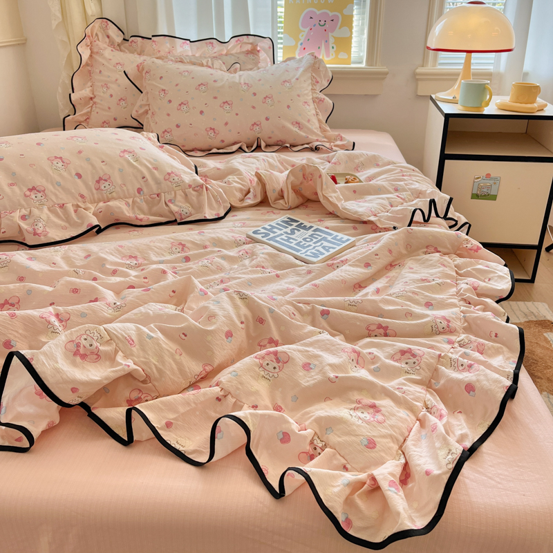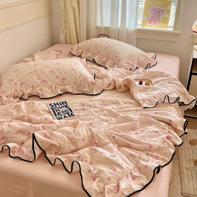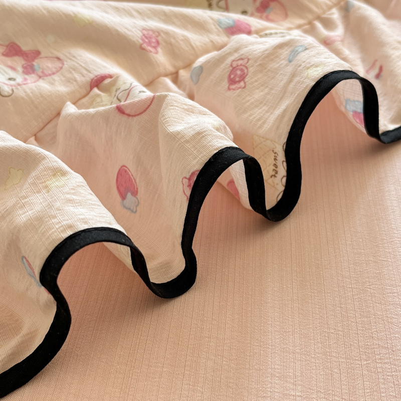 商品名称:欧尚 2025新款细黑边夏被床单床盖三件套 粉蒂