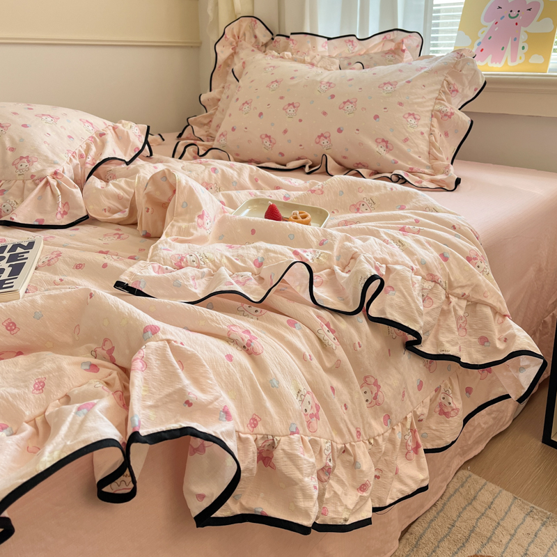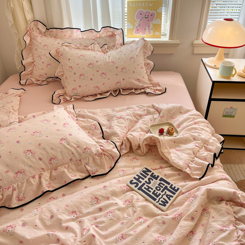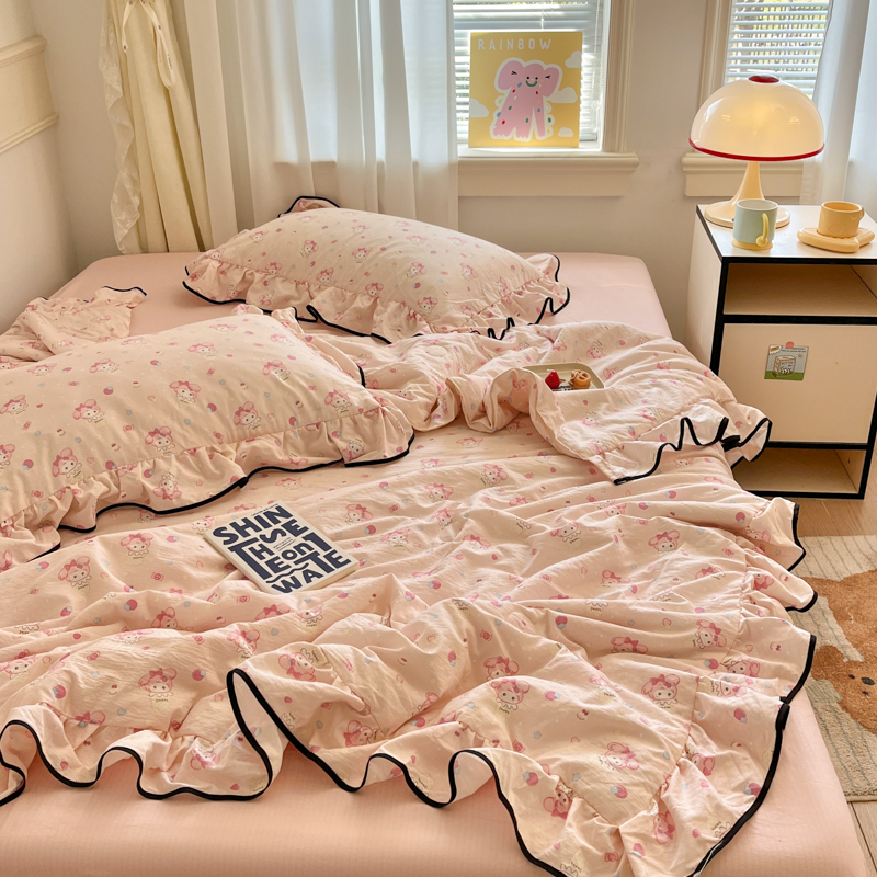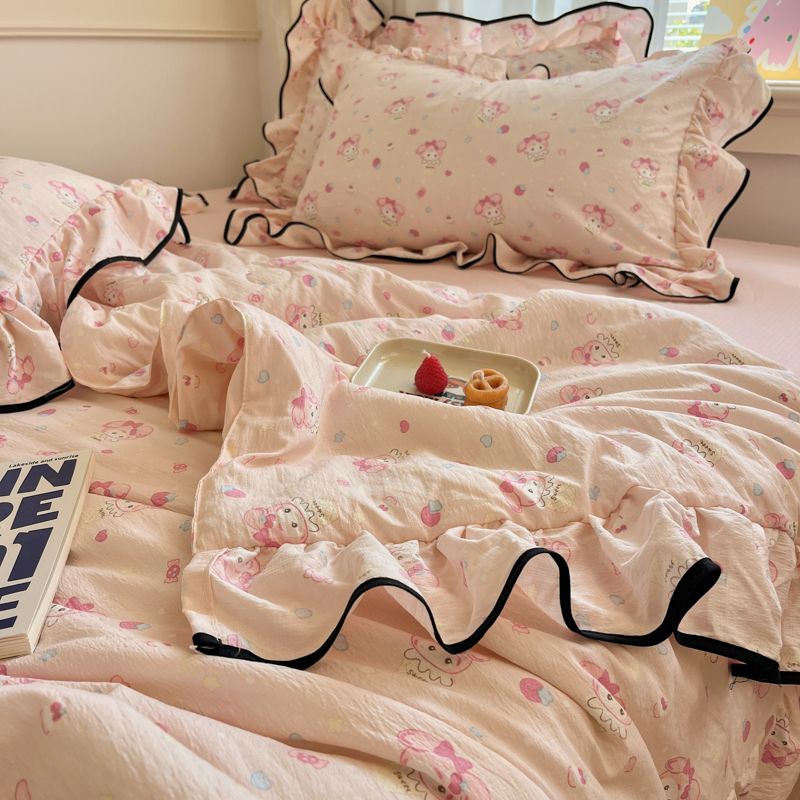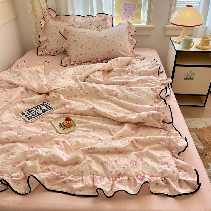 欧尚 2025新款细黑边夏被床单床盖三件套 粉蒂