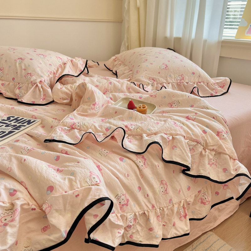 (总)欧尚 2026新款花边床盖四件套,春和,花束,花野,灰樱桃,咖爱心,咖豹纹,咖啡小猫,梨花落,绿爱心,梦境,木马,奶油波点,暖橘枝,暖心,人间草木,田园兔,小女孩,星愿,摇摇马,紫爱心,紫豹纹,紫苏