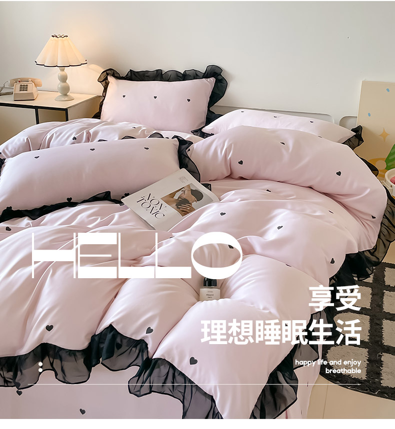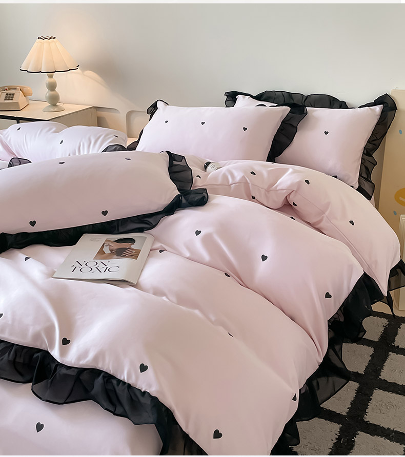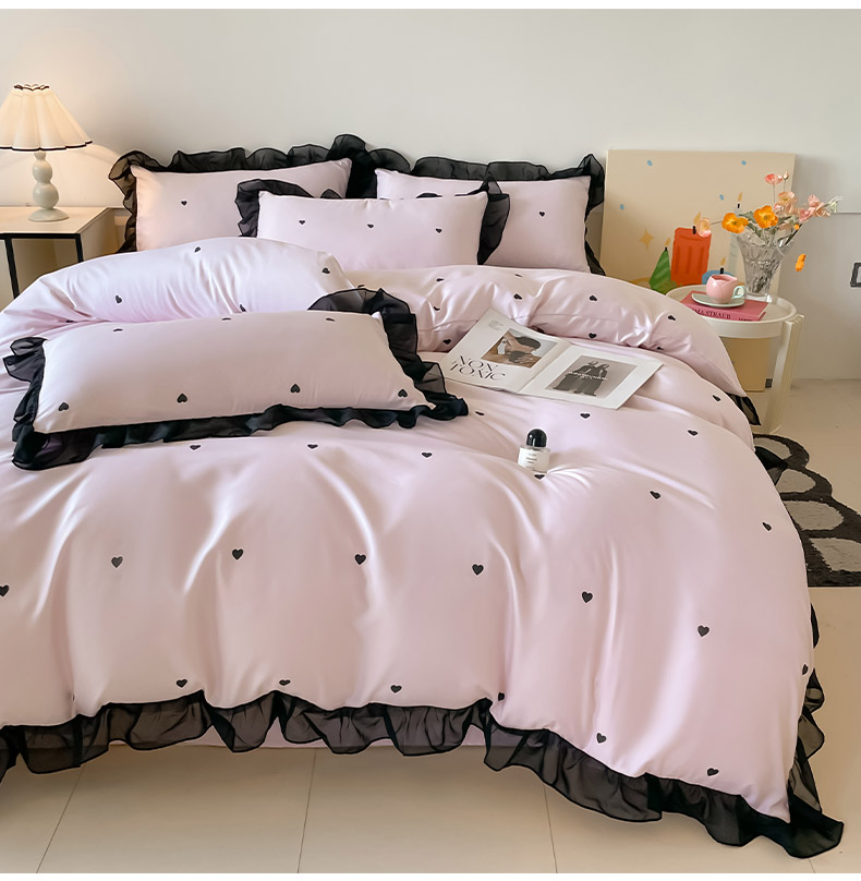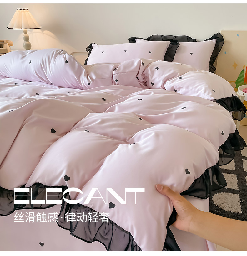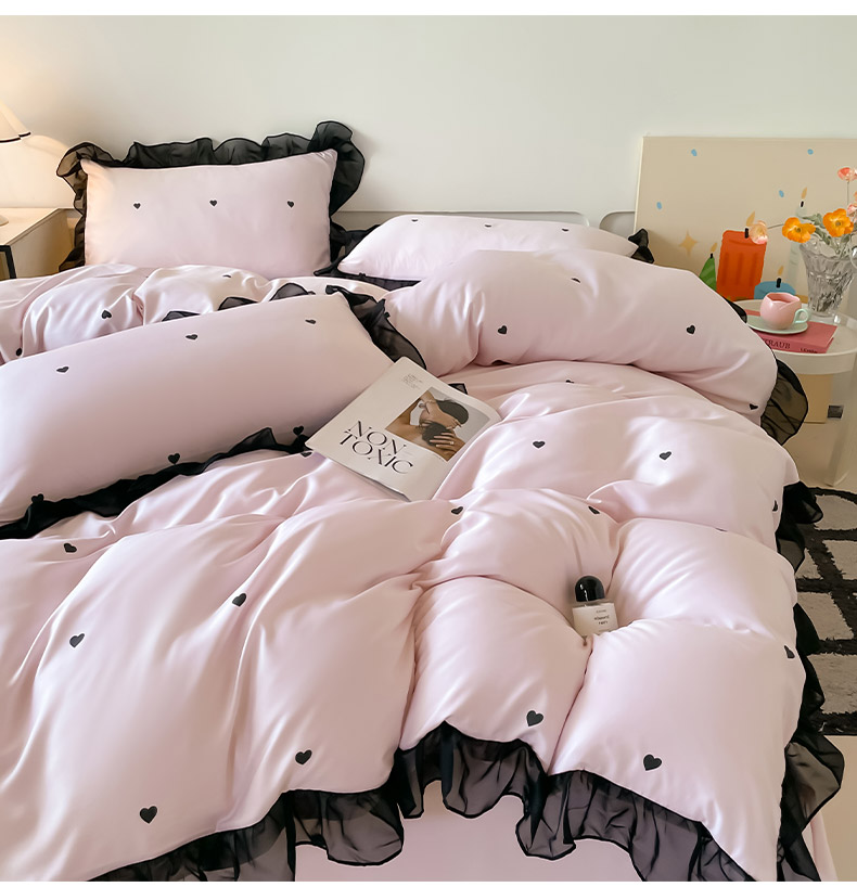 绒世界 2025新款小清新美拉德水洗冰丝套件四件套 爱心-粉