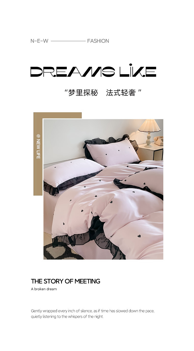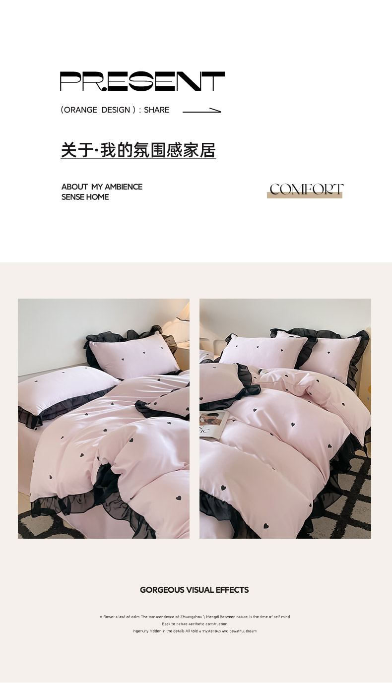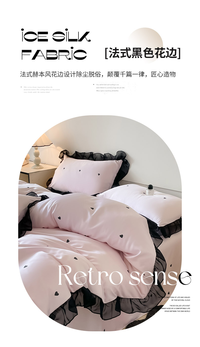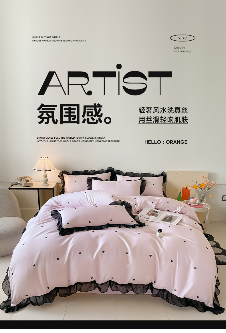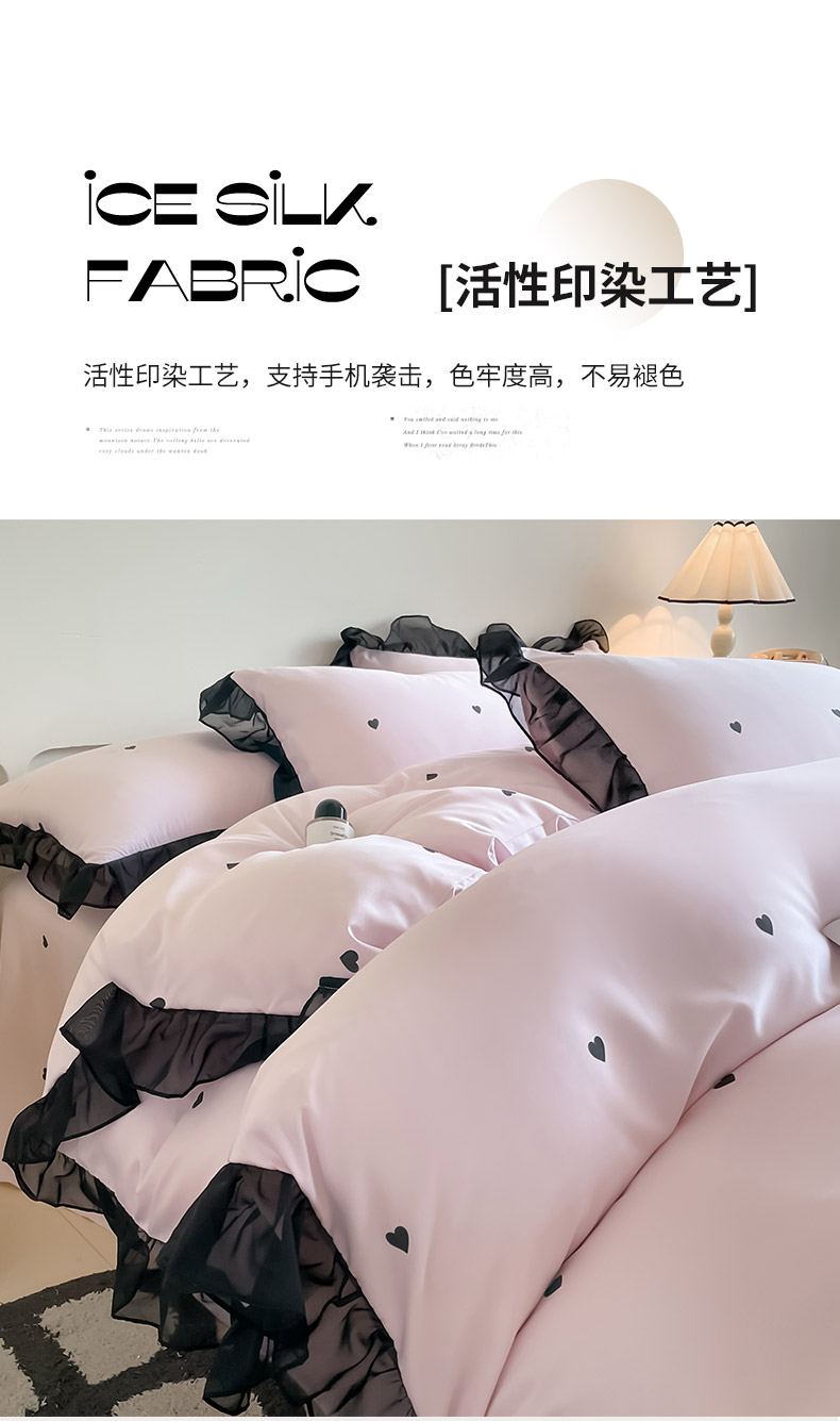 商品名称:绒世界 2025新款小清新美拉德水洗冰丝套件四件套 爱心-粉