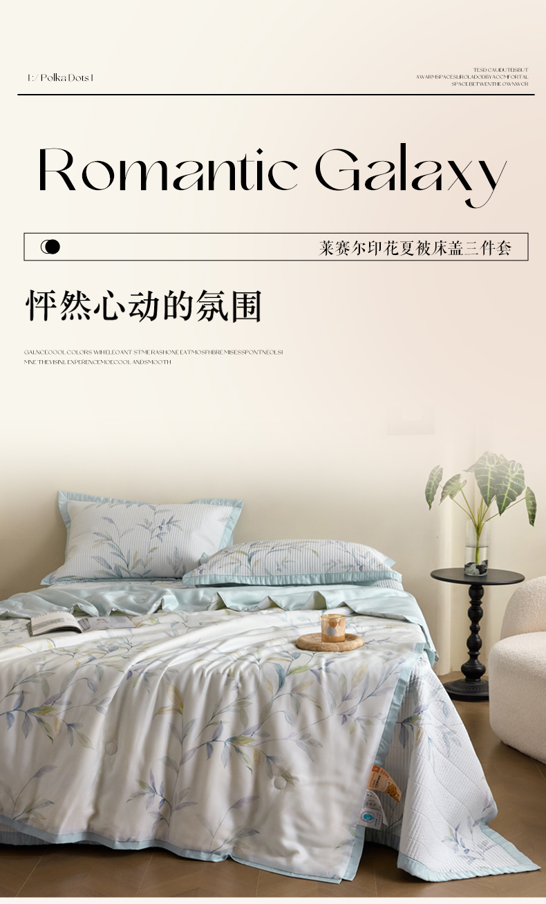 商品名称:黛舒家居2025新款天丝水洗印花夏被床盖三件套 春晓与梦
